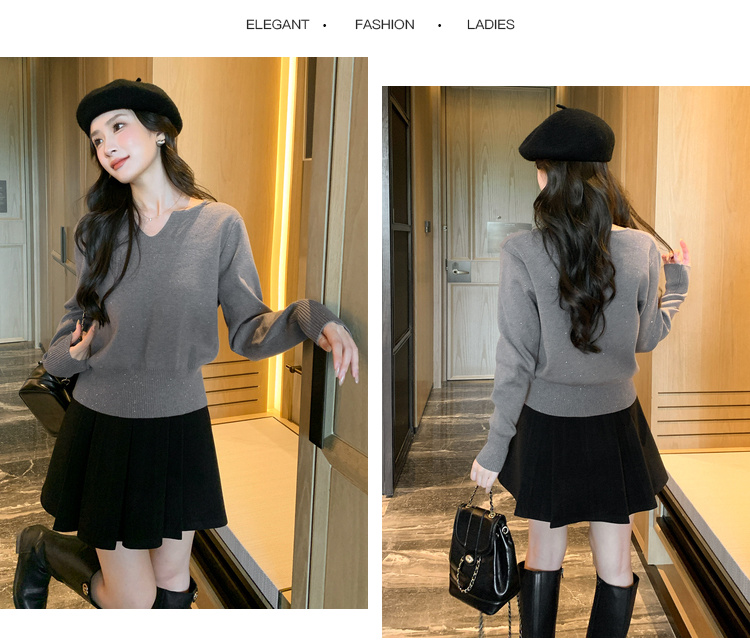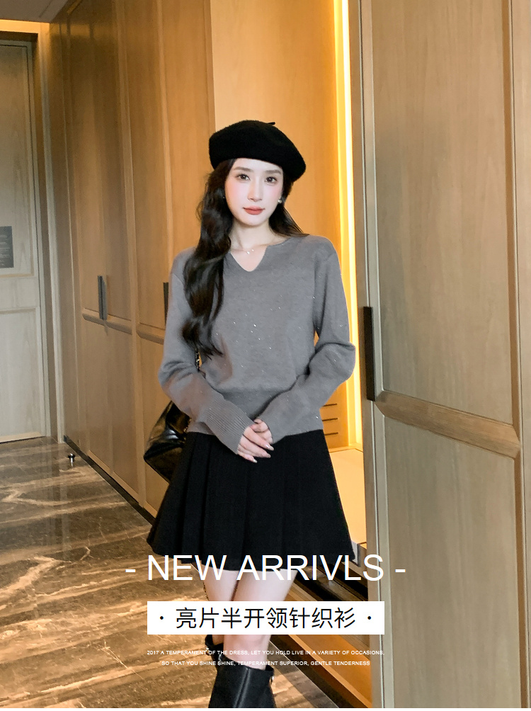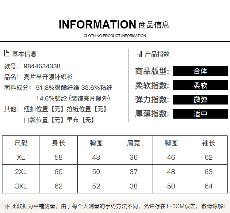 奢姿2024年冬季新款大码女装半开领打底上衣胖妹妹亮片拼接针织衫9844634338