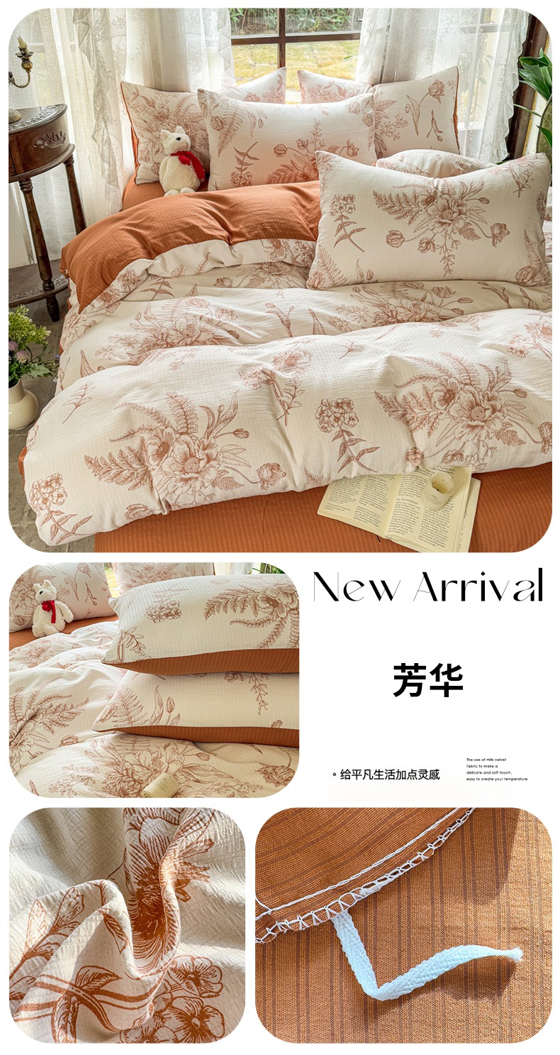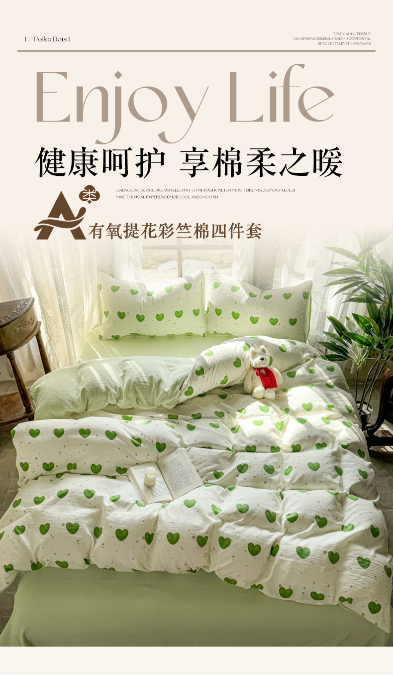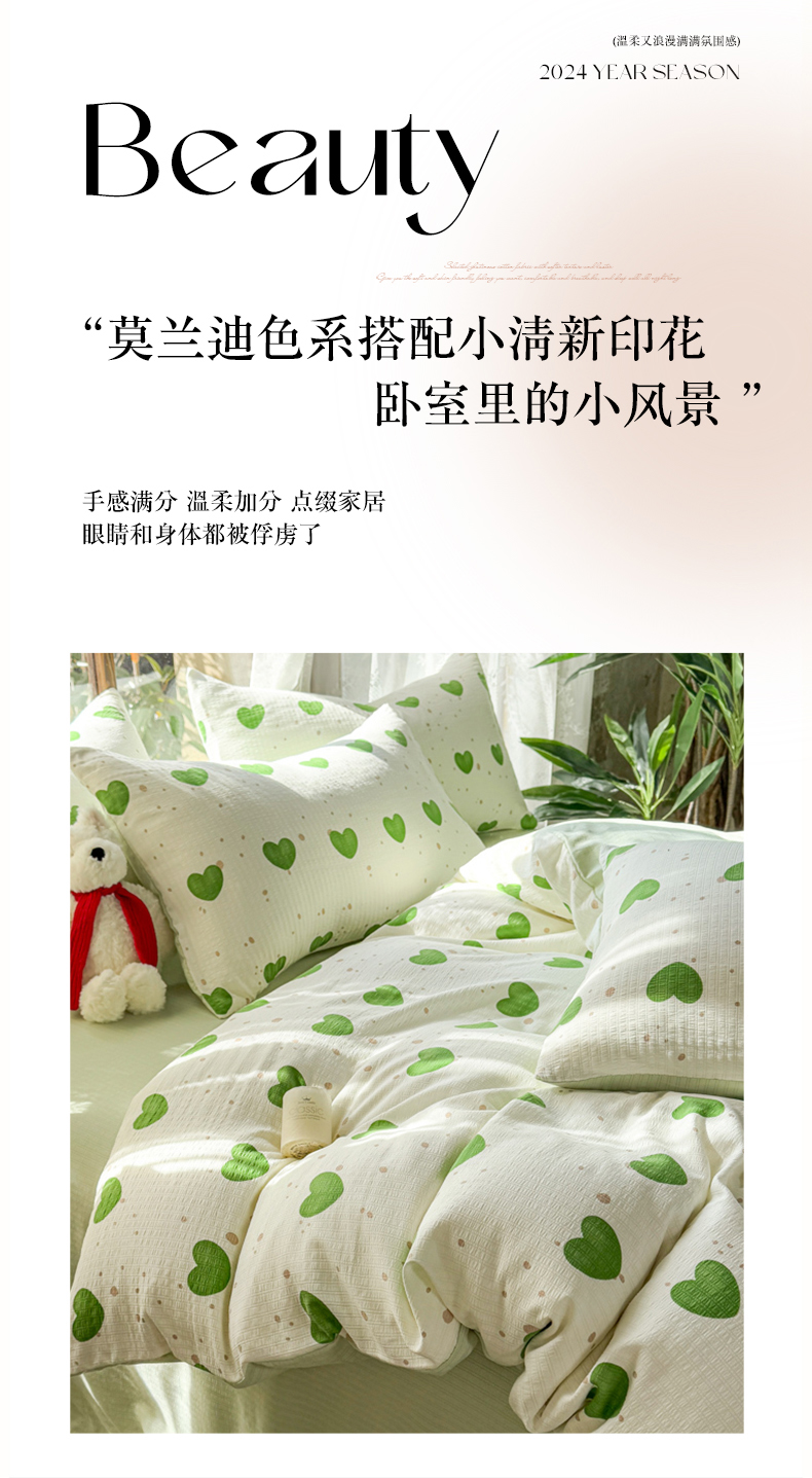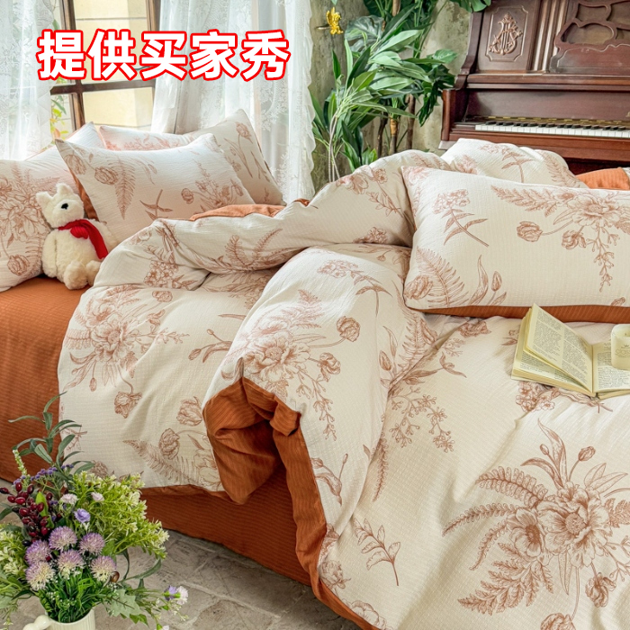 京帝【A类可裸睡竺纱棉四件套】A类彩竺棉面料 手感舒适软糯 给你想要的柔软亲肤感 舒适透气整夜好眠 母婴A类标准 家人健康有保障 莫兰迪色系 小清新印花卧室里的小风景L#