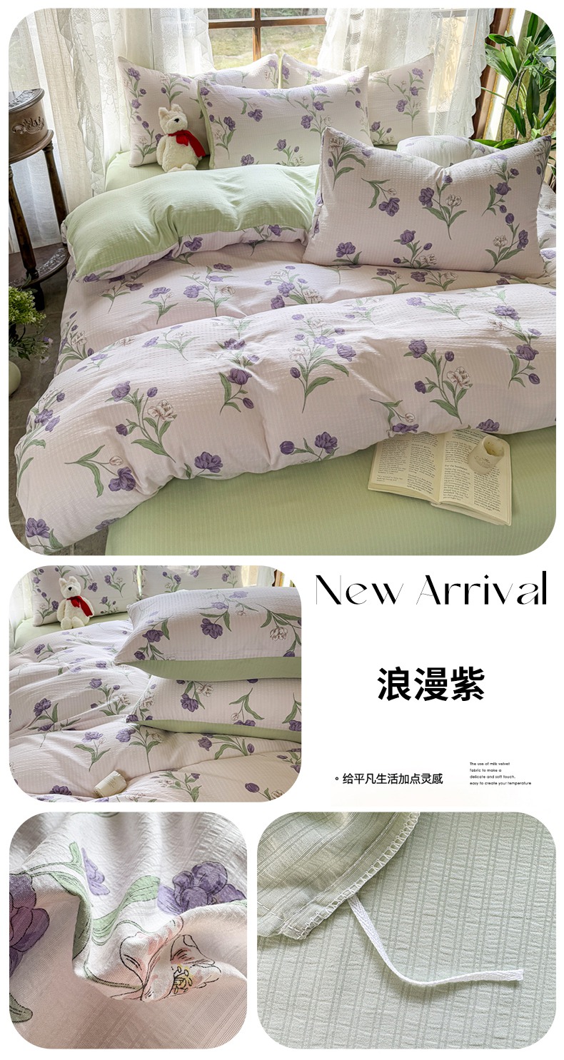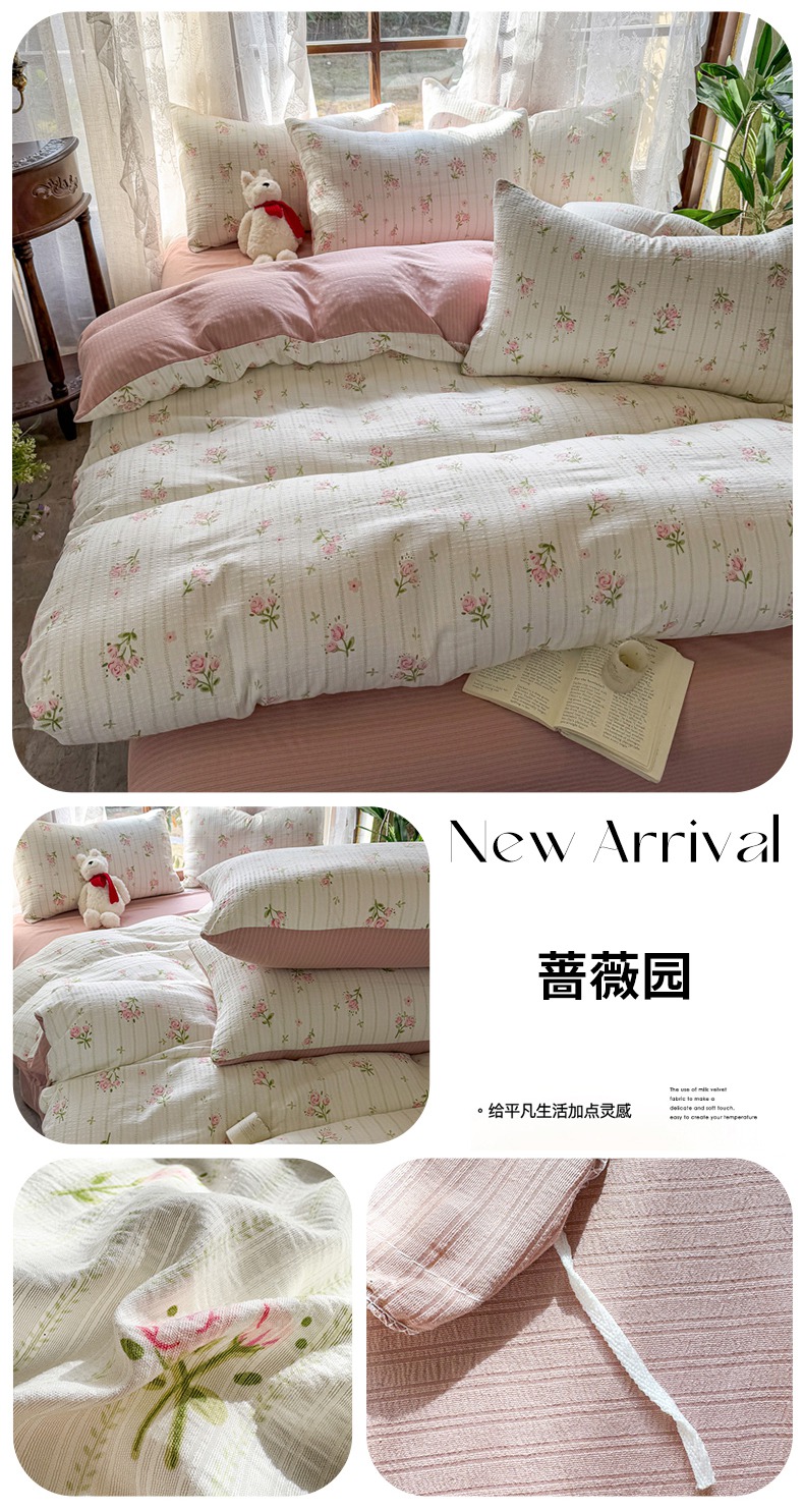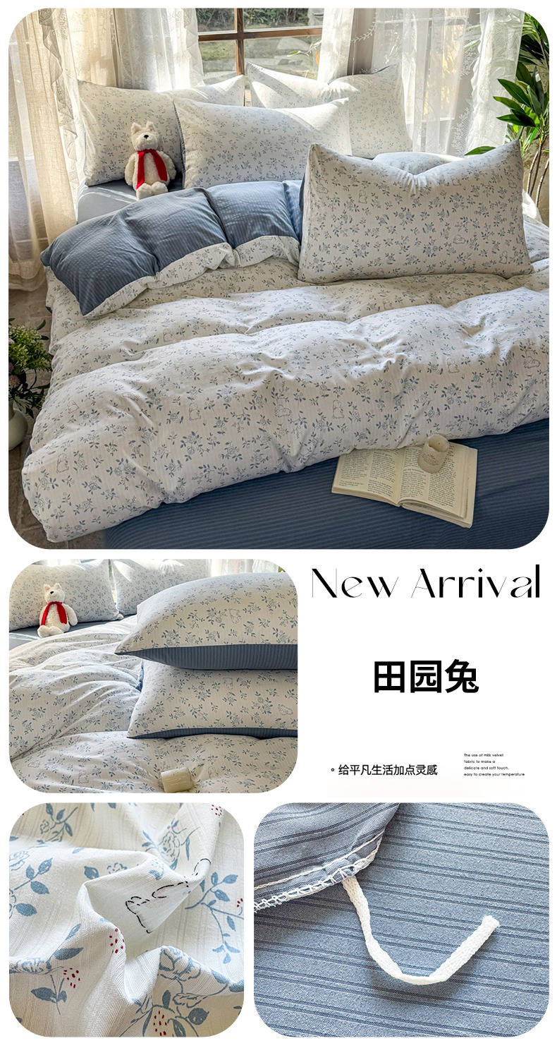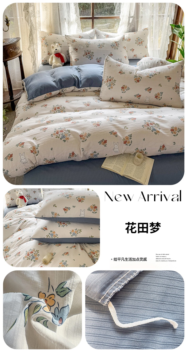 京帝【A类可裸睡竺纱棉四件套】A类彩竺棉面料 手感舒适软糯 给你想要的柔软亲肤感 舒适透气整夜好眠 母婴A类标准 家人健康有保障 莫兰迪色系 小清新印花卧室里的小风景L#
