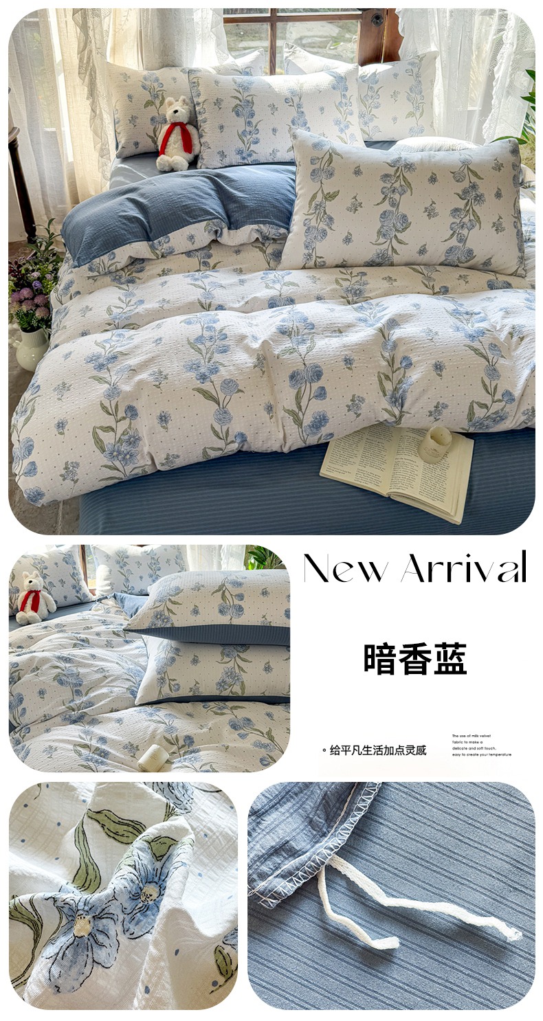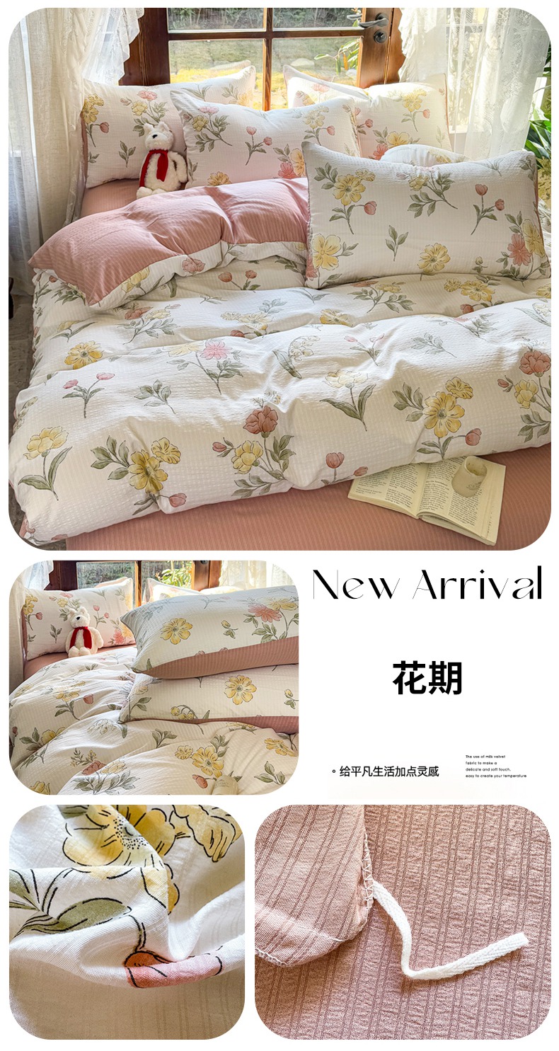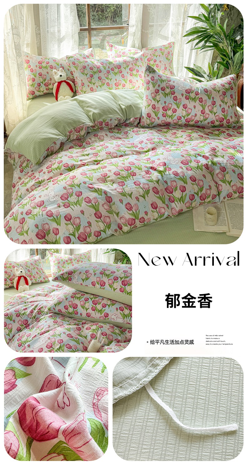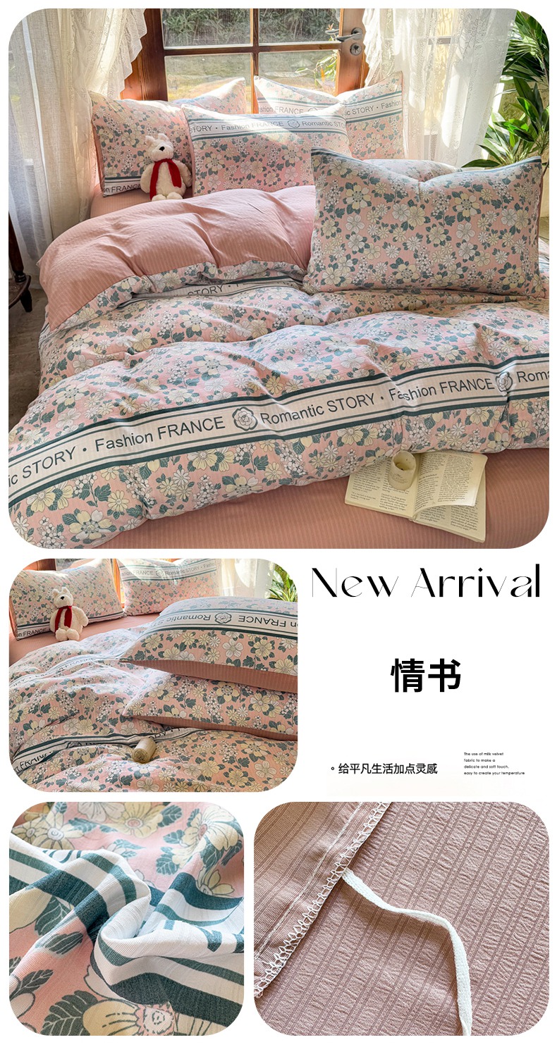 京帝【A类可裸睡竺纱棉四件套】A类彩竺棉面料 手感舒适软糯 给你想要的柔软亲肤感 舒适透气整夜好眠 母婴A类标准 家人健康有保障 莫兰迪色系 小清新印花卧室里的小风景L#