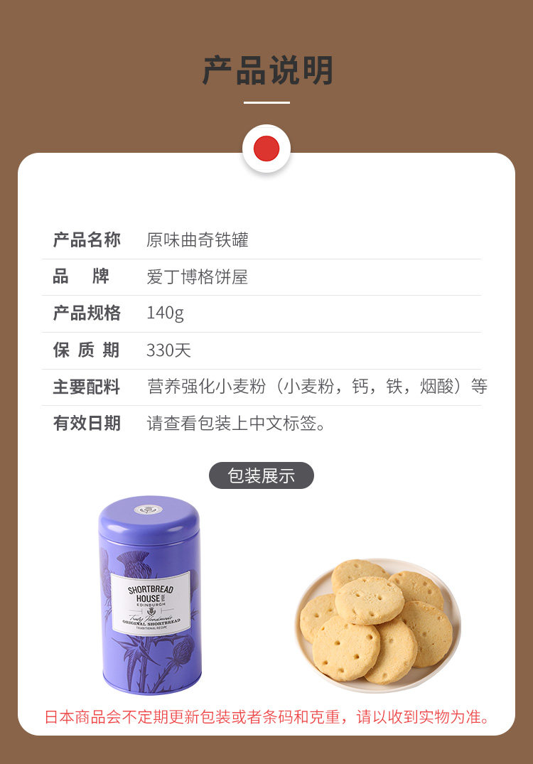 爱丁博格饼屋 原味曲奇铁罐140g(新老包装随机)