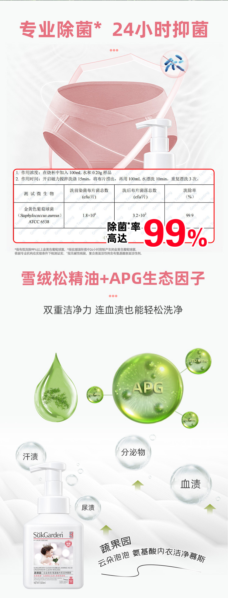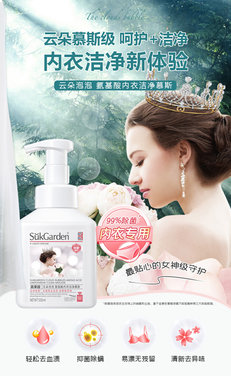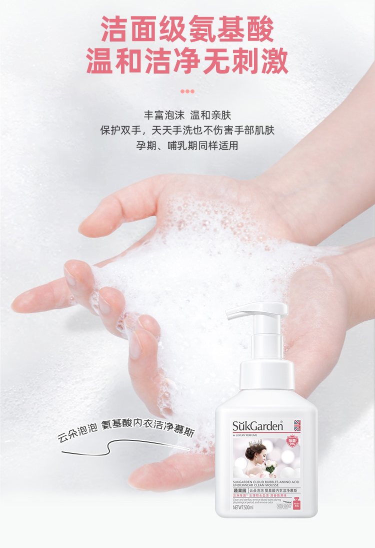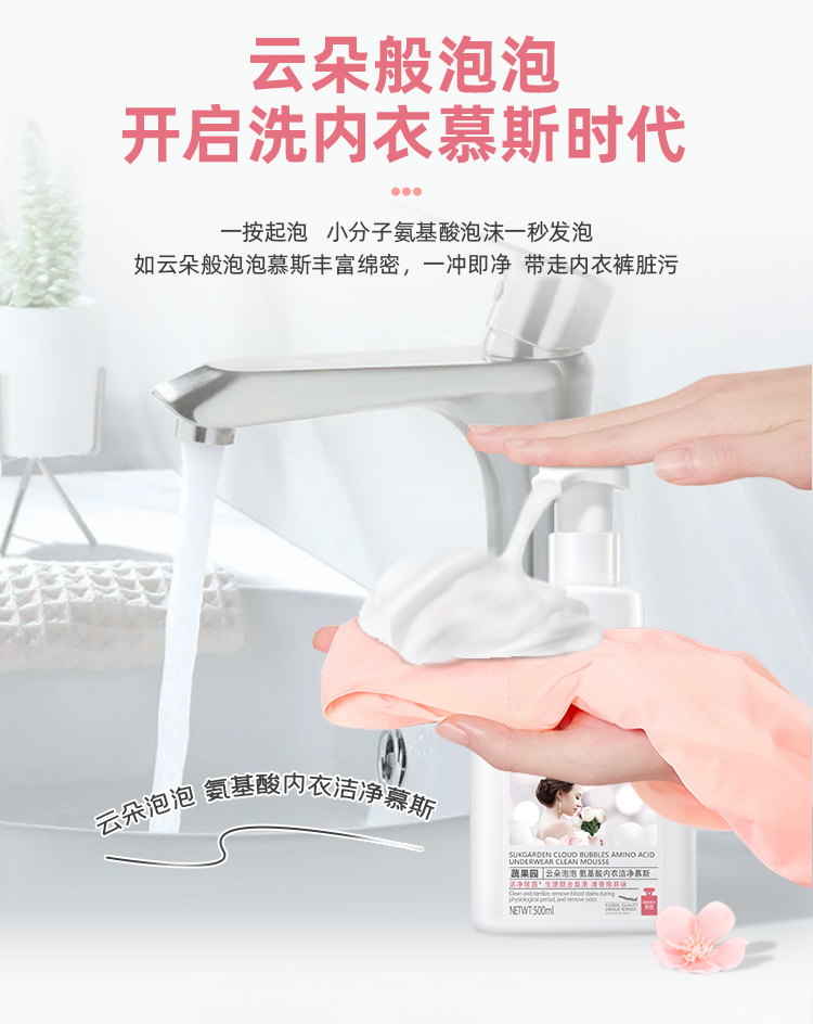 蔬果园云朵泡泡氨基酸内衣洗衣洁净慕斯500ml 抑菌去异味 专洗内衣裤