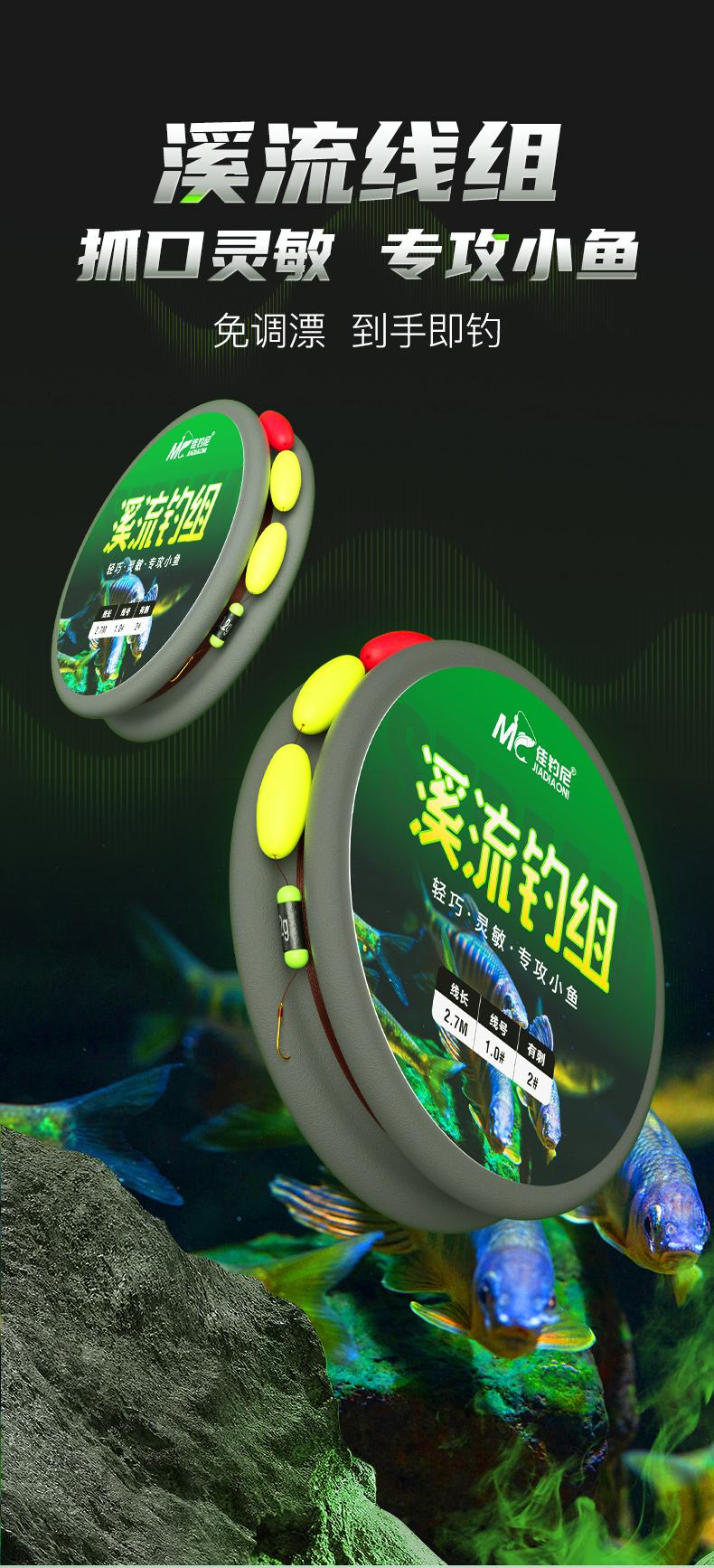佳钓尼溪流钓线组三粒漂七星漂小物白条石斑鳑鲏马口专用鱼线鱼钩