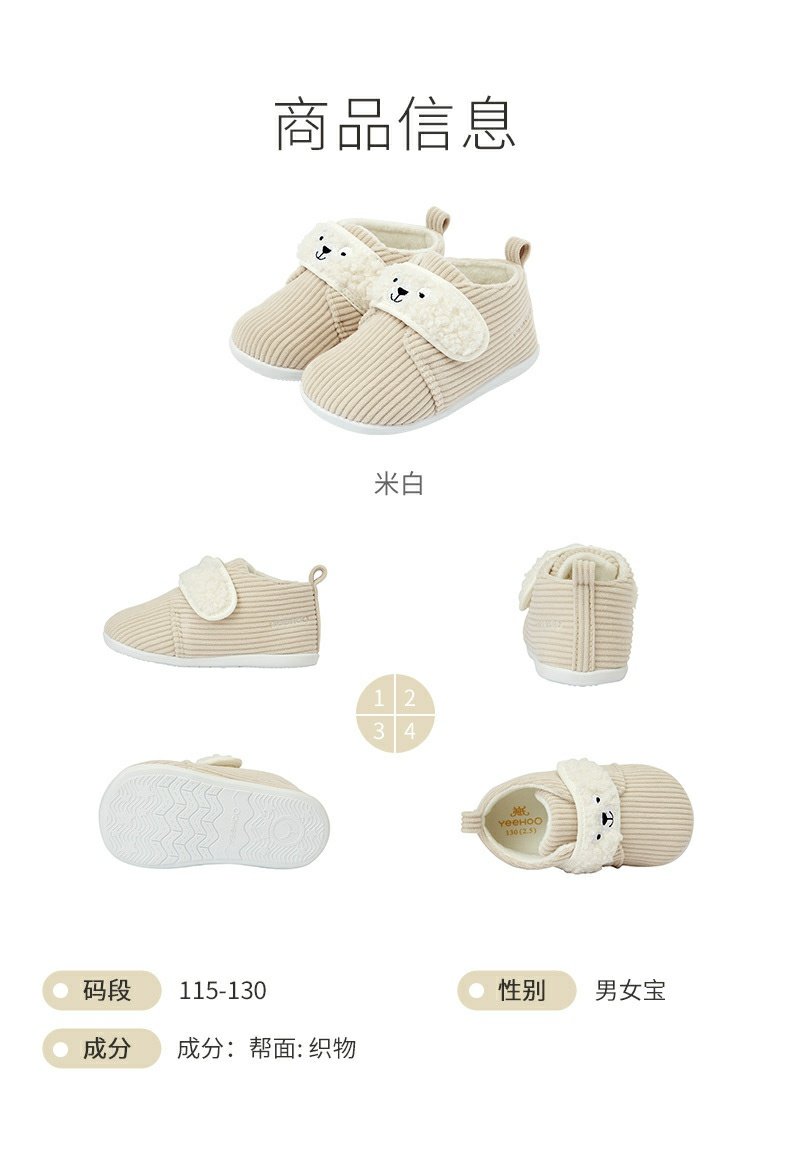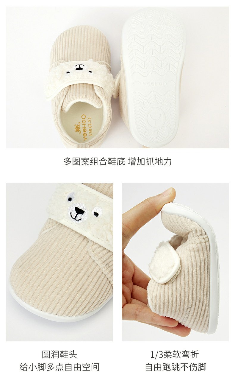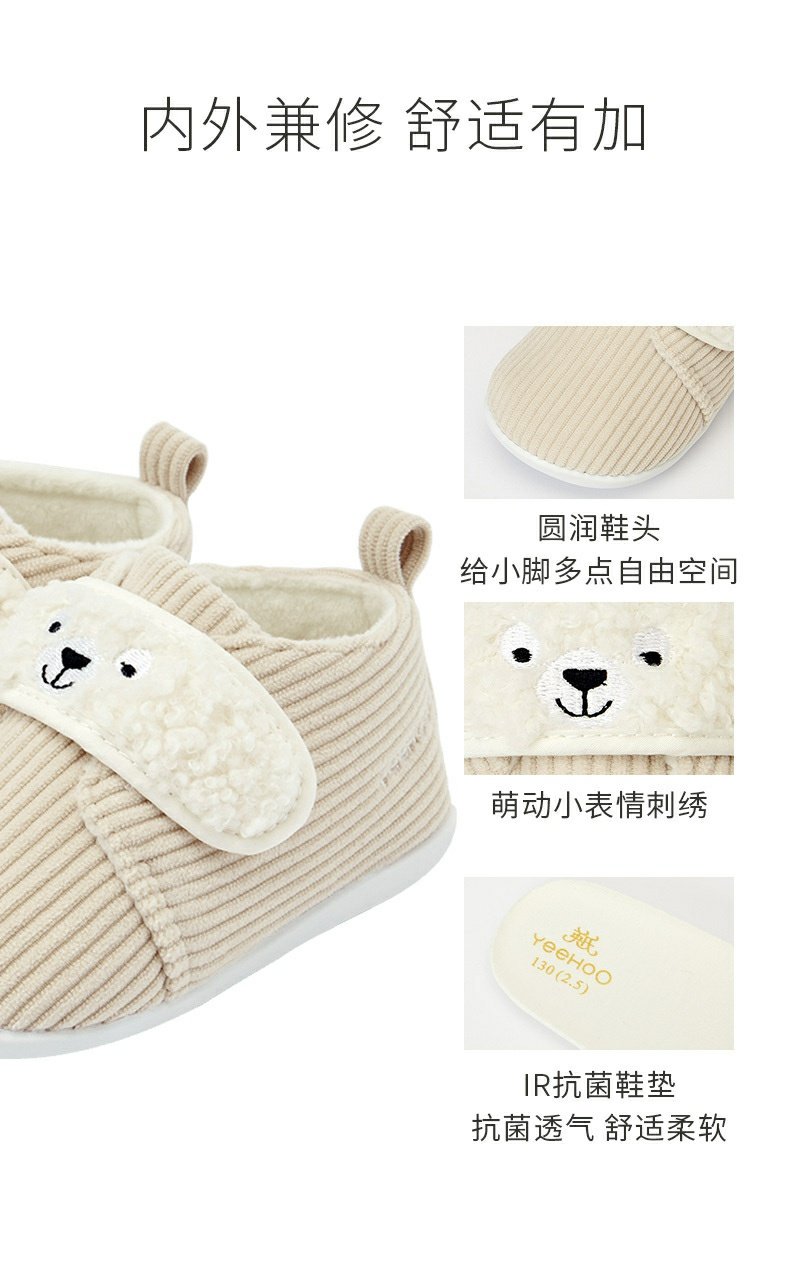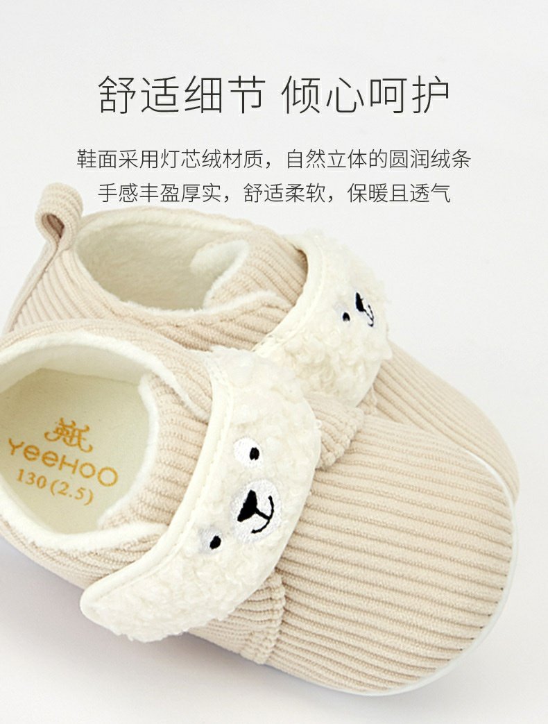 英氏婴儿灯芯绒学步鞋宝宝加绒保暖鞋子可爱超萌童鞋YFXKJ32181A