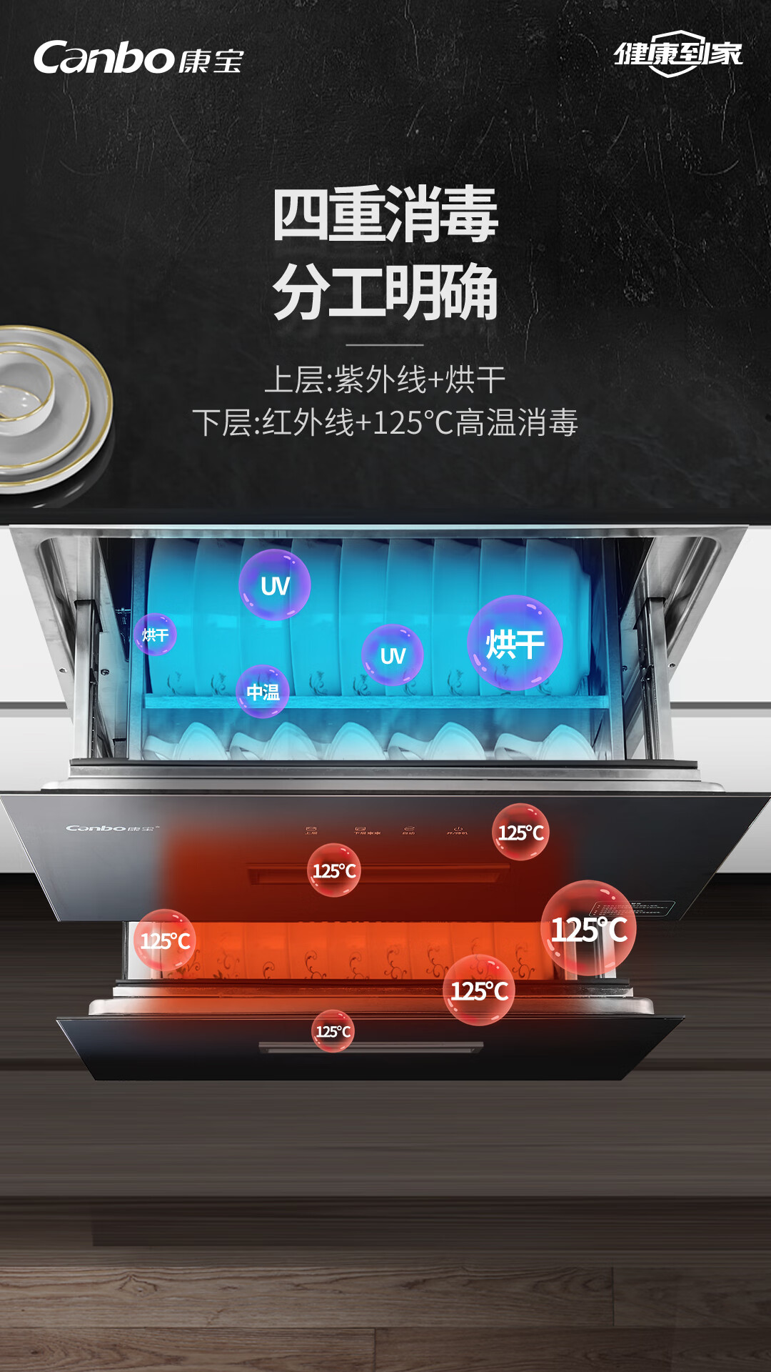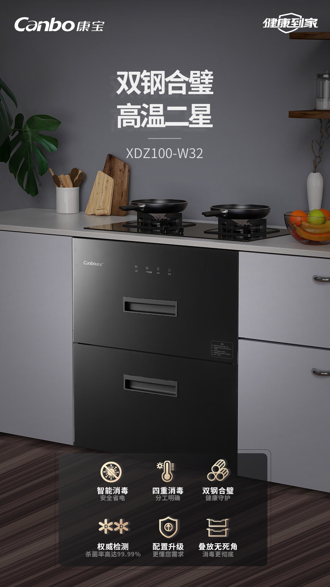 IBF艾博菲康宝(Canbo)家用嵌入式__双层碗筷柜_二星级高温_紫外线消毒100L大容量_不锈钢板架W32款_二星级_100L_——XDZ100-W32【K】