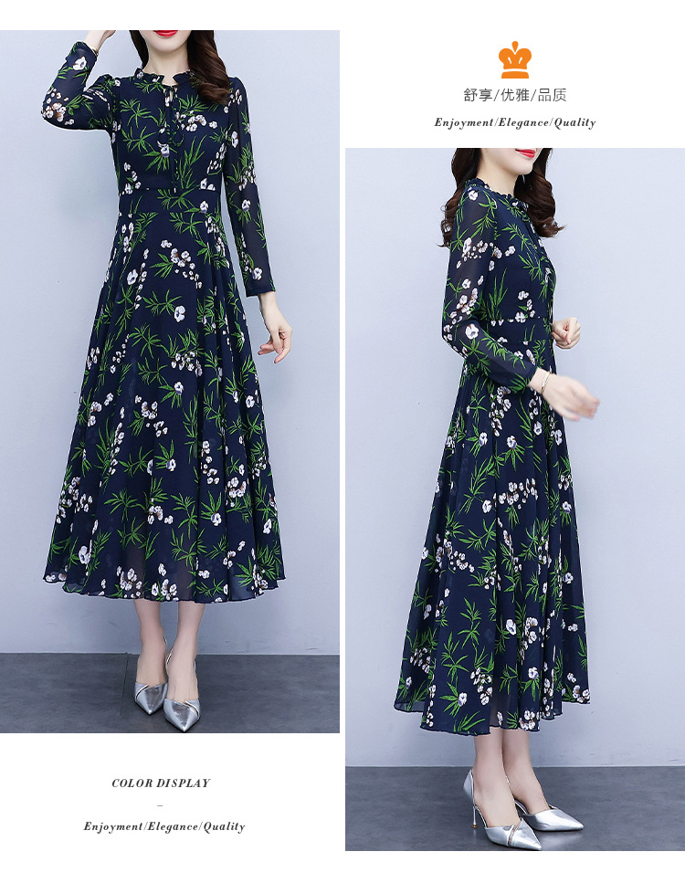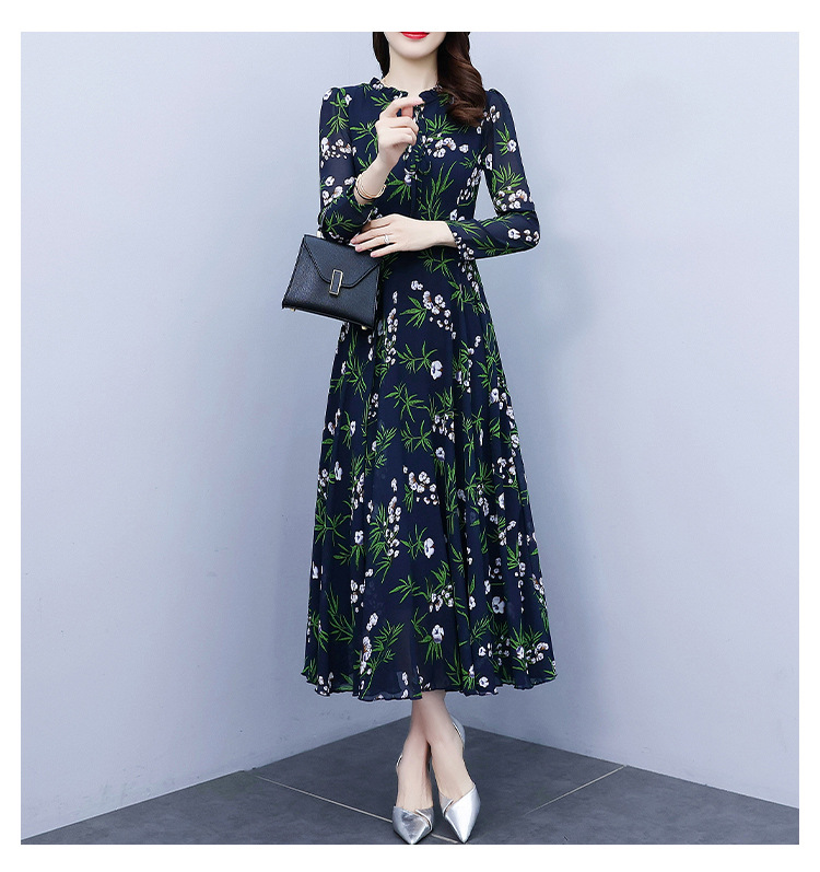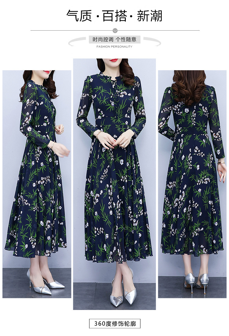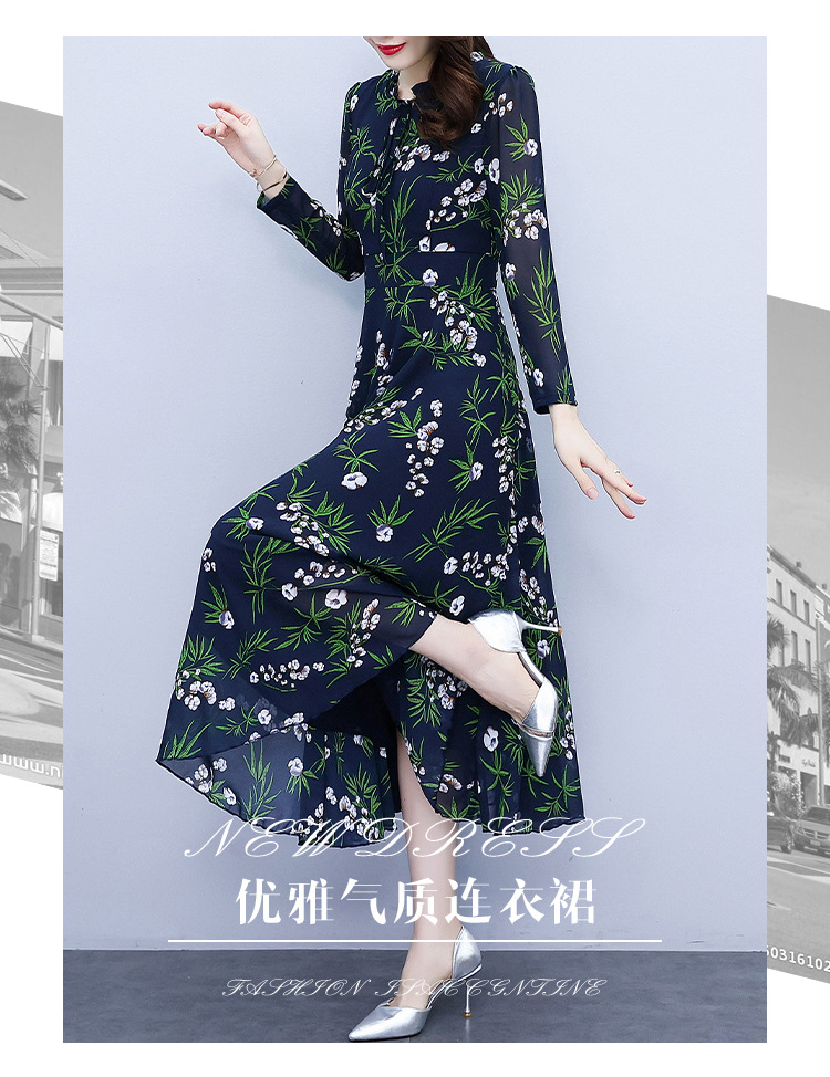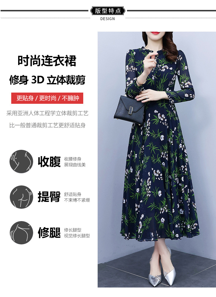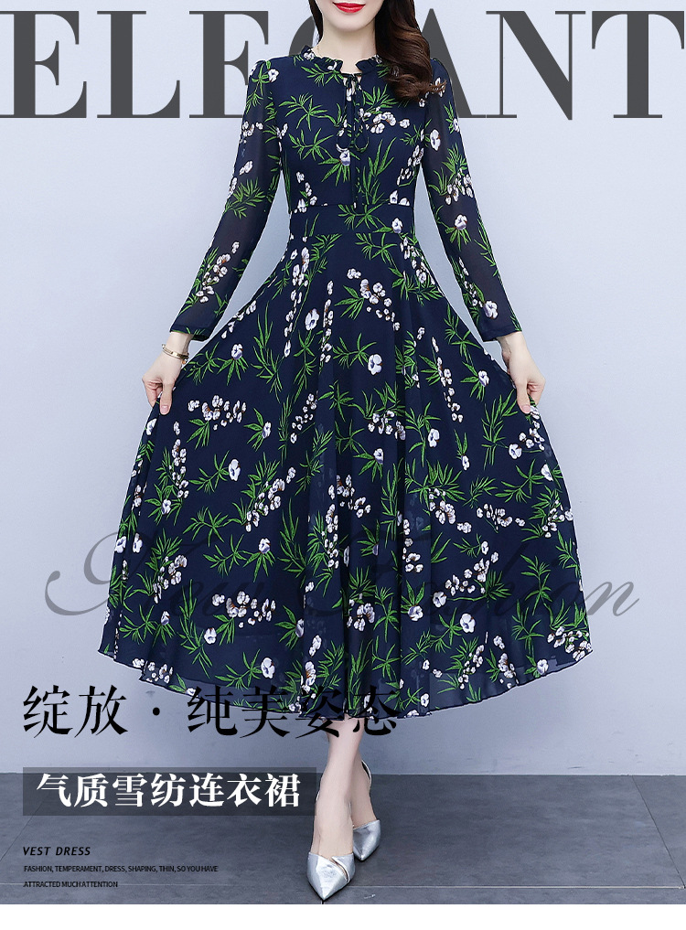 2022新款大摆长袖雪纺连衣裙女长款收腰气质裙子显瘦长裙 YX8139