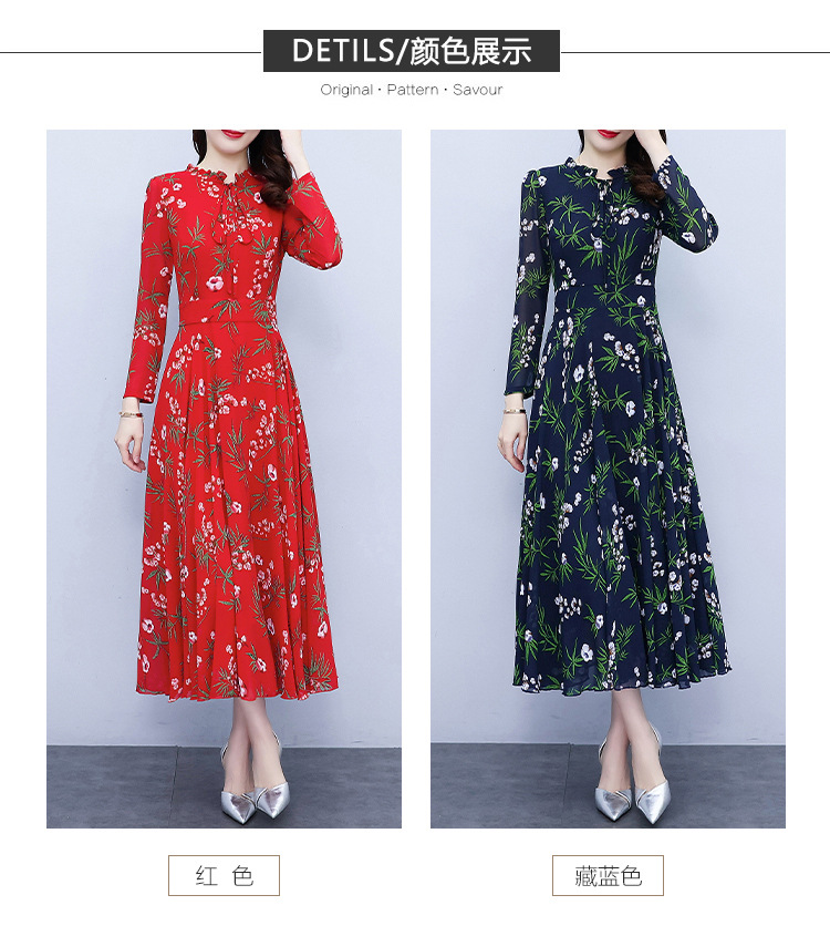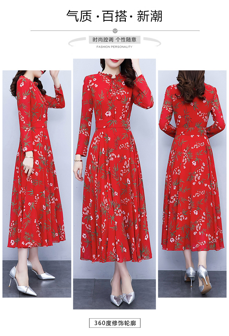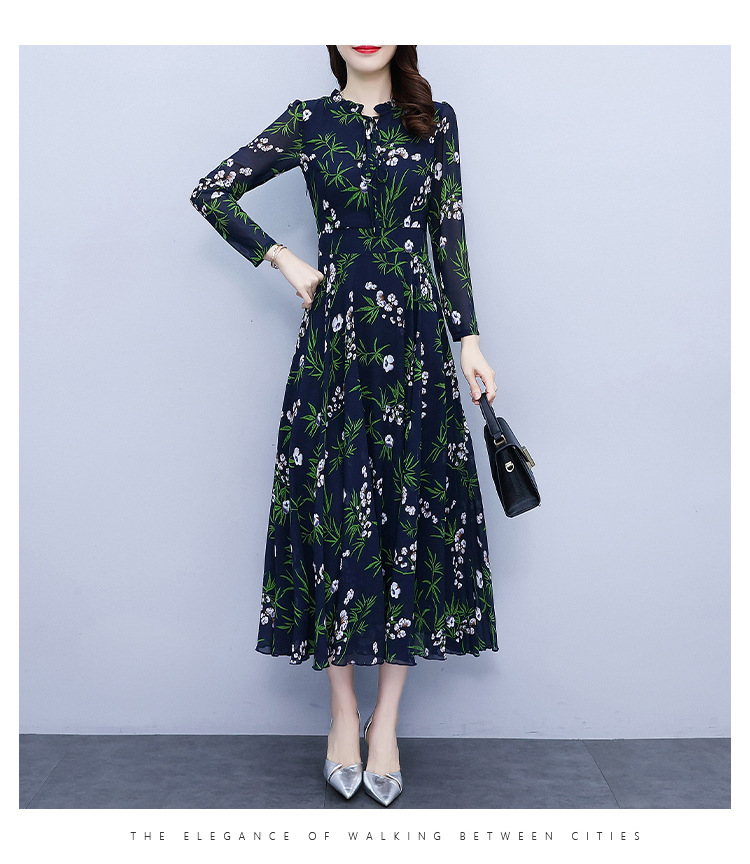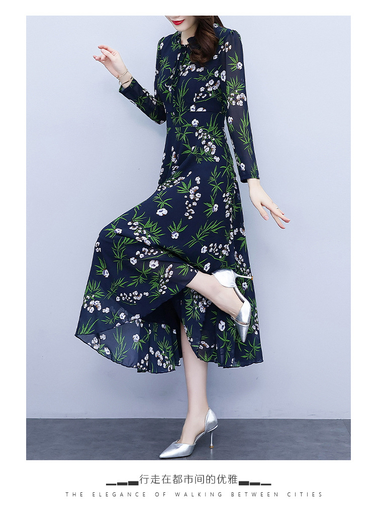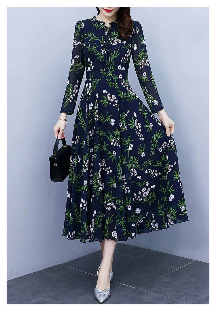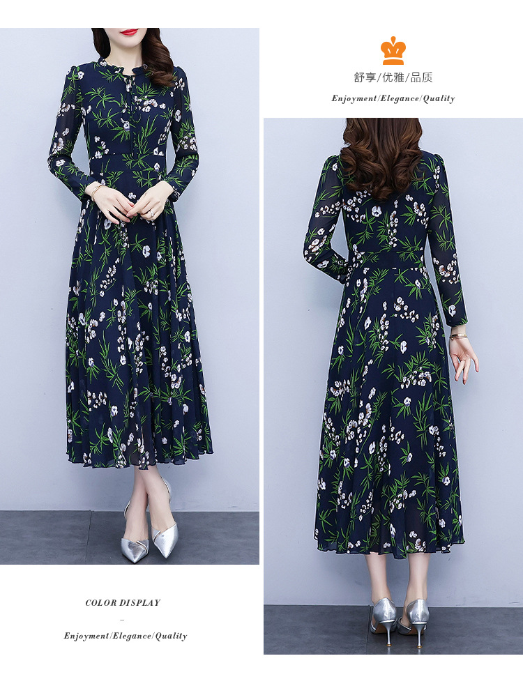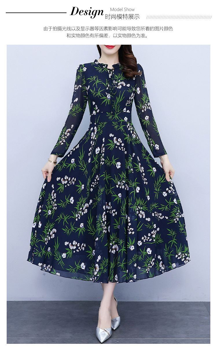 2022新款大摆长袖雪纺连衣裙女长款收腰气质裙子显瘦长裙 YX8139