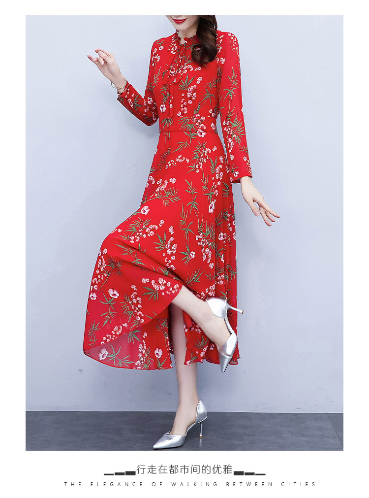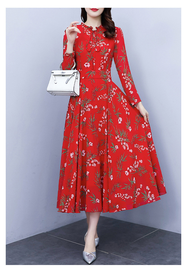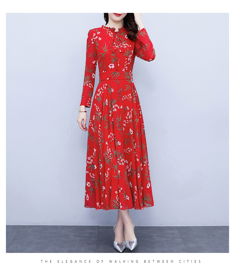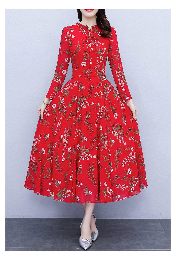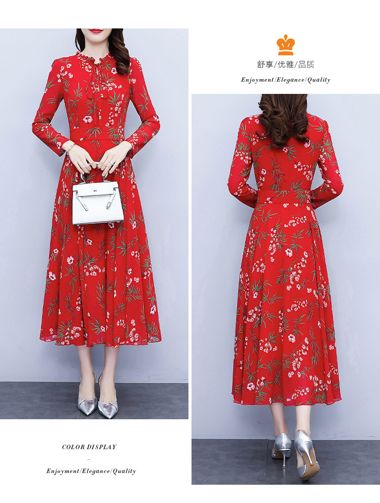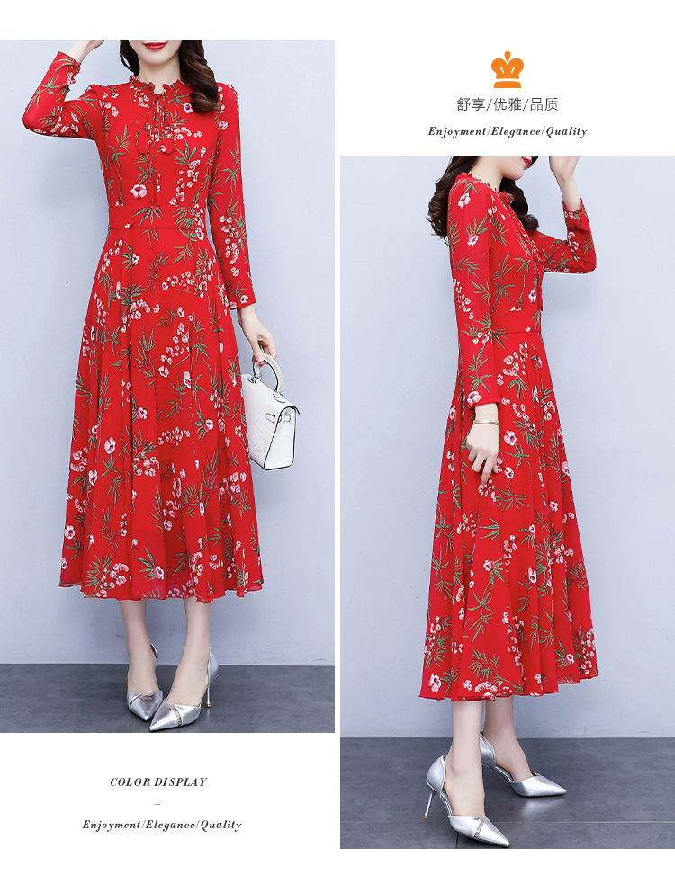 2022新款大摆长袖雪纺连衣裙女长款收腰气质裙子显瘦长裙 YX8139