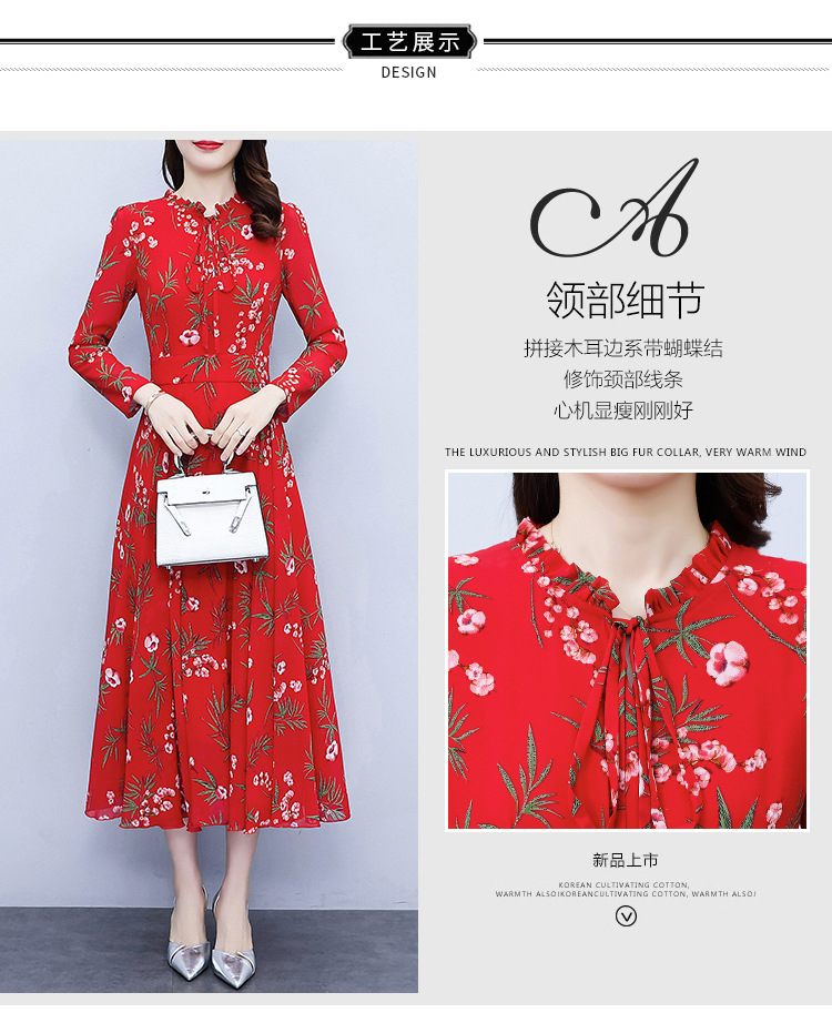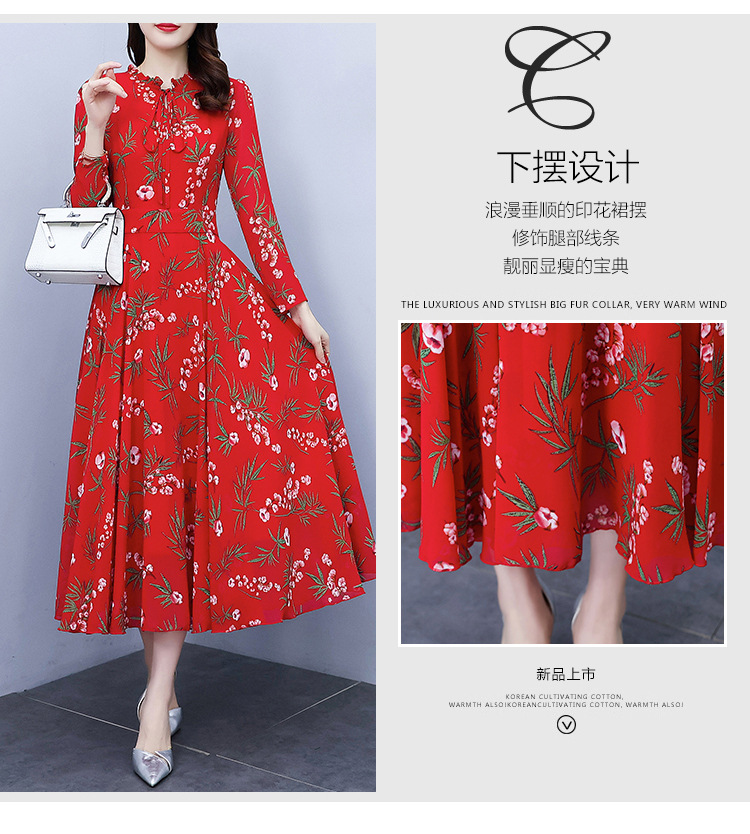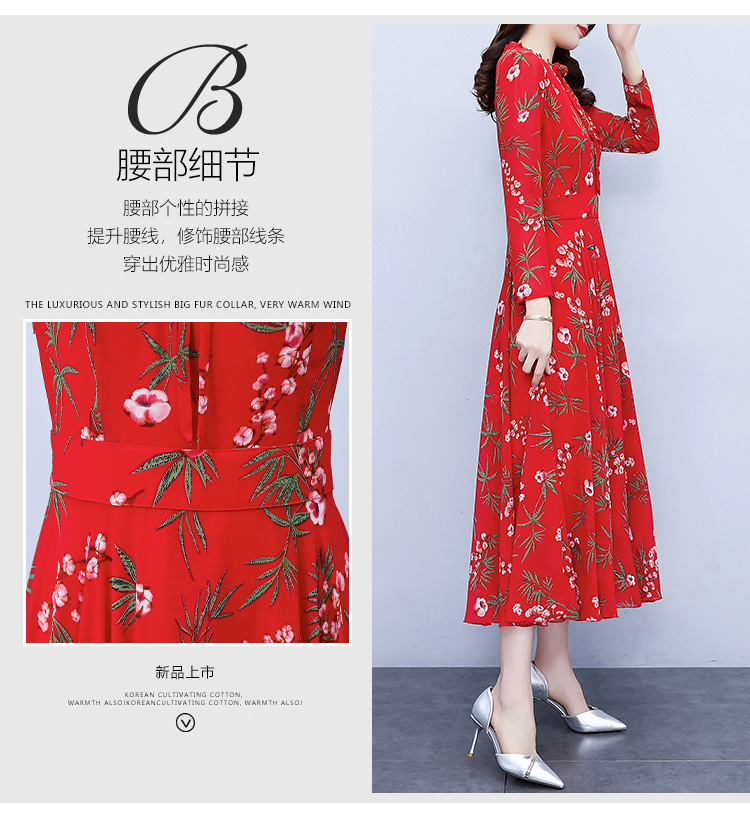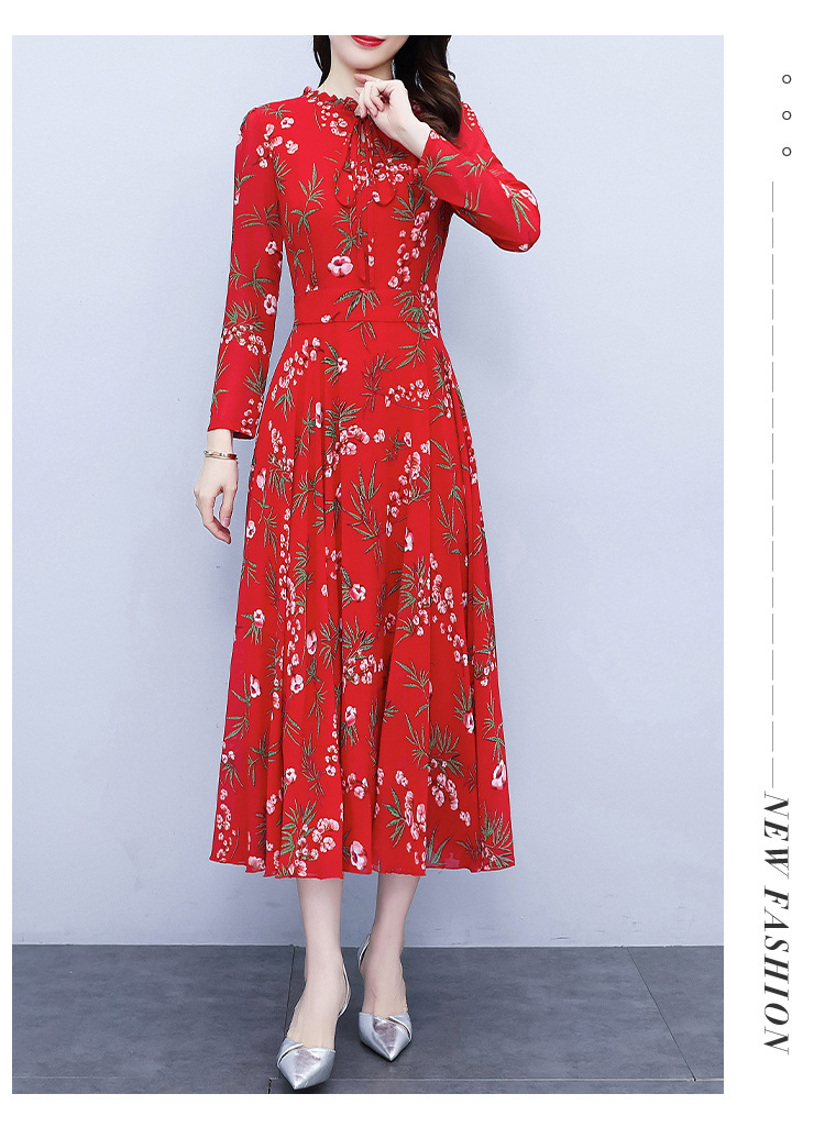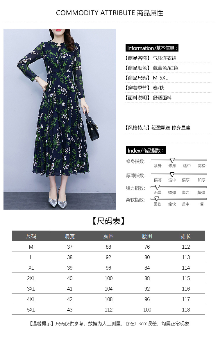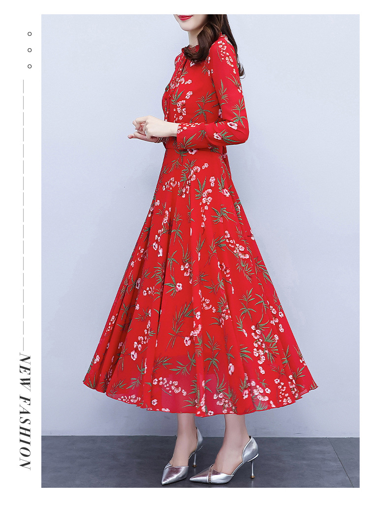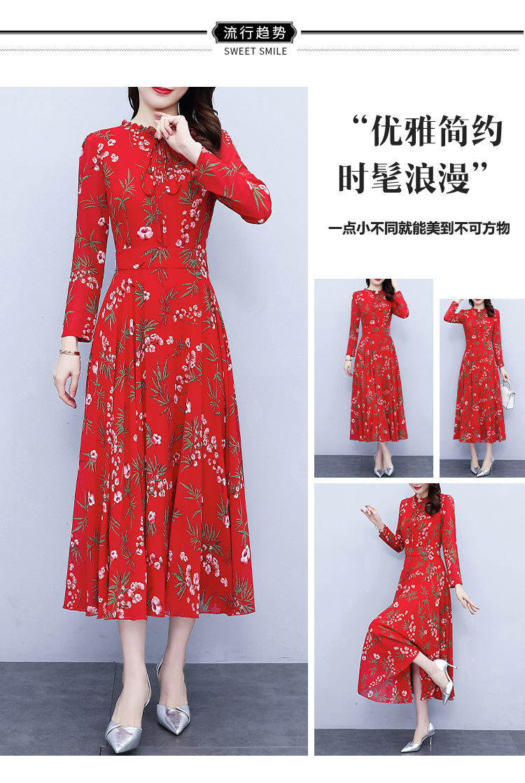 2022新款大摆长袖雪纺连衣裙女长款收腰气质裙子显瘦长裙 YX8139