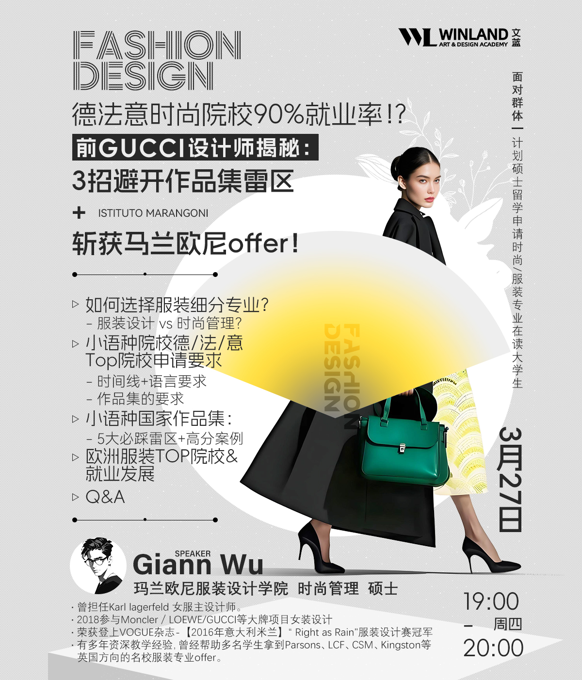 【3.27】德法意时尚院校90%就业率⁉️ 前GUCCI设计师揭秘:3招避开作品集雷区+斩获马兰欧尼offer!