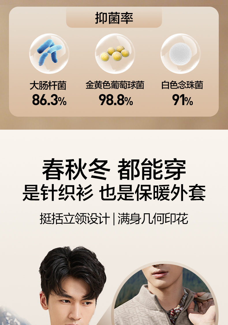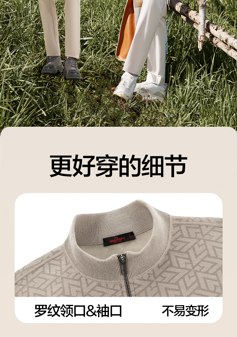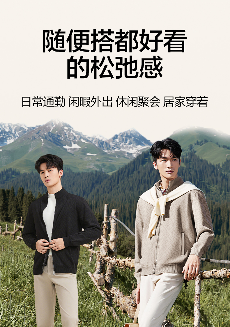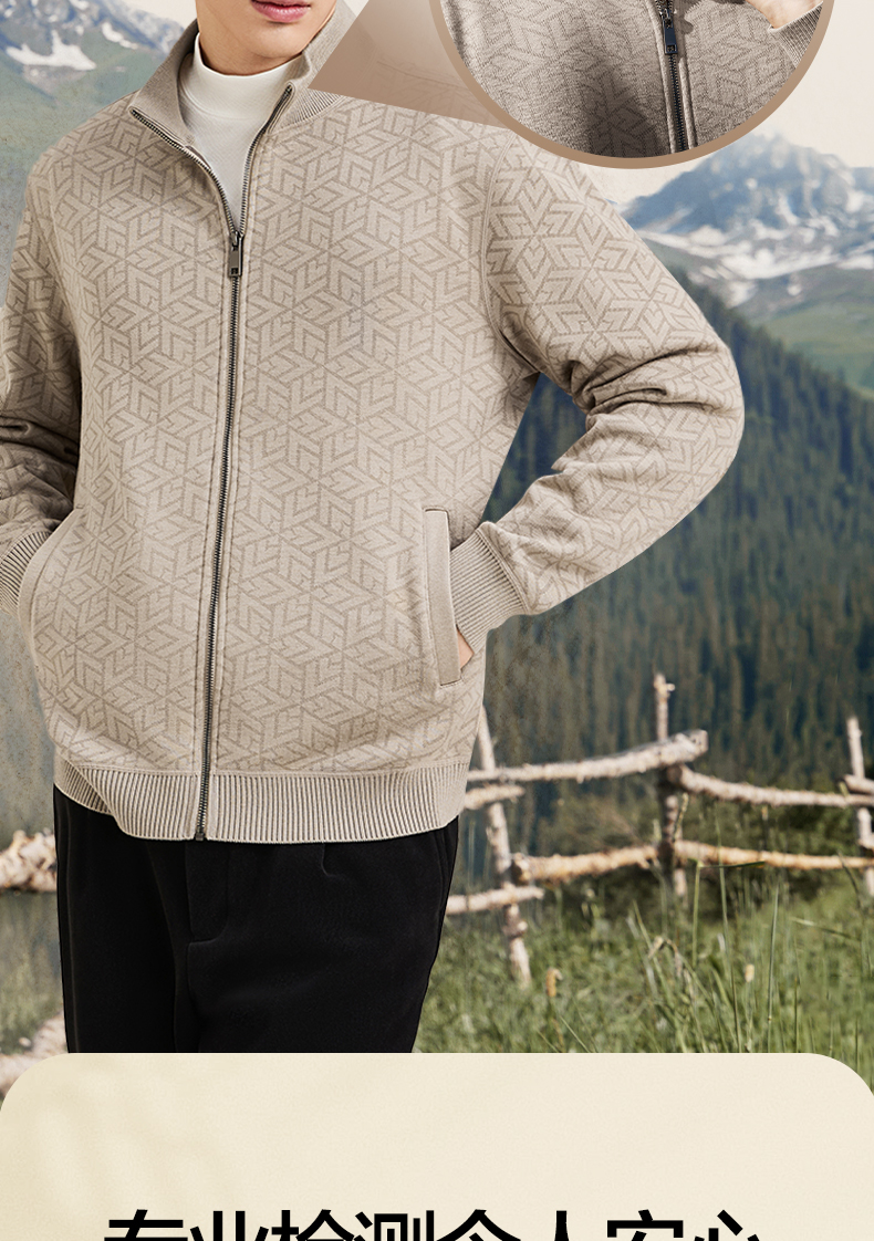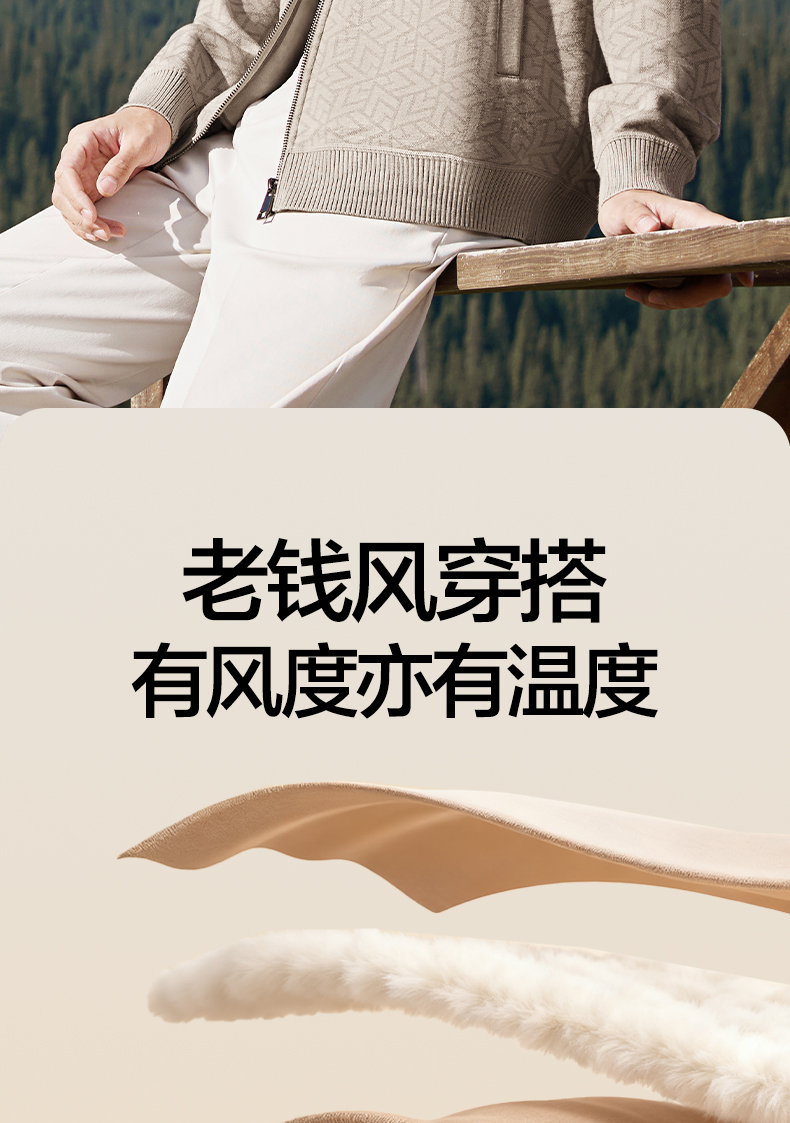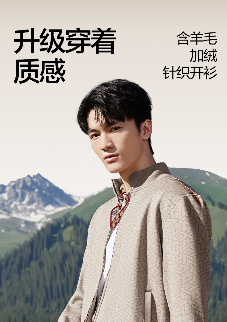 【7A抗菌/加绒/含羊毛】柒牌男士开襟毛衫时尚休闲立领针织衫毛衣129Y70160