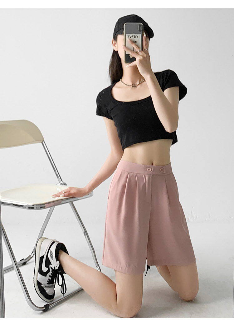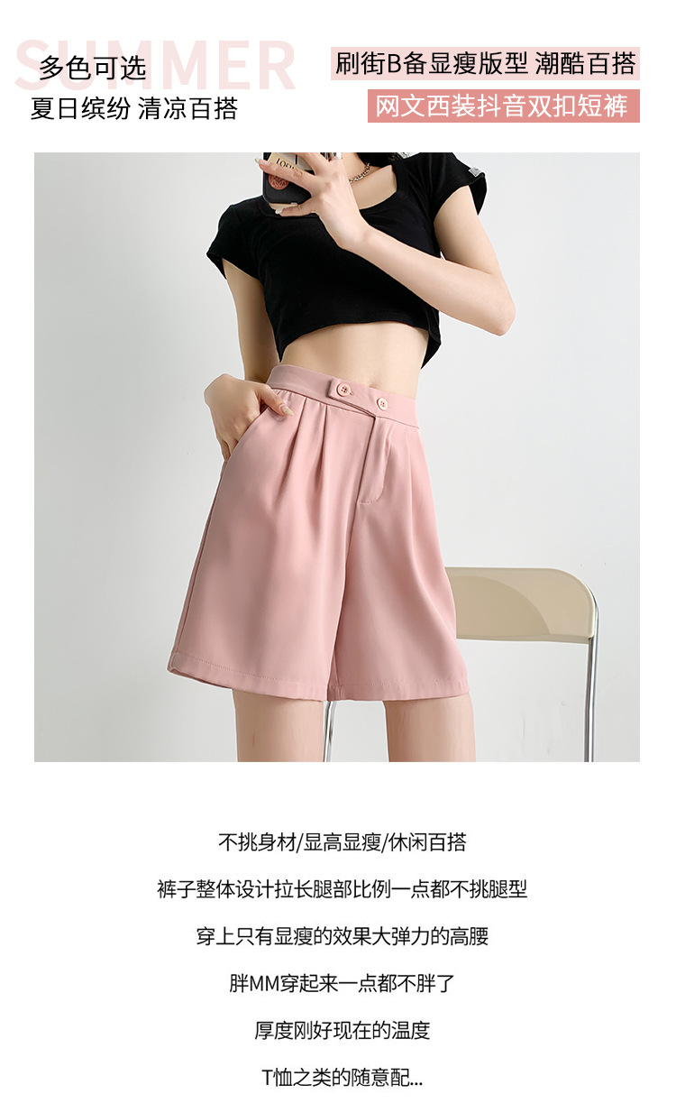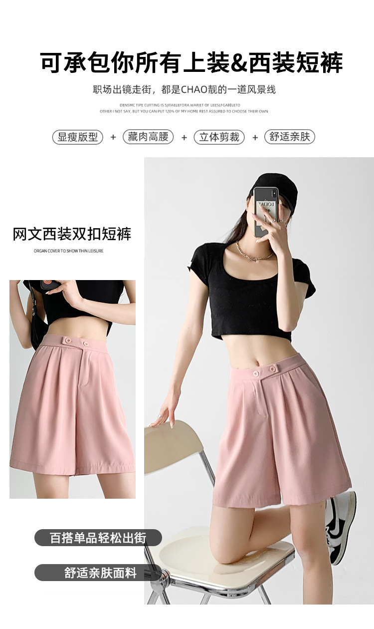 【别样小清新,粉西套装短裤】闪耀夏日!超显腿型a字直筒设计,让你高腰阔腿漂亮随意;轻盈面料舒适贴肤,出行旅游必备良选!