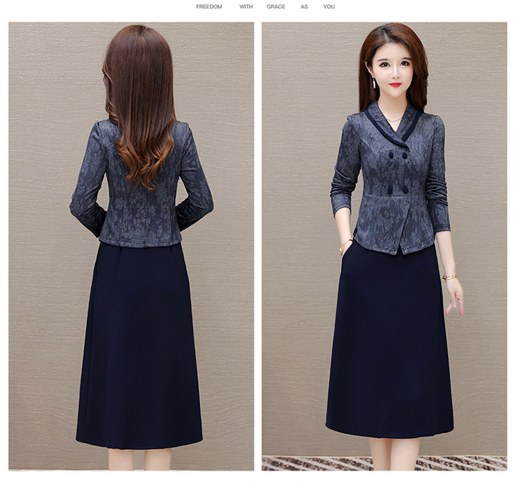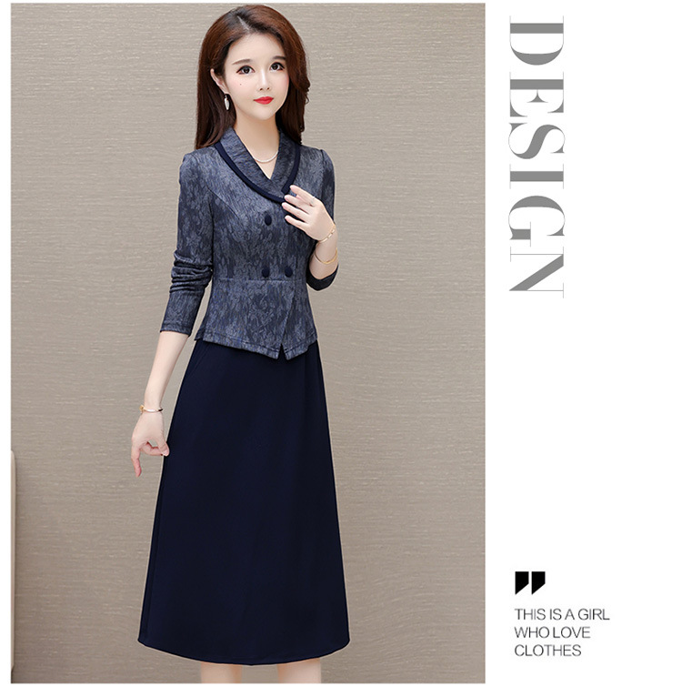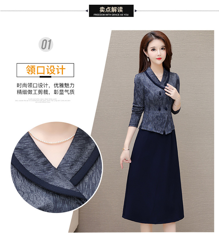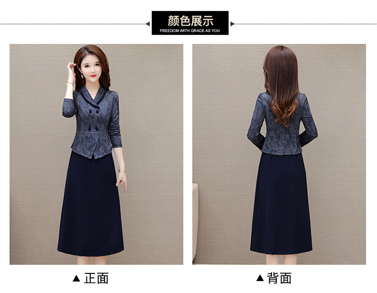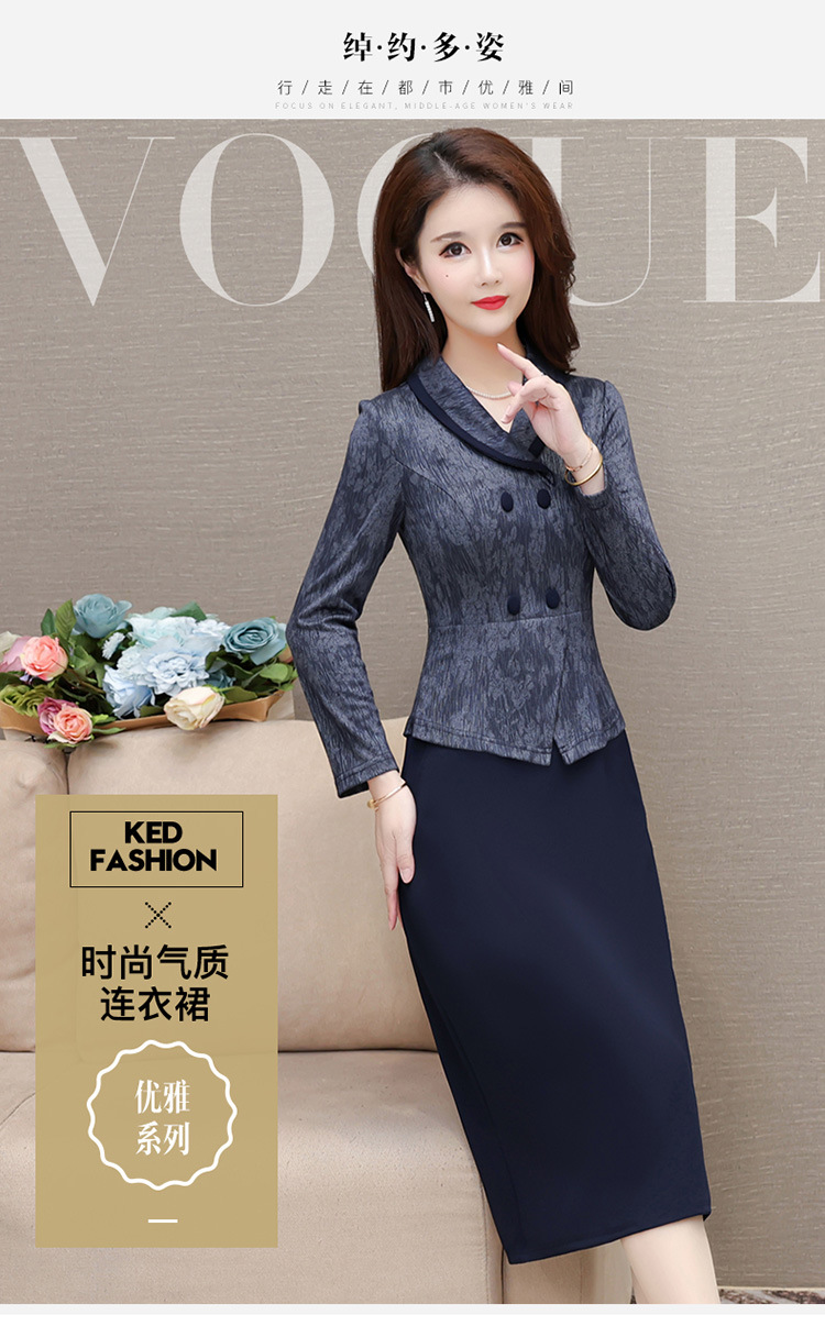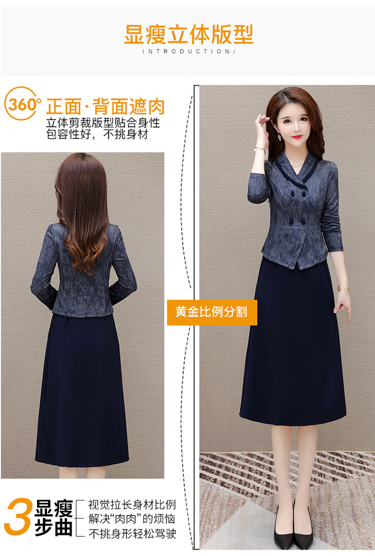 时尚假两件连衣裙,优雅中长款长袖裙QYM- KED-H2177-Y
