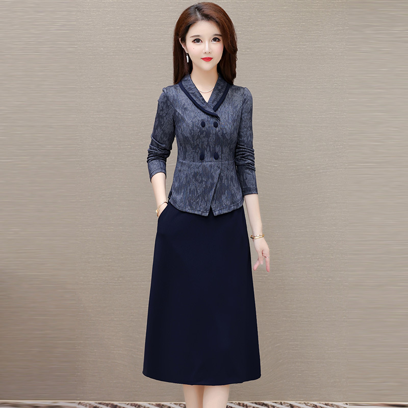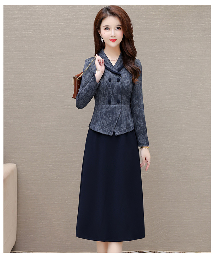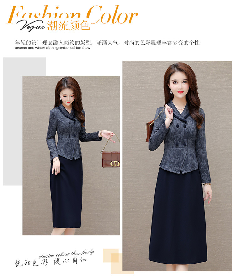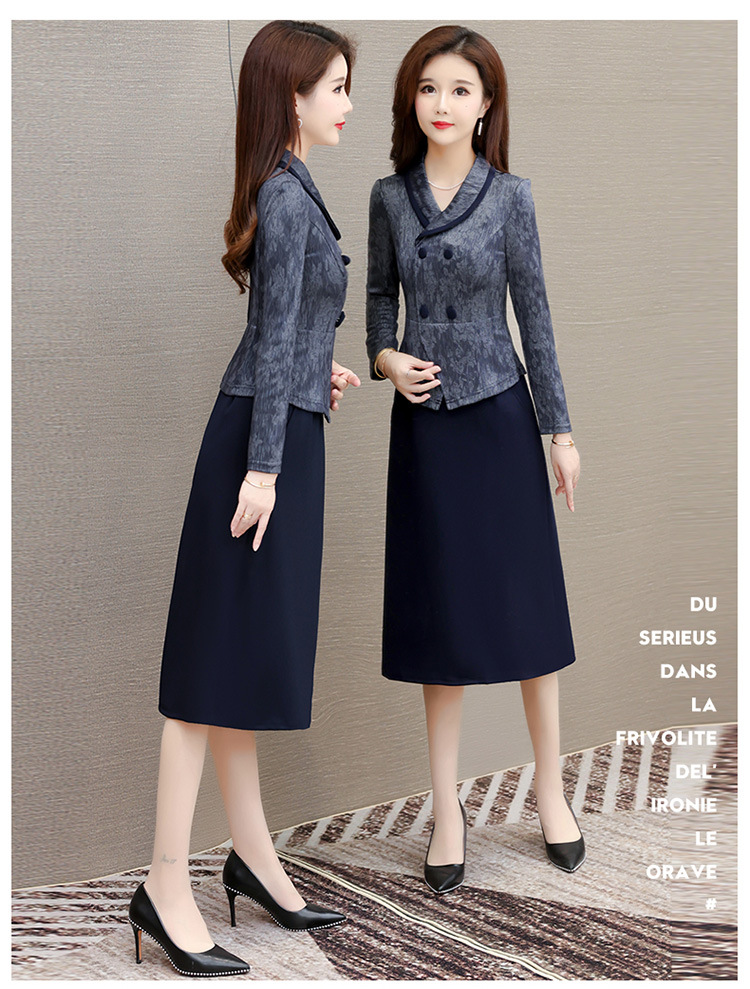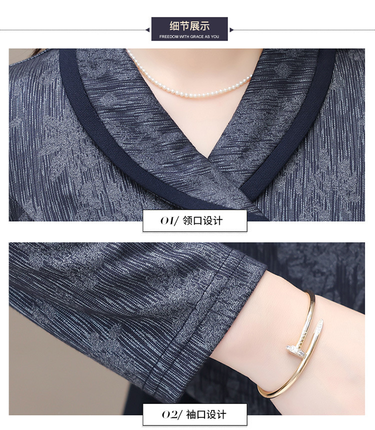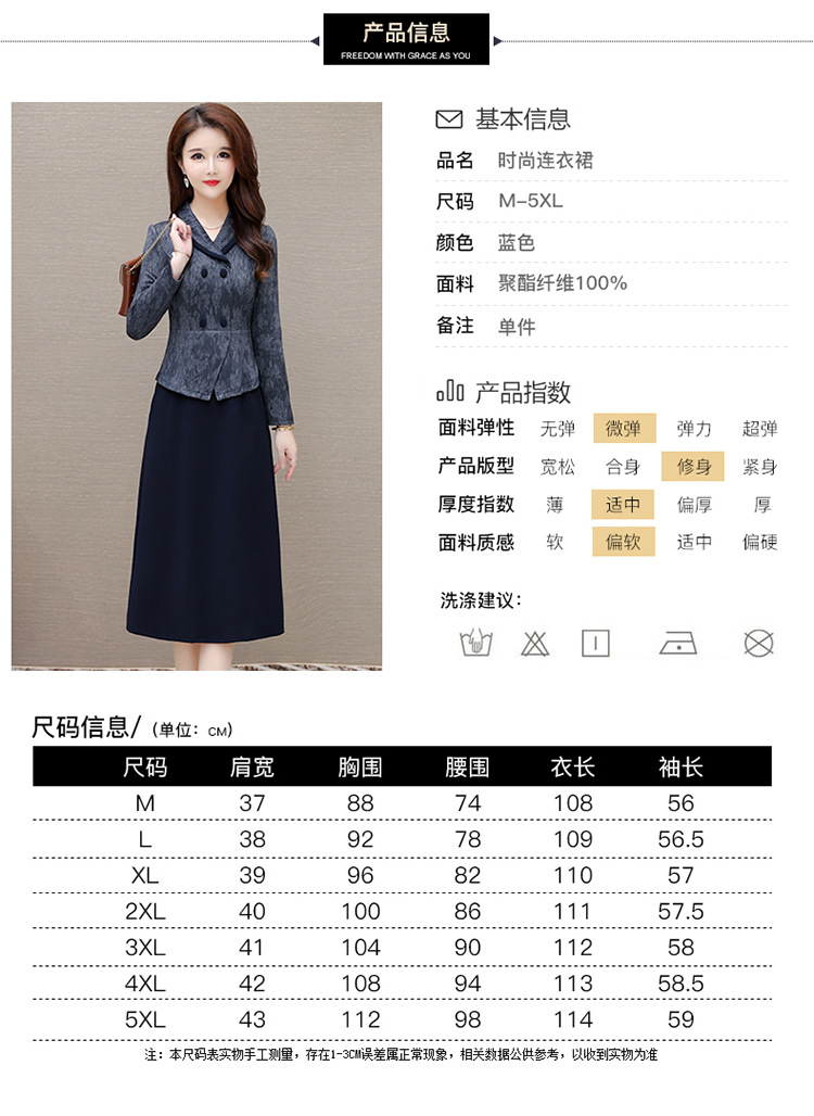 时尚假两件连衣裙,优雅中长款长袖裙QYM- KED-H2177-Y