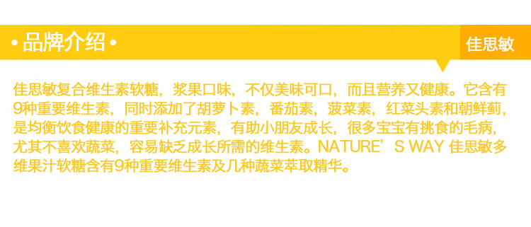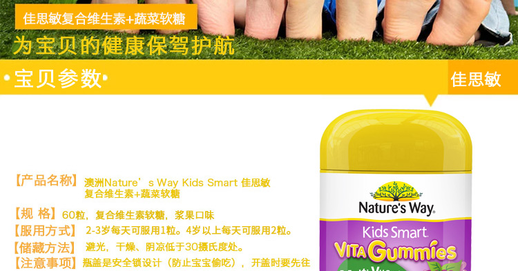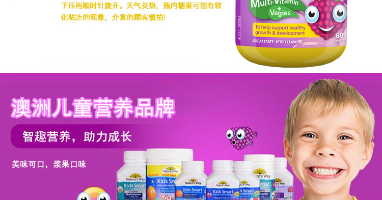 【保税仓】澳大利亚Nature's Way佳思敏 儿童维生素蔬菜营养软糖60粒