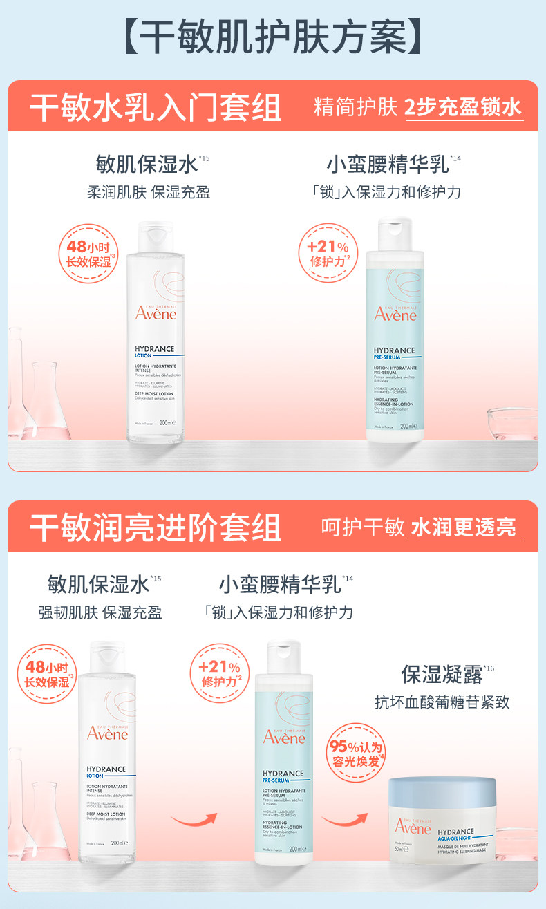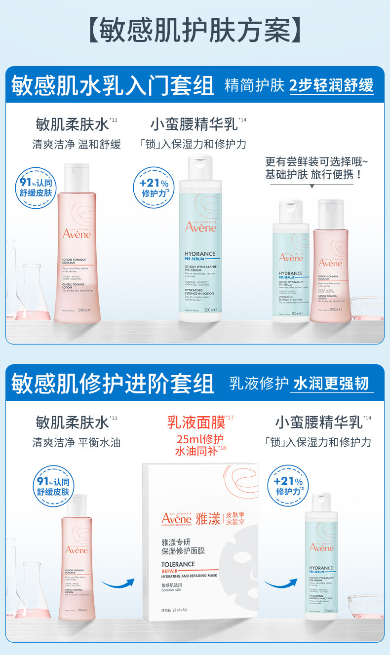 雅漾恒润水乳精华套装 滋润小蛮腰爽肤水乳液敏肌