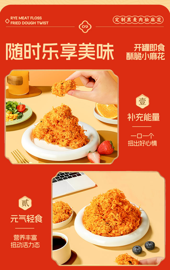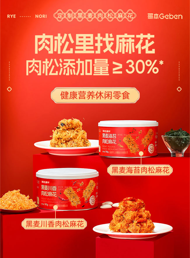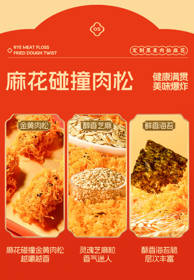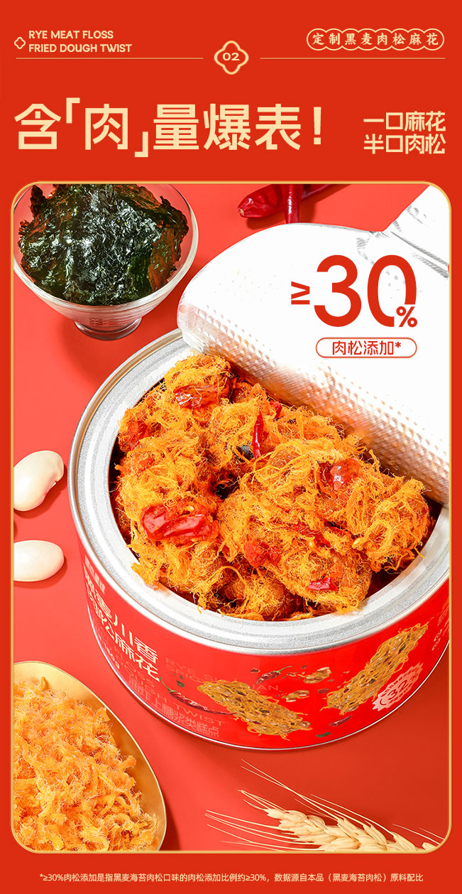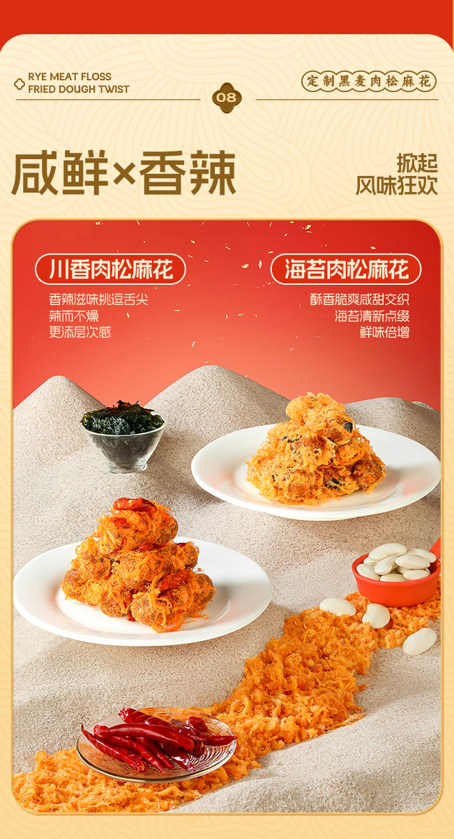 【共享分销】爆款双口味!满满肉松占比30%!哥本黑麦海苔/川香肉松麻花 香酥脆爽