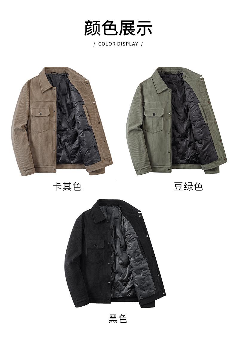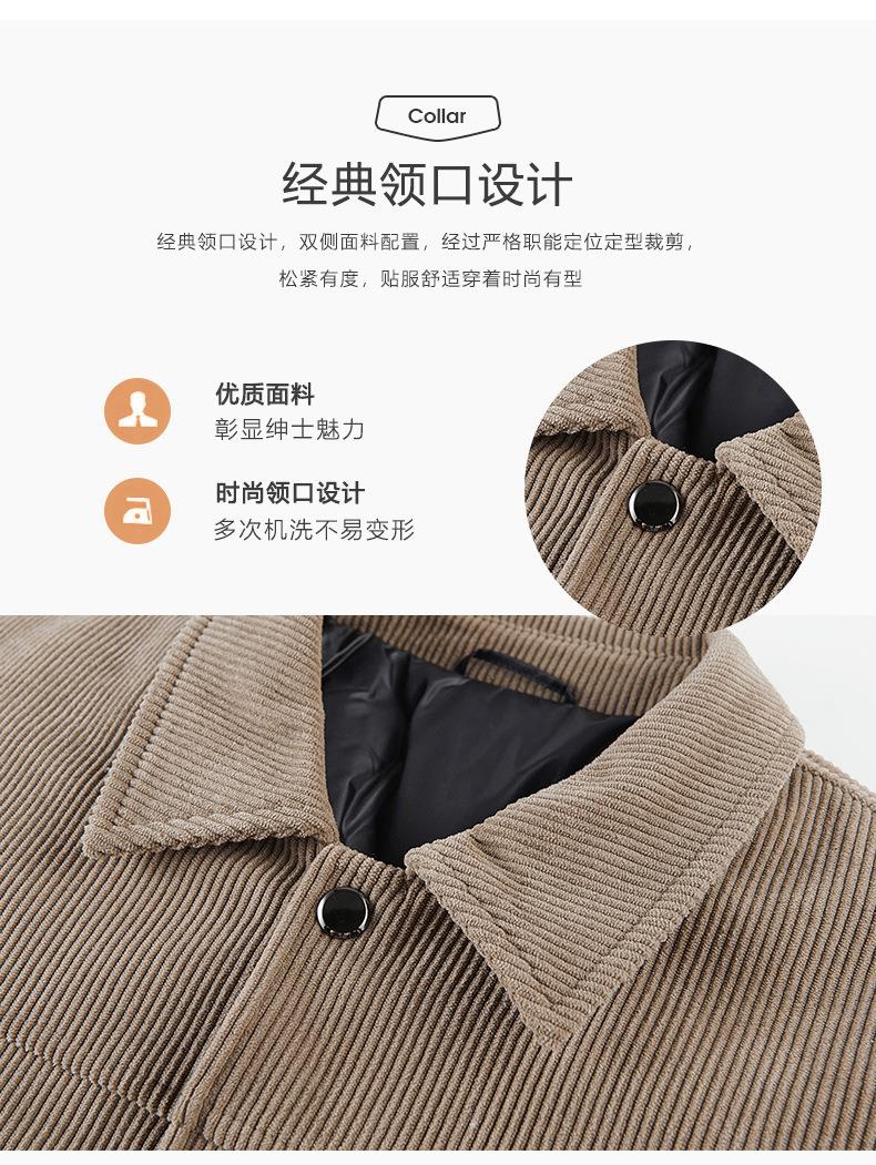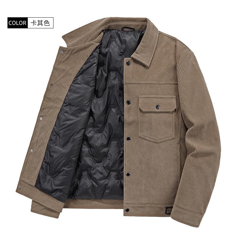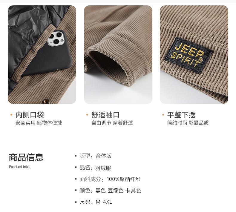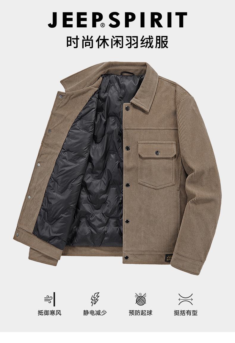 JEEP SPIRIT灯芯绒羽绒服男夹克冬季爸爸装休闲工装服HL8608B