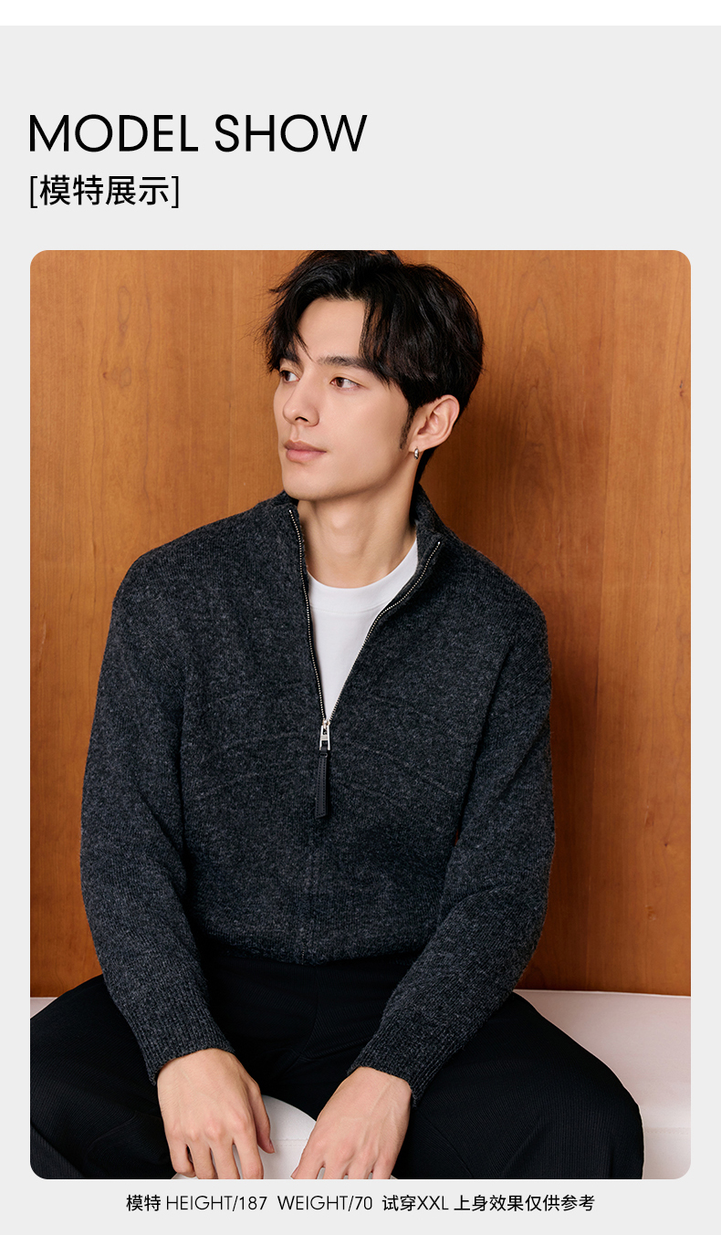贝纳川秋季半开式立领套头毛衣ECT316005