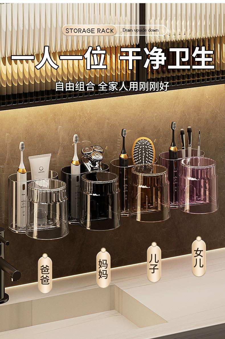 牙刷架漱口杯免打孔置物架牙杯牙刷架卫生间牙刷杯架壁挂式活动款