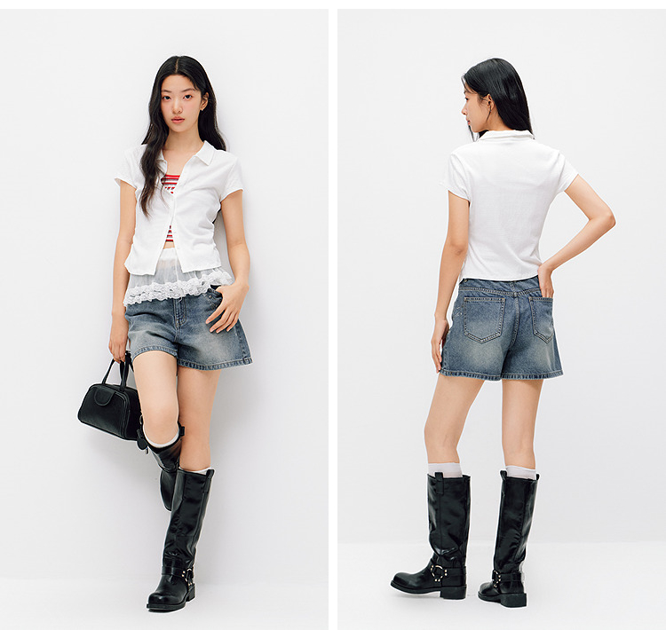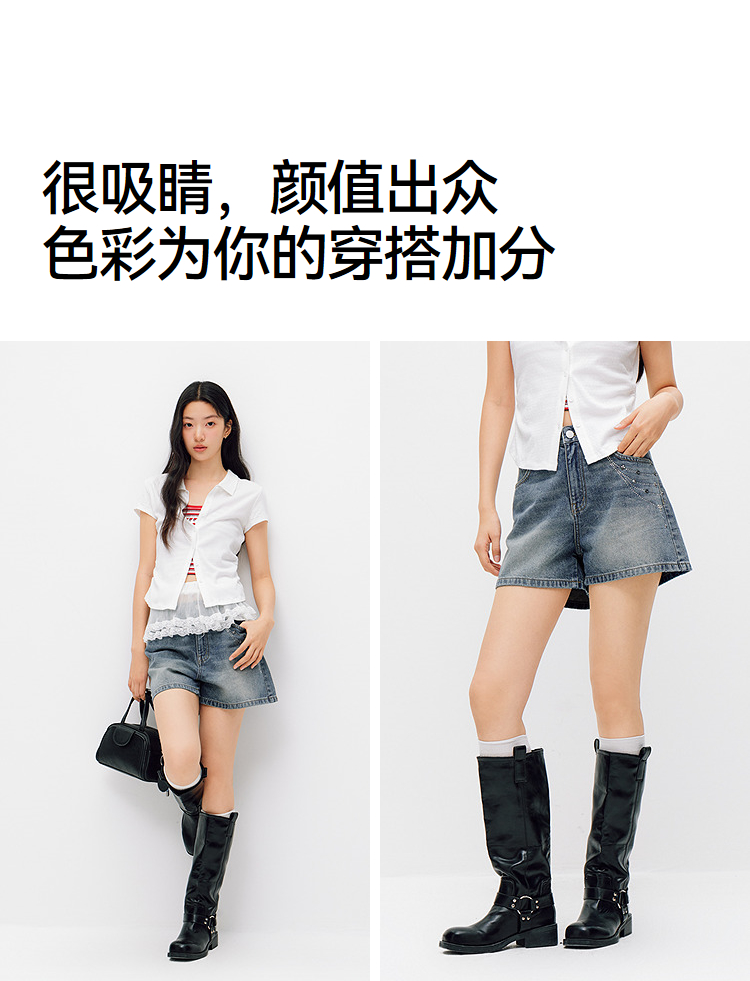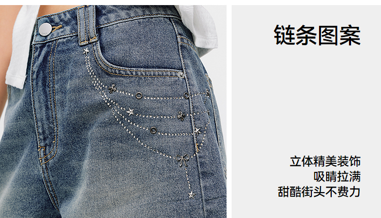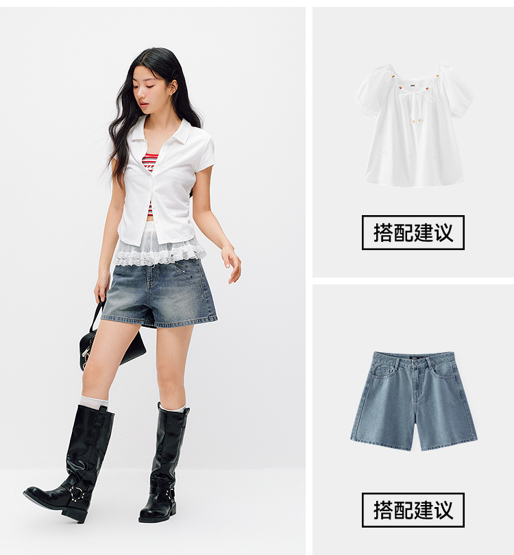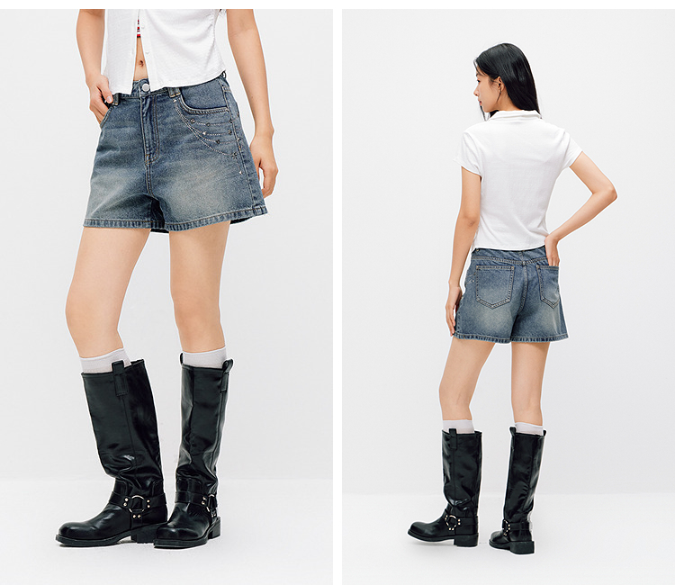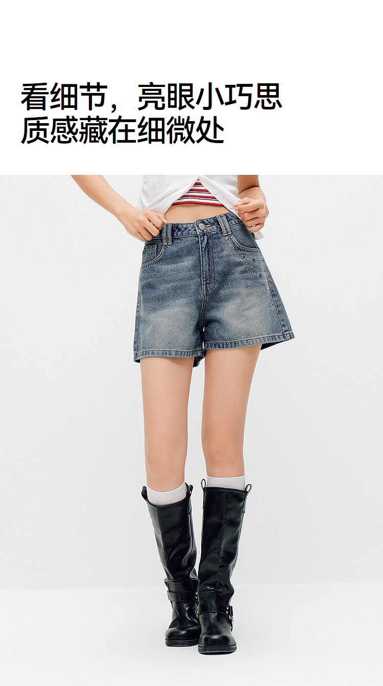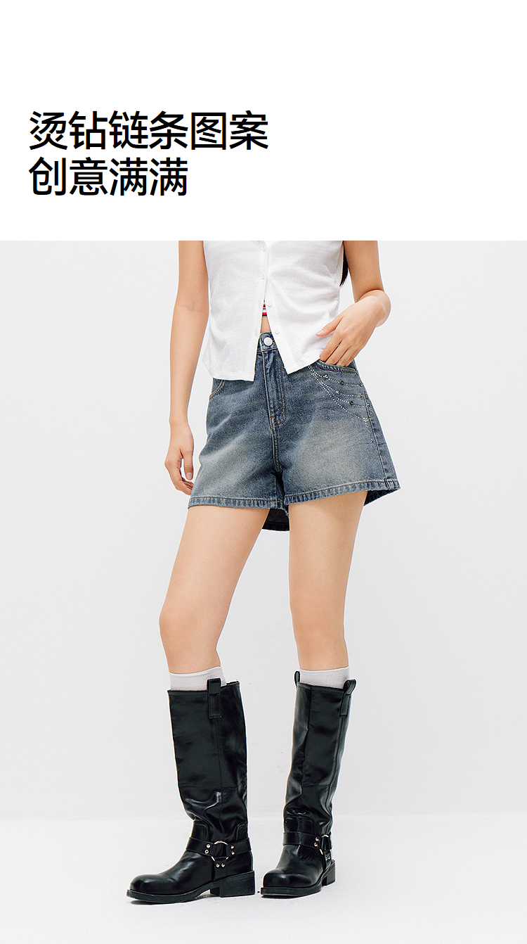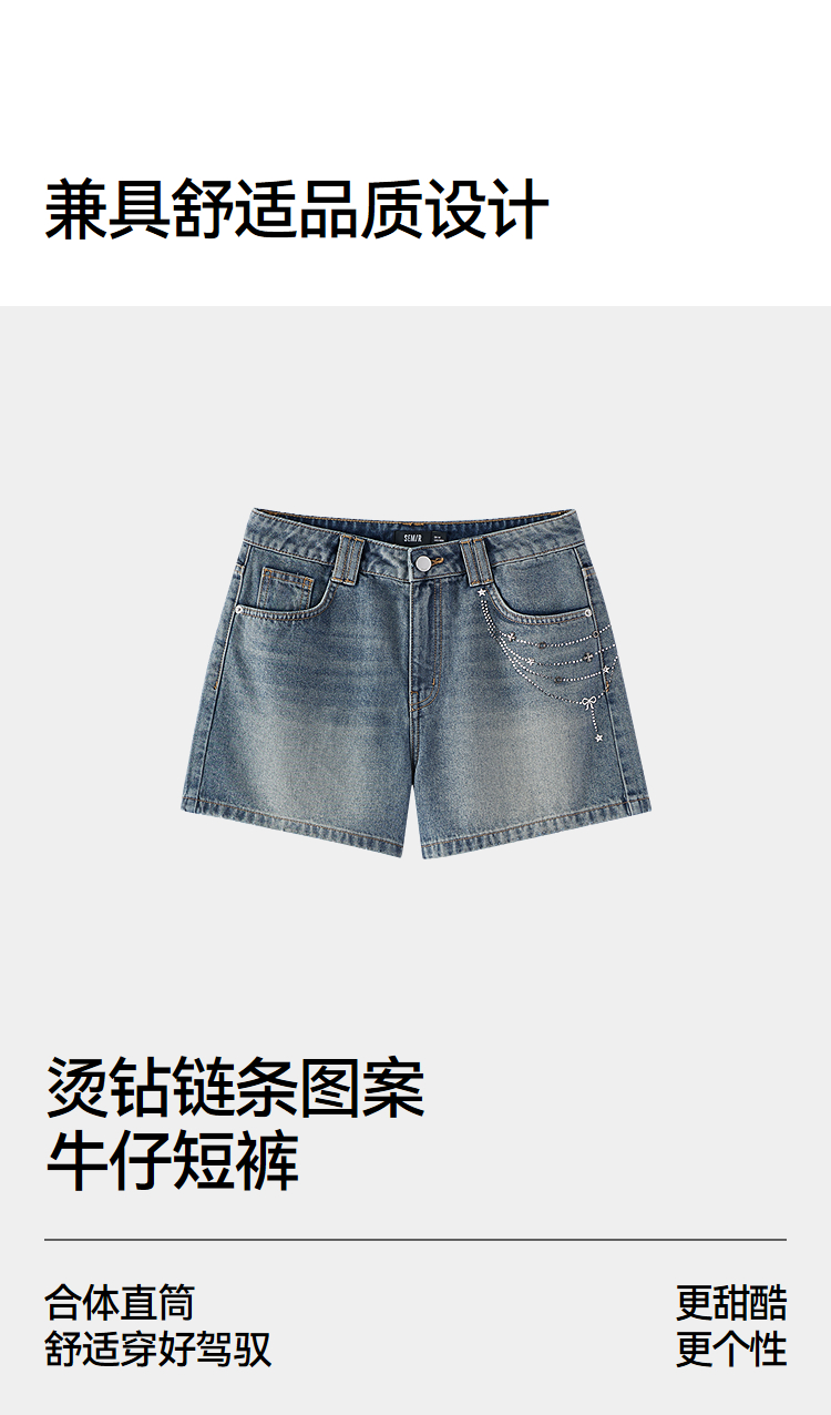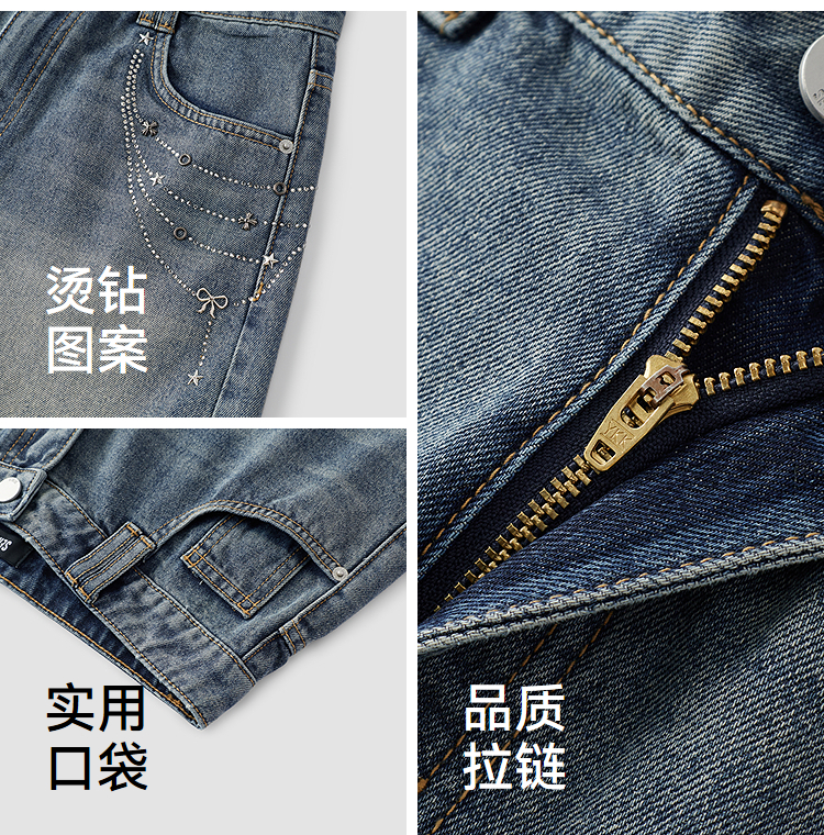 森马牛仔裤女夏季烫钻图案做旧2026新款甜酷街头女生个性时尚短裤