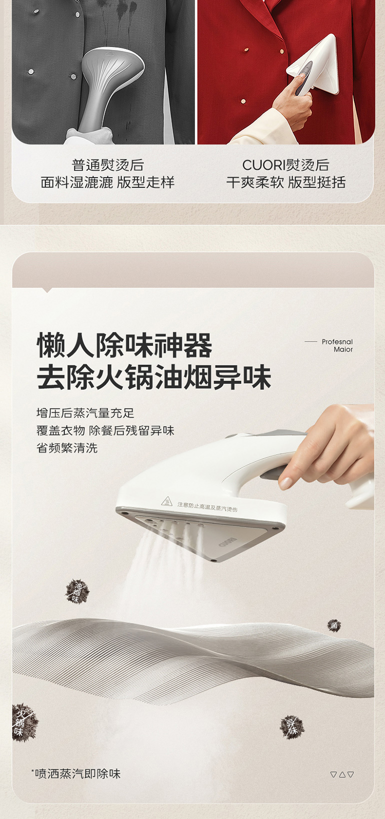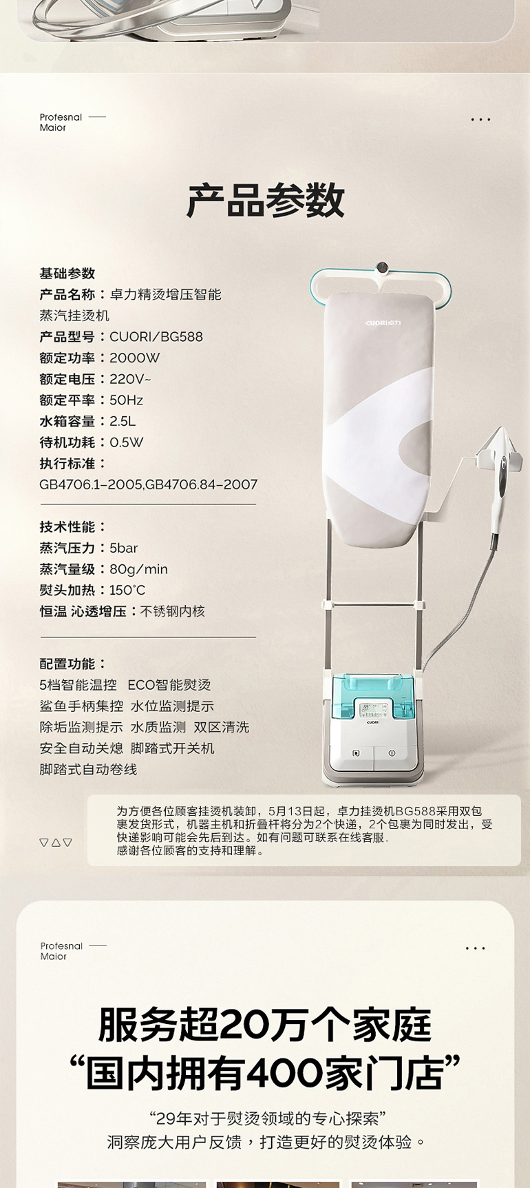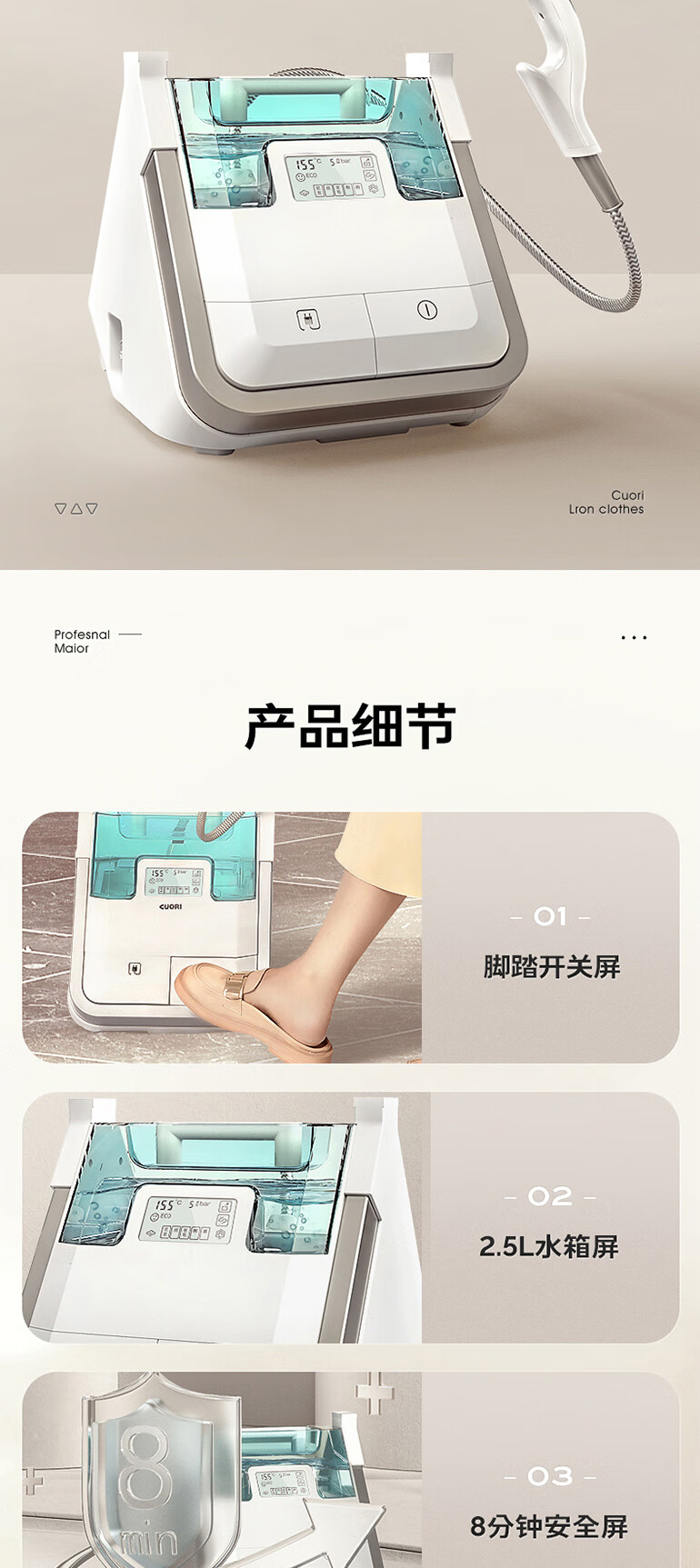 卓力(CuoRi) 新品智能挂烫机手持电熨斗 立式双杆多档蒸汽挂烫机BG588PLUS支持平烫挂烫 晶莹绿