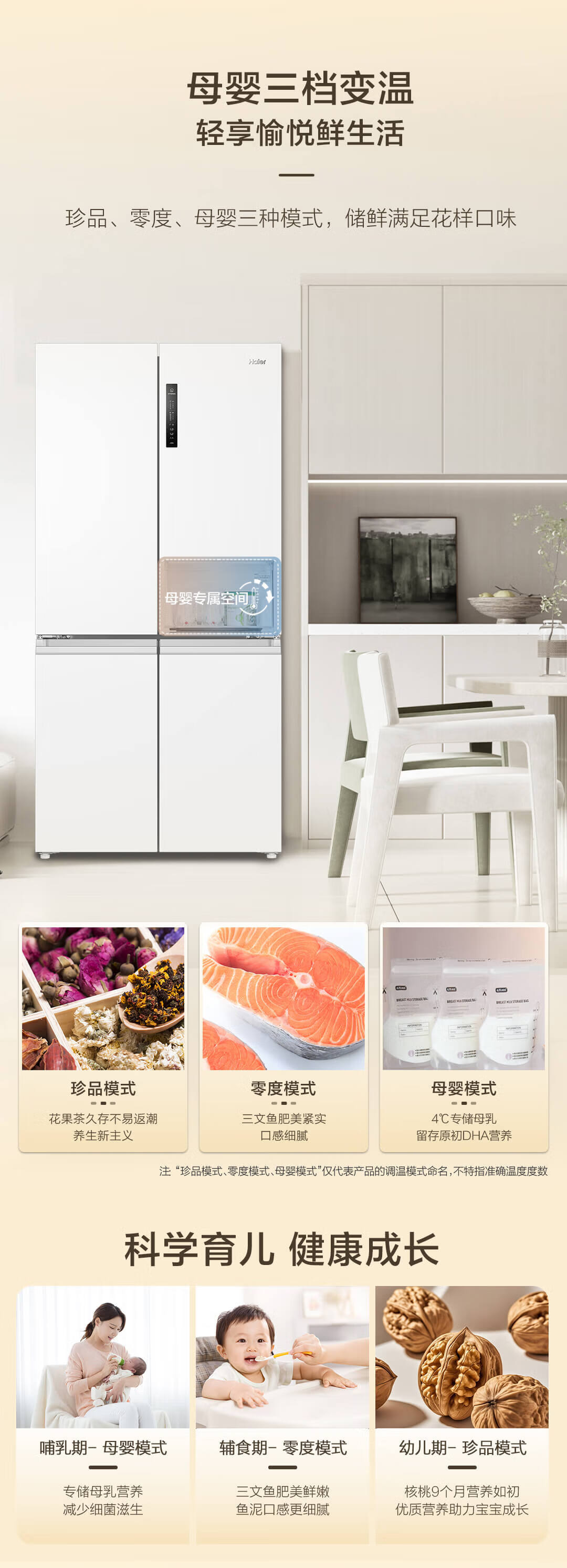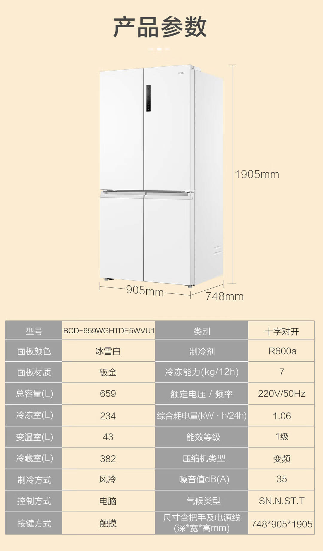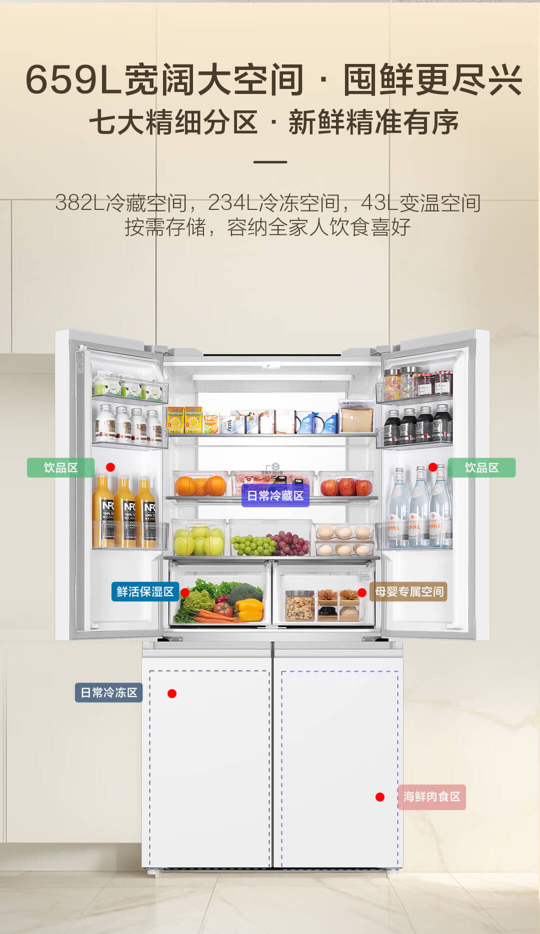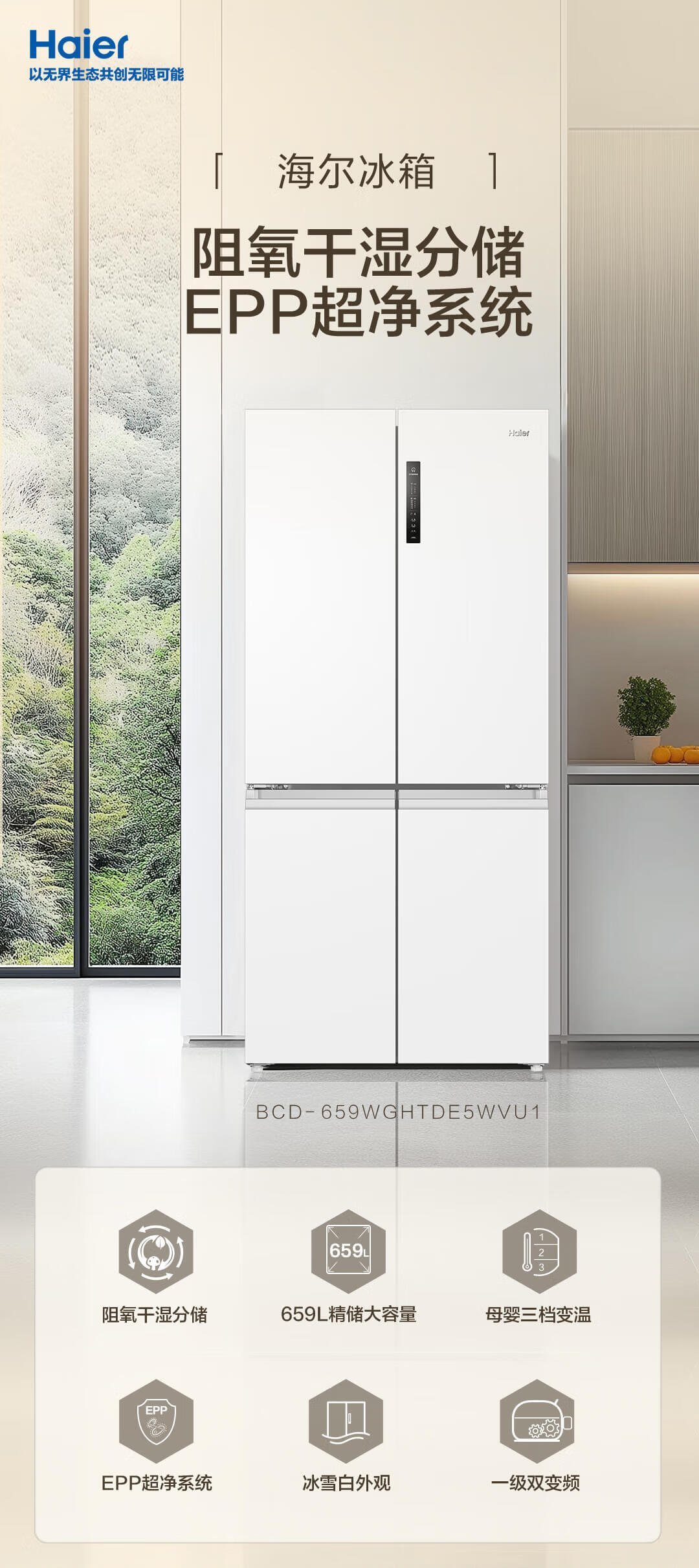 海尔(Haier)冰箱四开门659升家用电冰箱一级能效节能EPP超净净味阻氧干湿分储母婴三档变温 BCD-659WGHTDE5WVU1