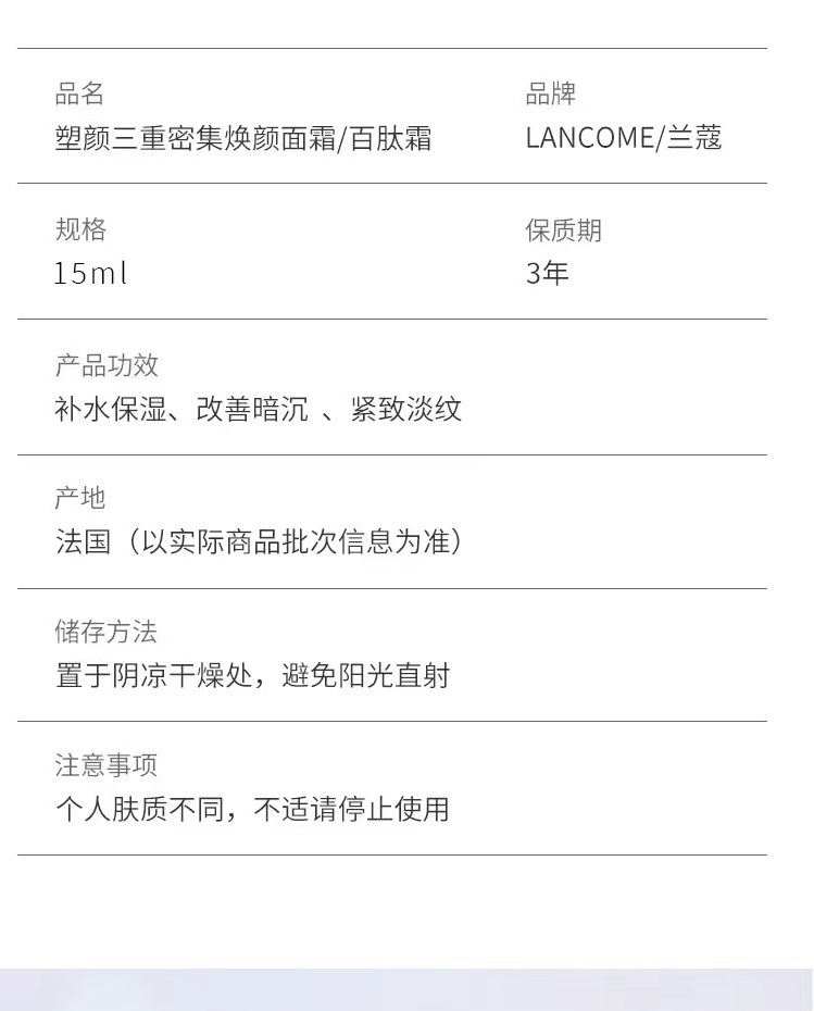 【专柜小样 】法国 LANCOME兰蔻 三重密集紧致塑颜百态霜 雪花霜15ml