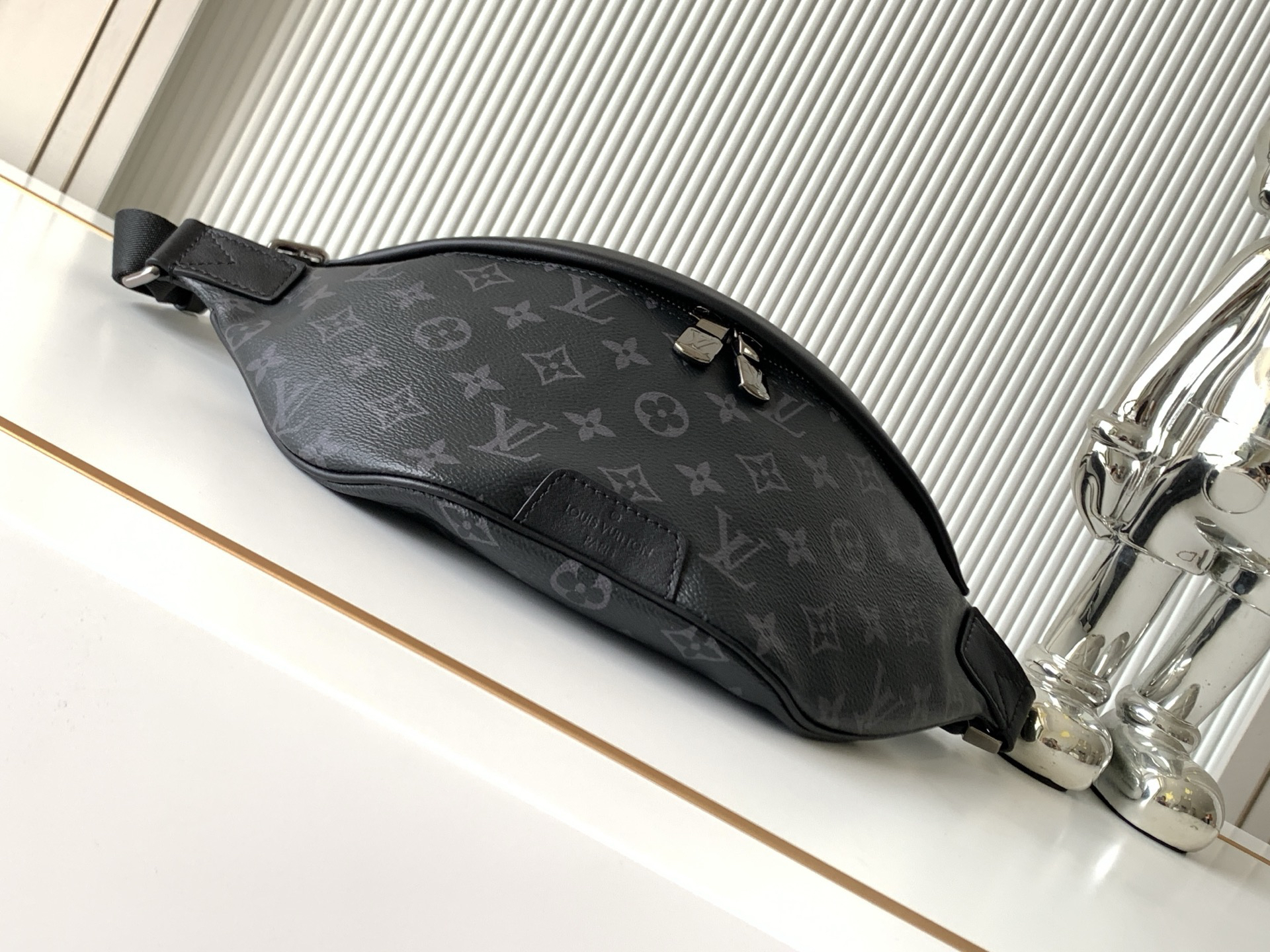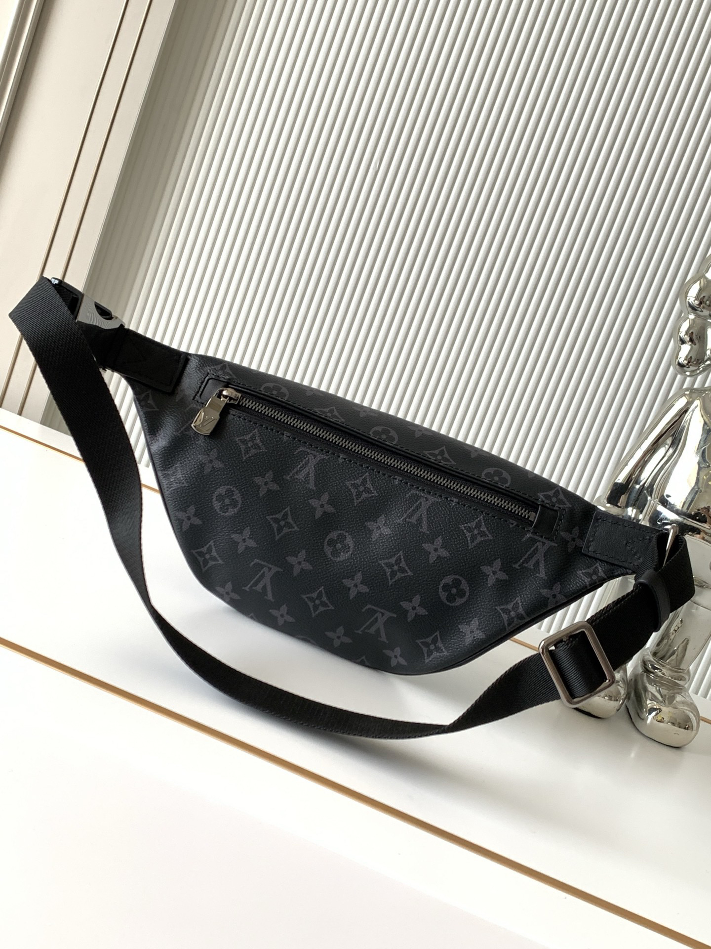 秋冬特惠💰1230 渠道级LV【全钢五金 MB163c01变码芯片】te级LV 全套包装 M46035黑花 此款Discovery腰包由Monogram Eclipse帆布制成,兼具休闲时尚气质与现代功能性。造型符合人体工学原理,并配有可调节的包带,既可环于腰间,也可肩背或随性地挂在胸前。正面和背面配有拉链口袋,方便存取手机、卡片和钥匙。