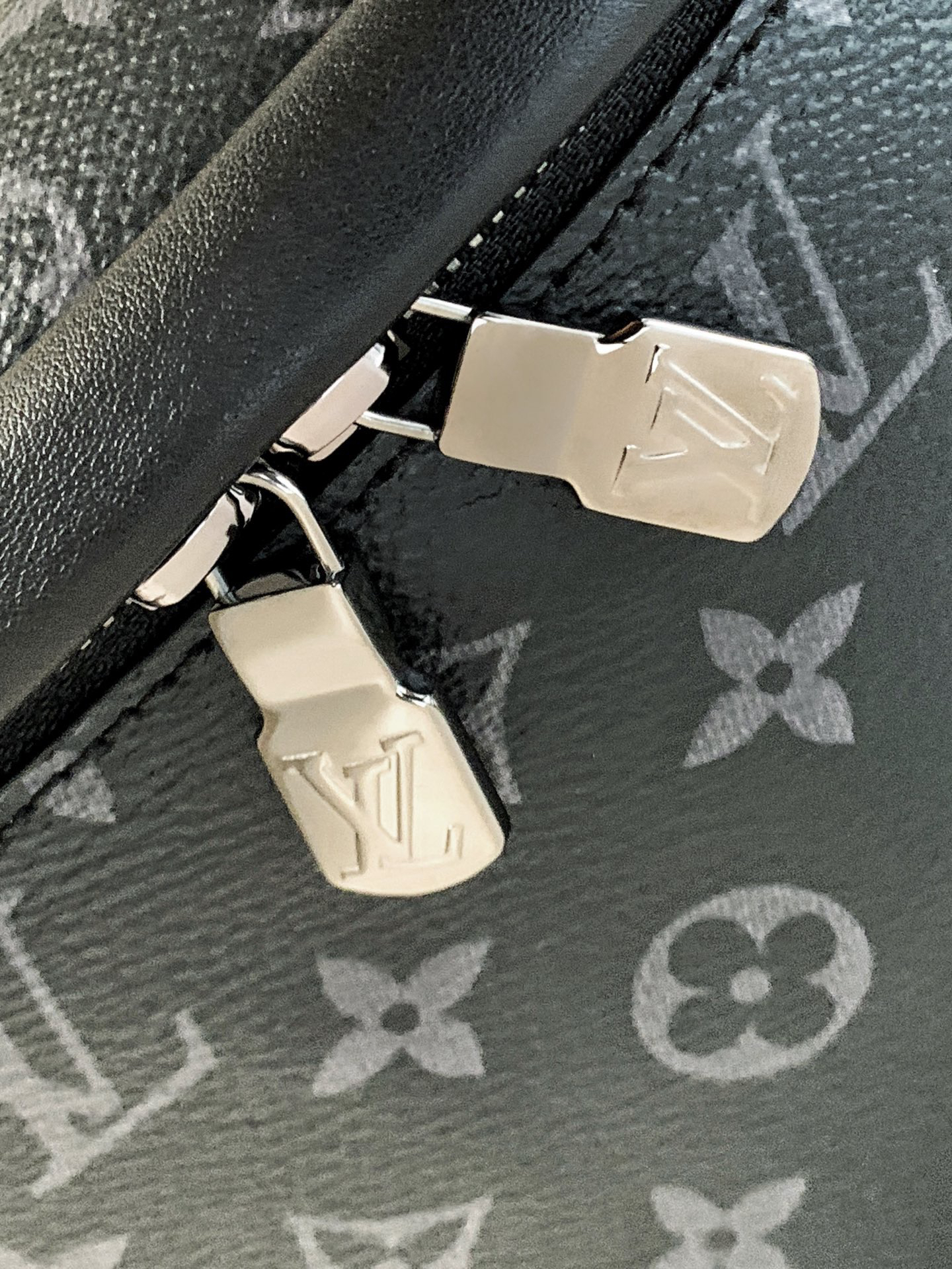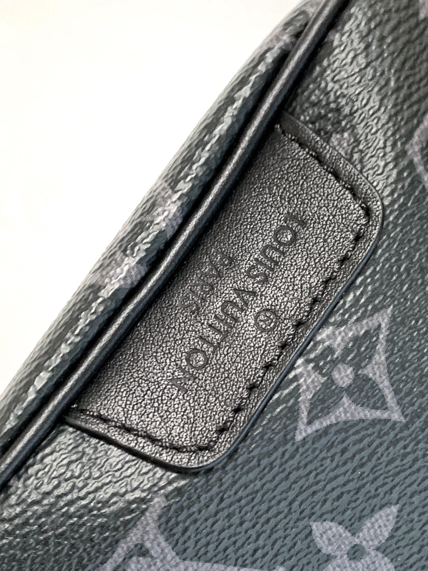 Monogram Eclipse 涂层帆布牛皮革饰边织物内衬金属件拉链封口可调节腰带前外袋