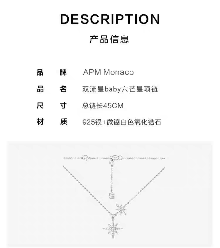 【礼盒礼袋】APM Monaco 双流星项链精致锁骨链