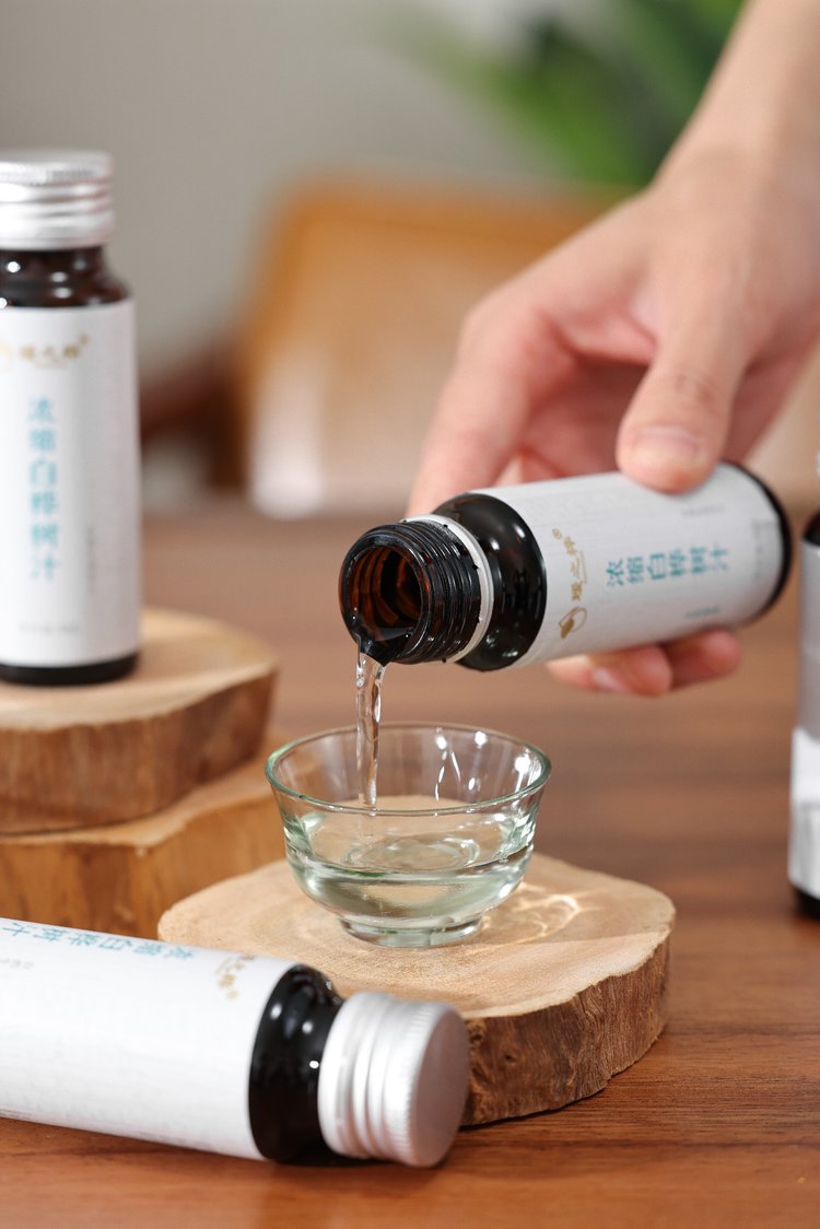 白桦树汁,每年春天冰雪初融时可从白桦树干中引流出无色透明或微黄的新鲜汁液,散发淡淡的桦木清香,蕴含60多种植物基全营养素,被誉为“生命之水”