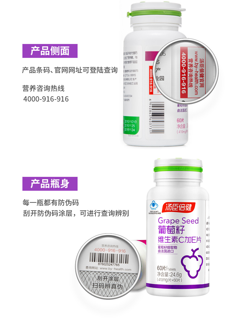 汤臣倍健葡萄籽原花青素维生素C+E片抗氧化胶原蛋白肌肤保健品