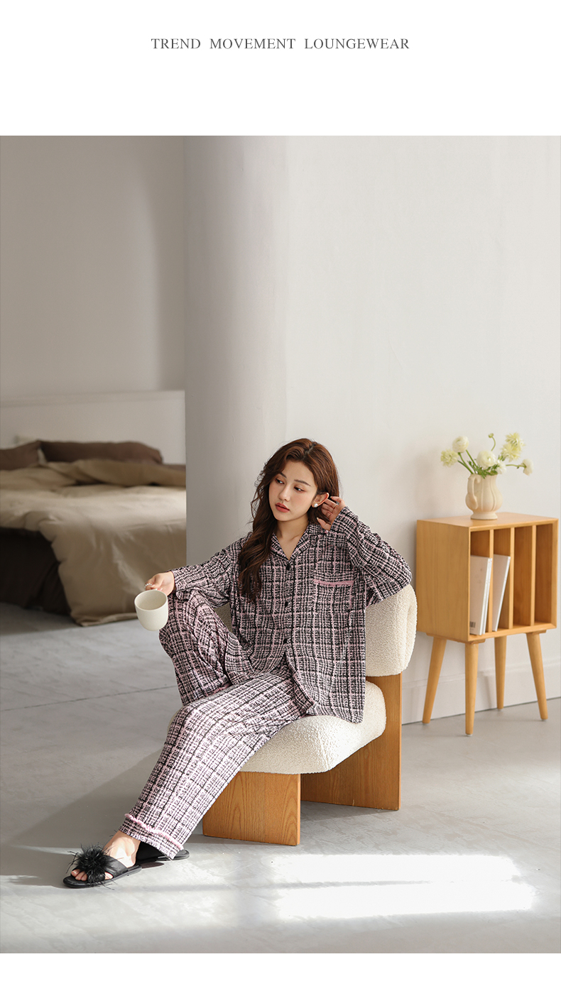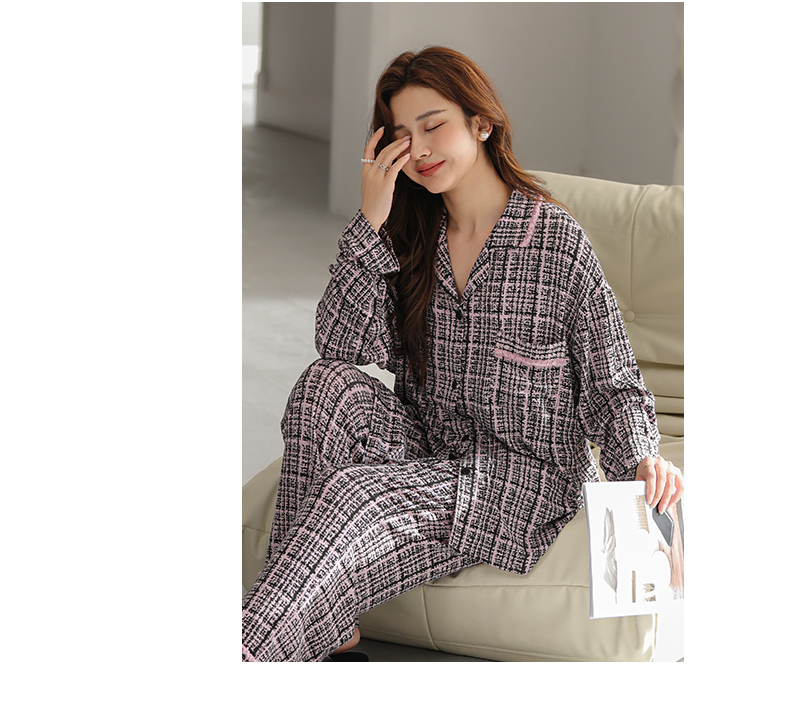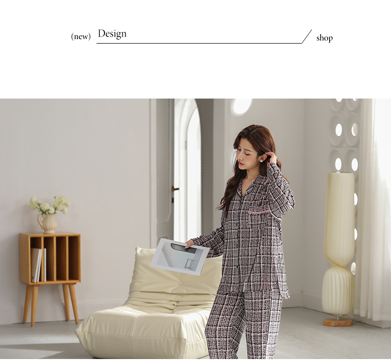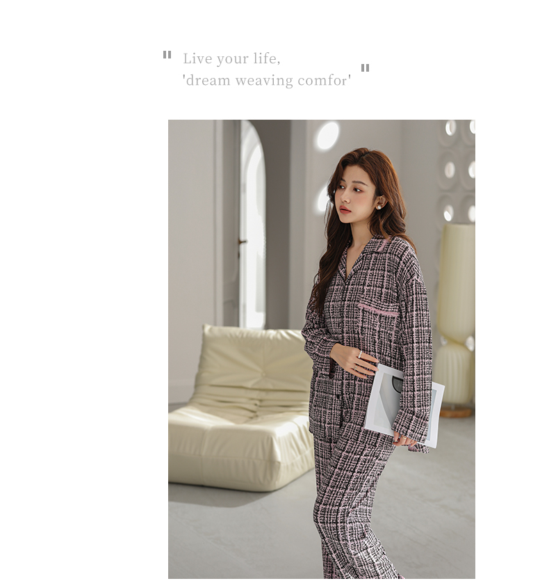 可人儿原创设计新款云柔棉女士睡衣春秋长袖时尚可外出家居服套装