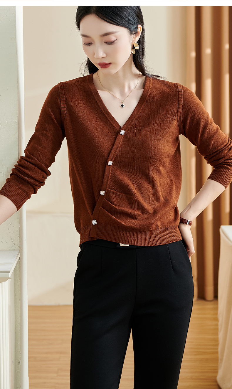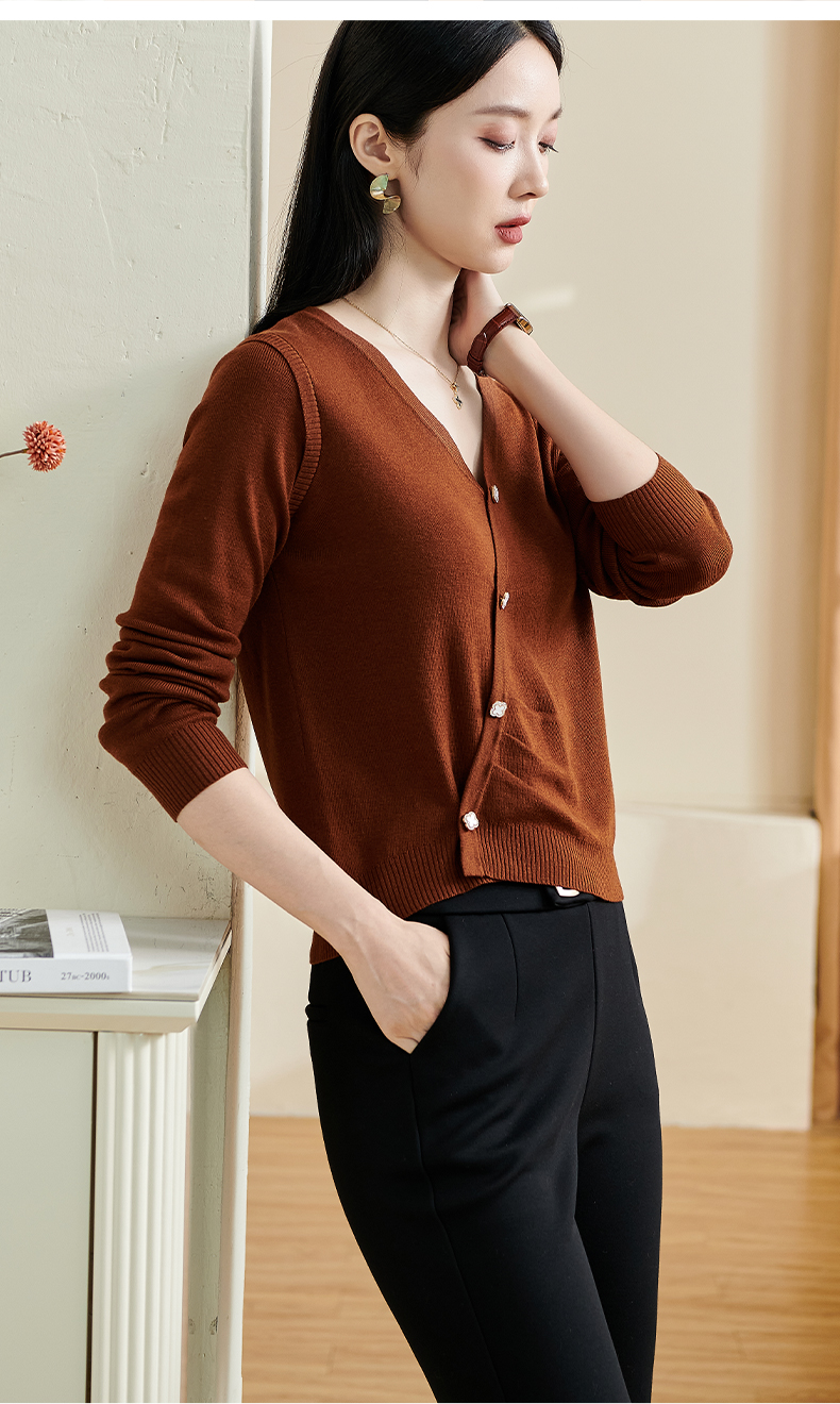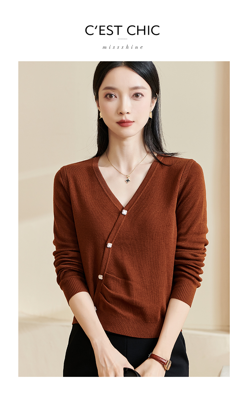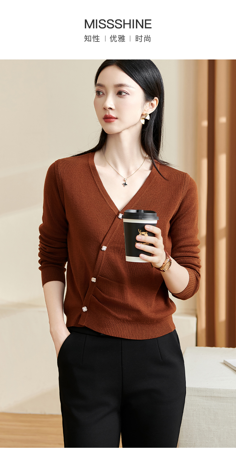 米思阳【气质毛衣】2026春新款时尚复古纯色v领百搭针织衫3143