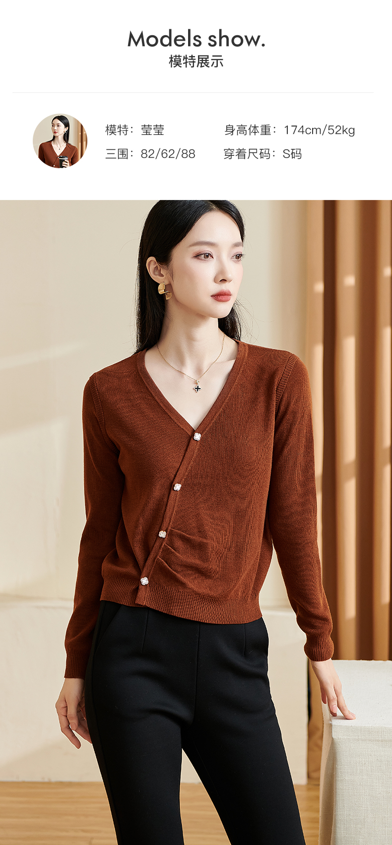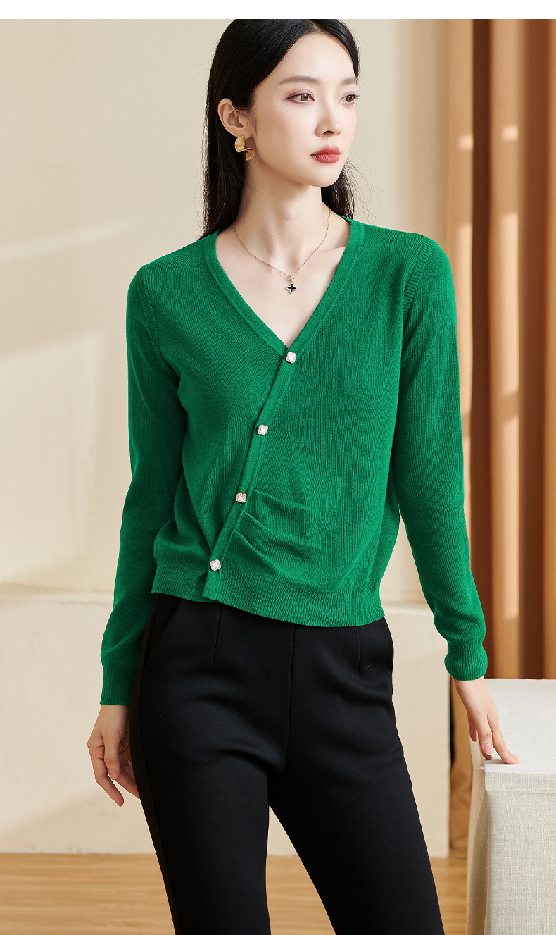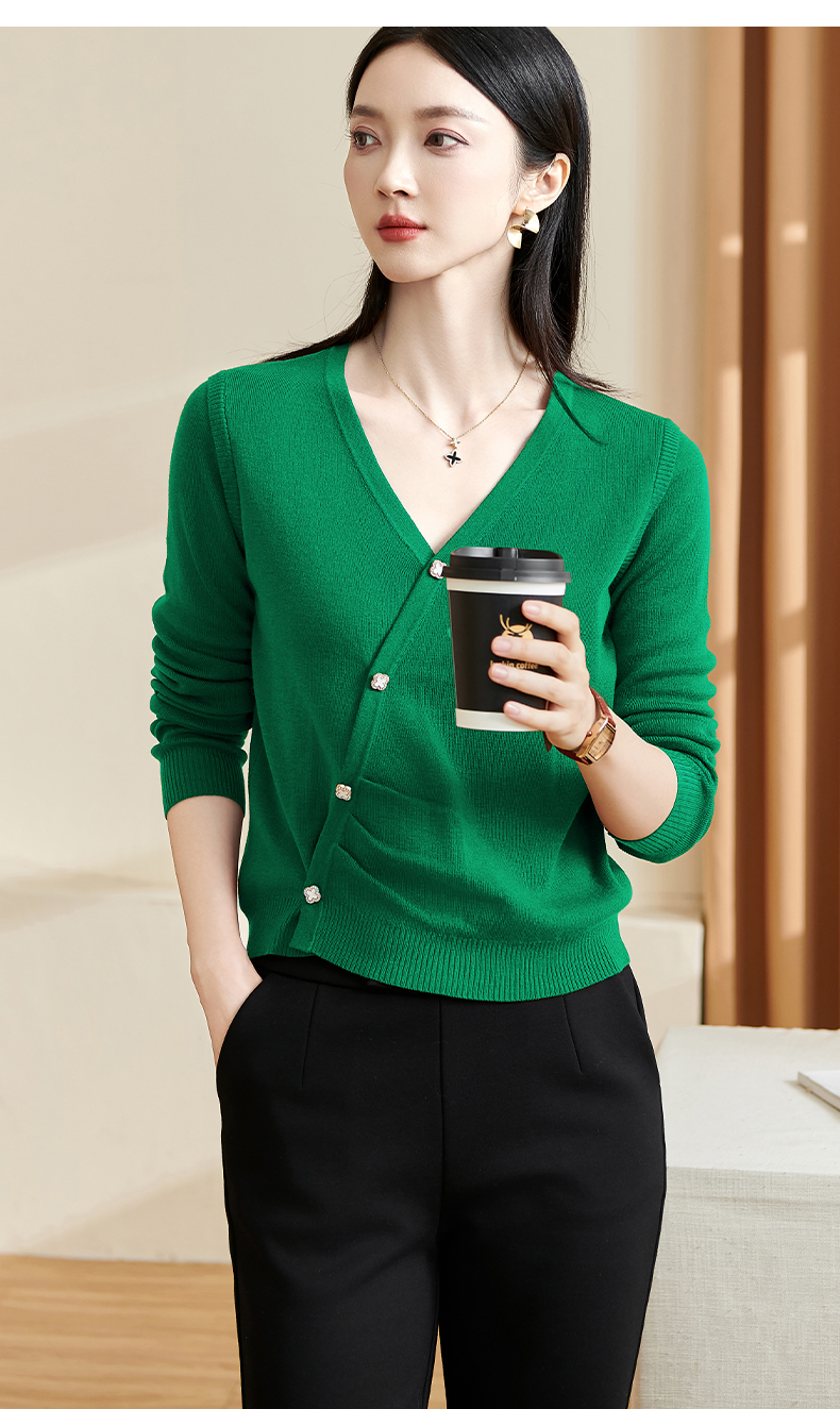 米思阳【气质毛衣】2026春新款时尚复古纯色v领百搭针织衫3143