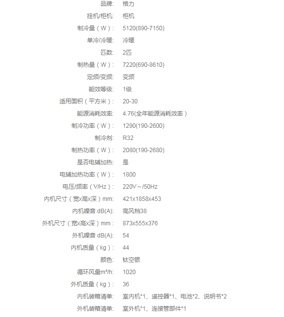 格力·臻净风变频冷暖2匹1级能效柜机空调 KFR-50LW/(50550)FNhAp-B1(WIFI)(钛空银)