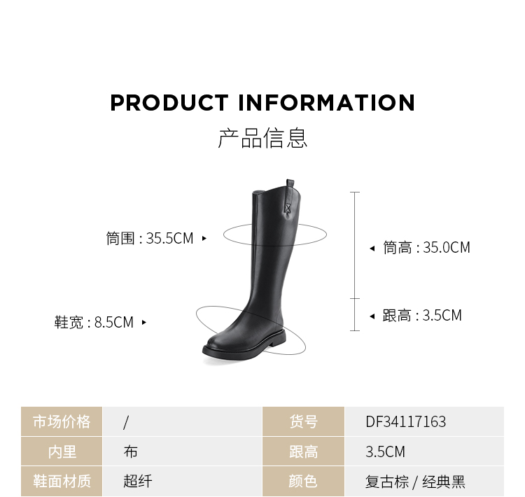 Dfuse迪芙斯2023冬季新款圆头骑士靴弹力瘦瘦长筒高靴DF34117163