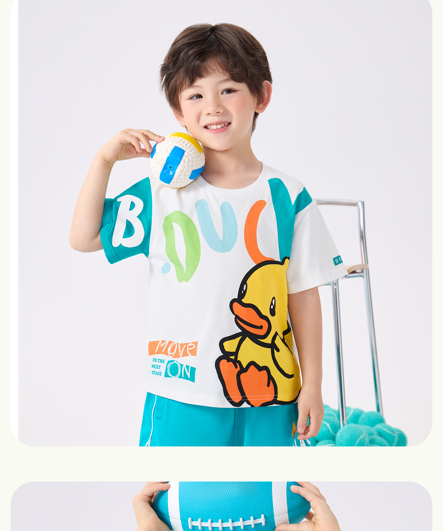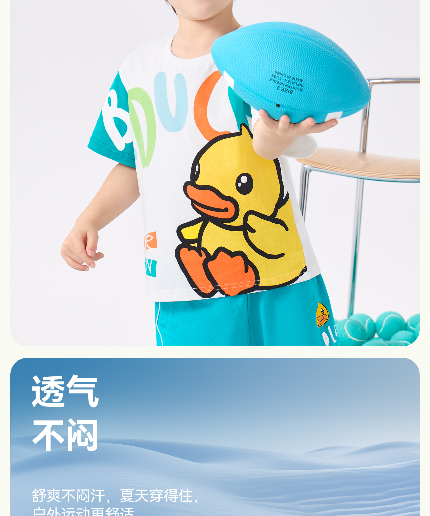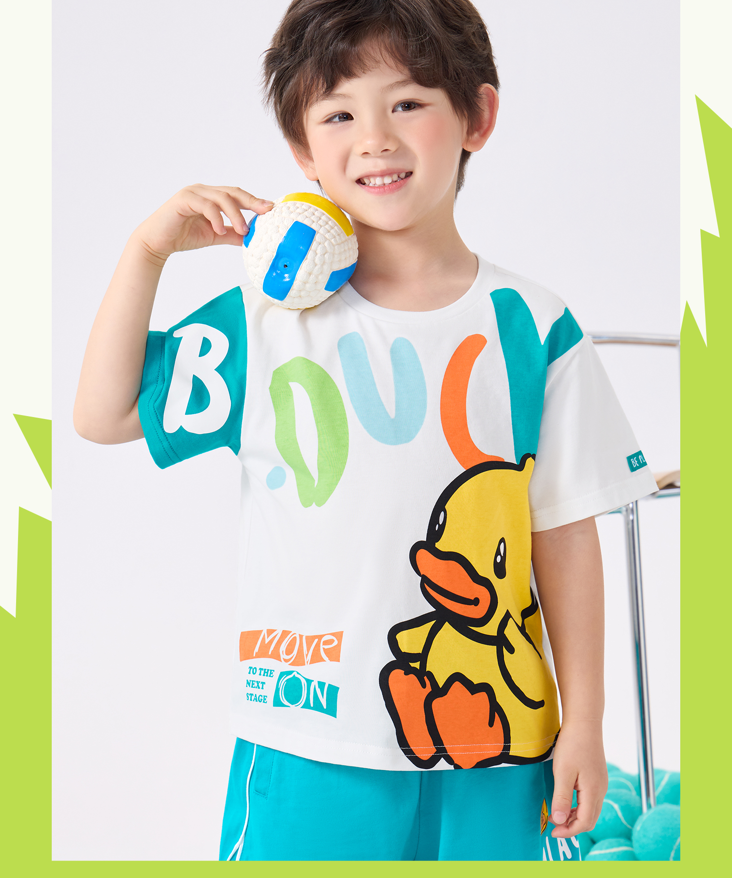 bduck小黄鸭童装夏季男童短袖T恤纯棉体恤儿童半袖上衣薄夏装105-150 BF2601931