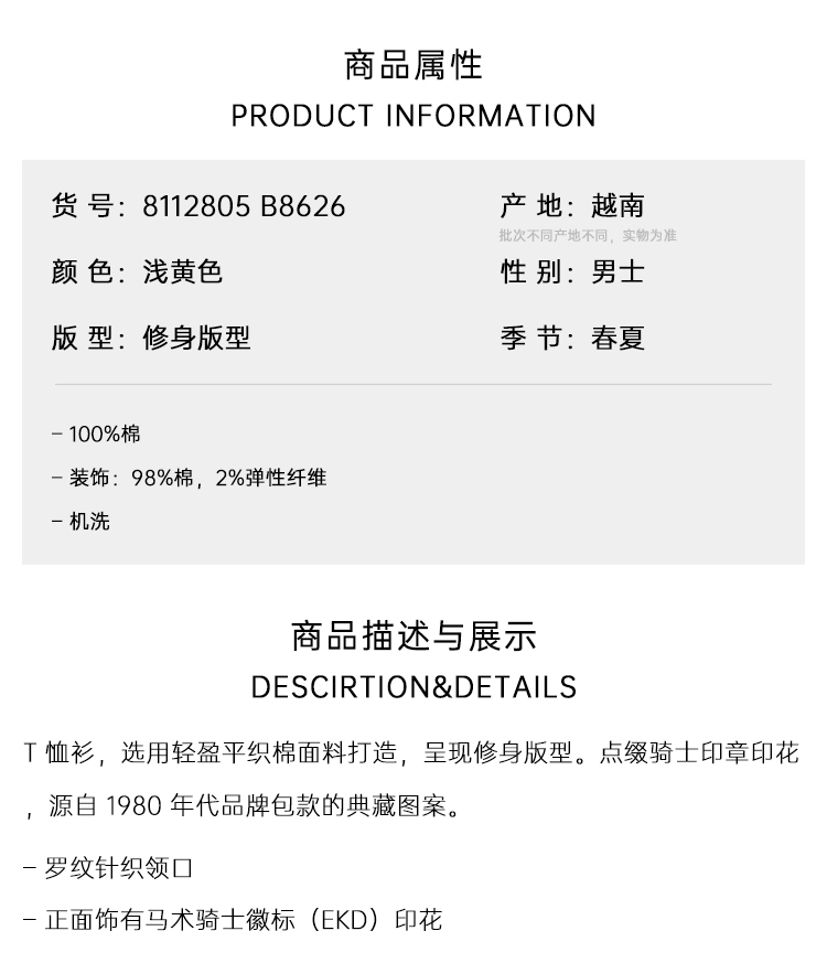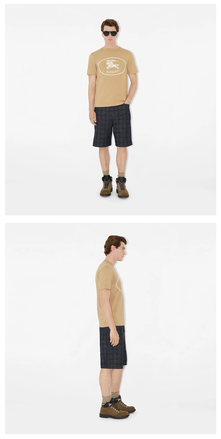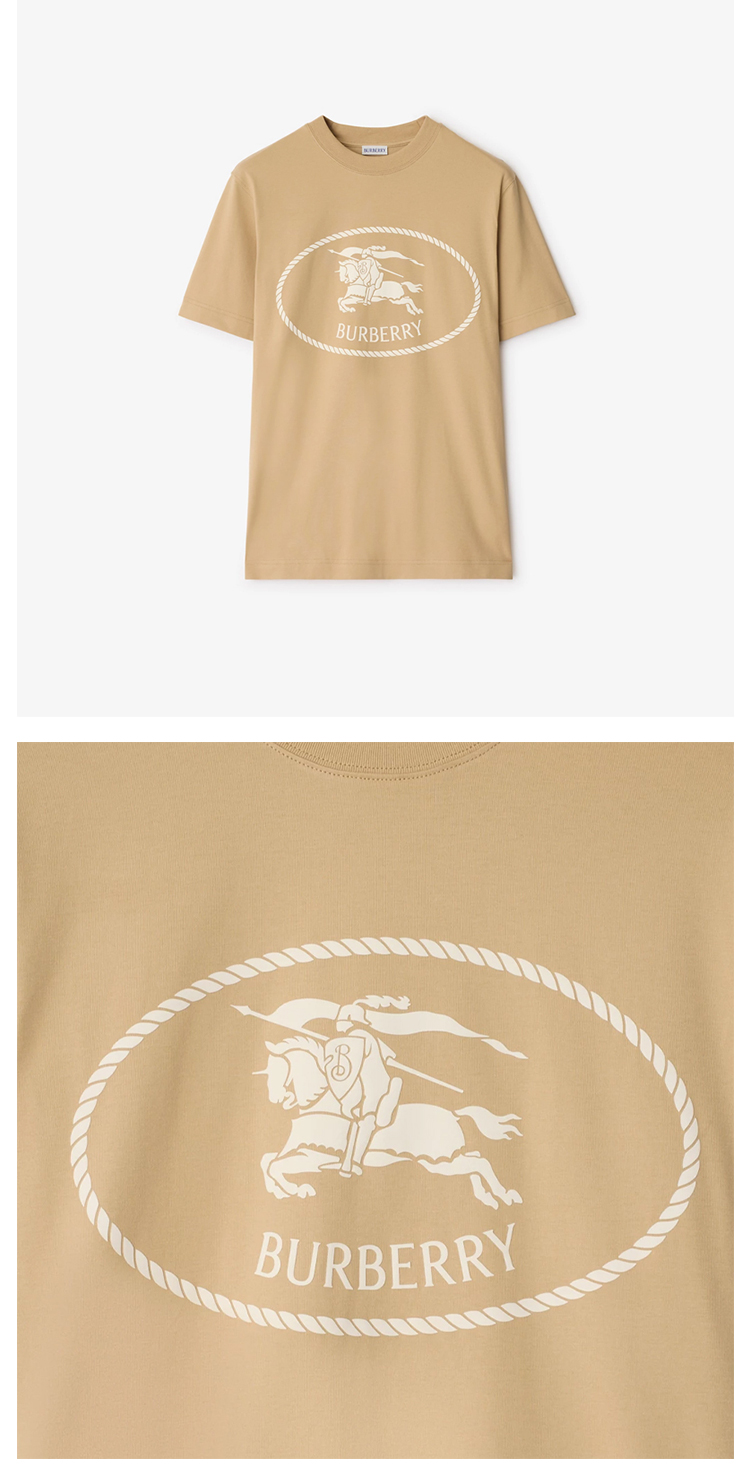 BURBERRY 巴宝莉 男士马术骑士徽标印章棉质圆领短袖T恤 浅黄色 8112805 B8626