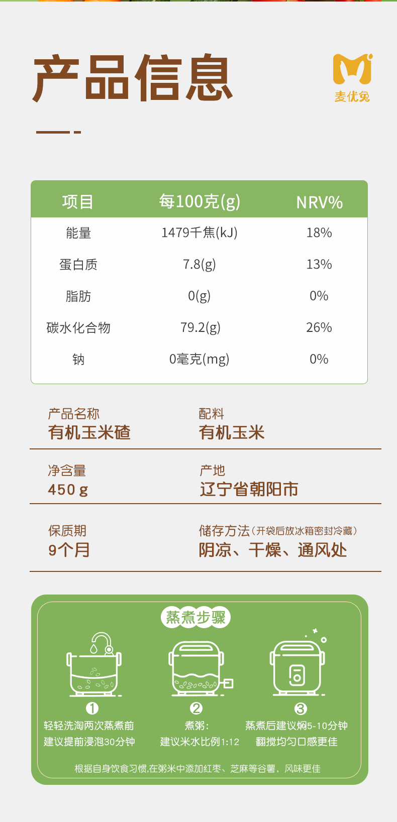 有机玉米碴450g/盒*2