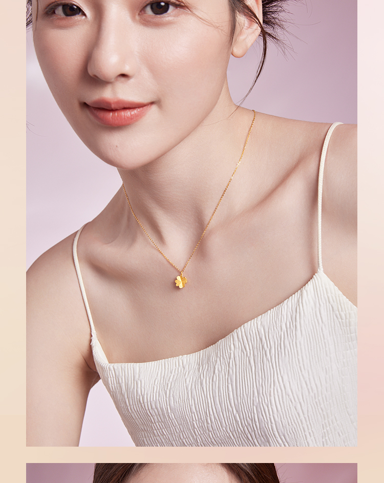 周六福黄金O字链女精品计价足金四叶草链坠送女友礼物