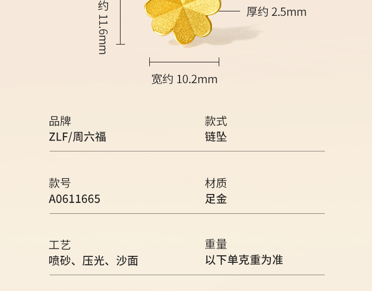 周六福 三生有杏黄金吊坠 银杏叶 足金定价