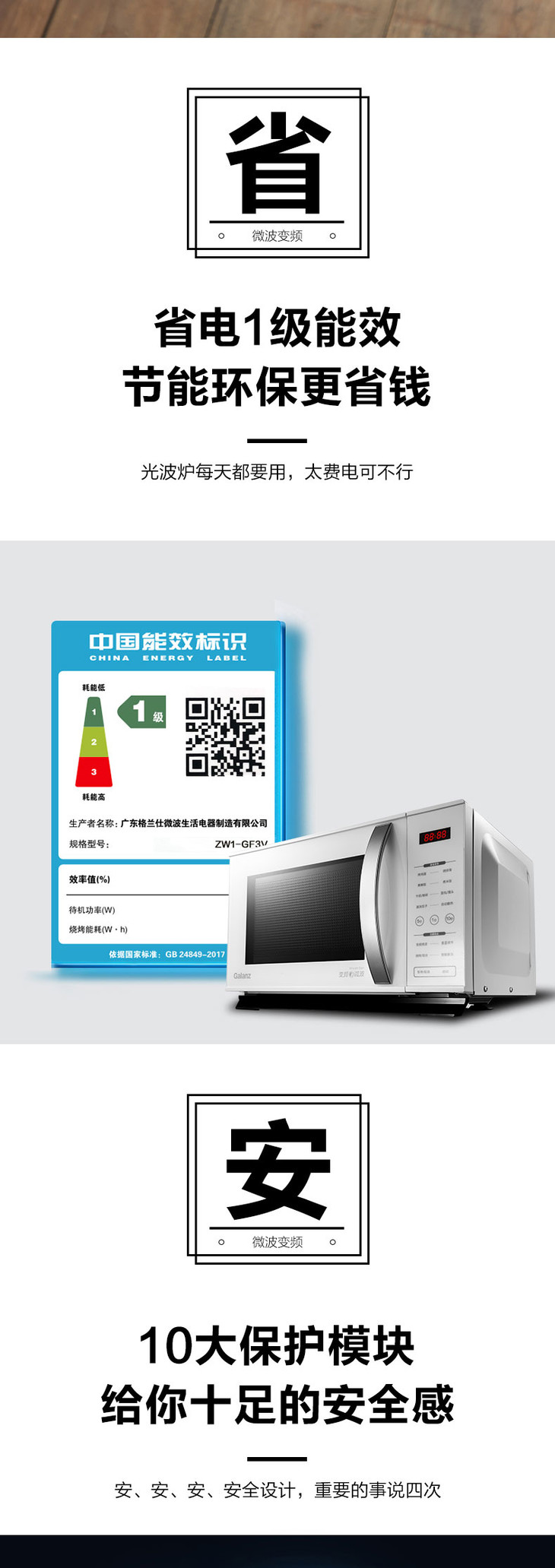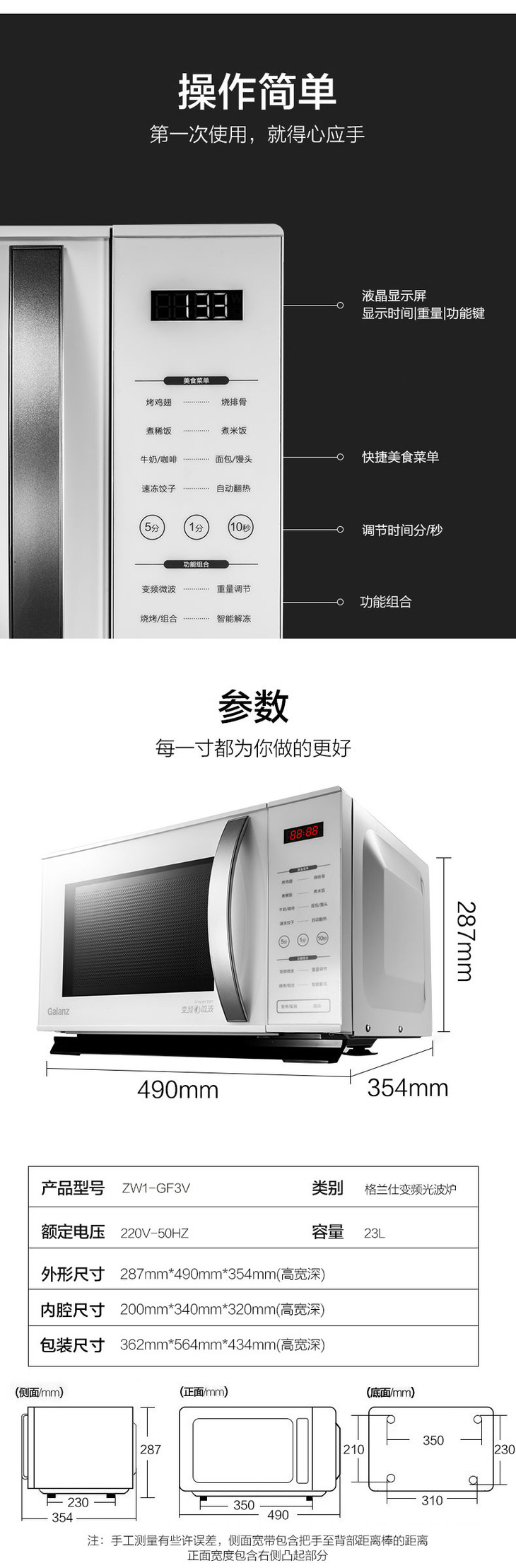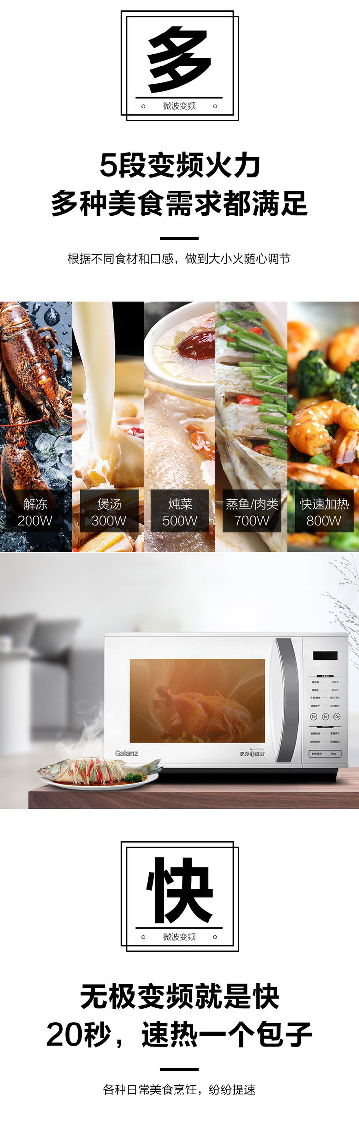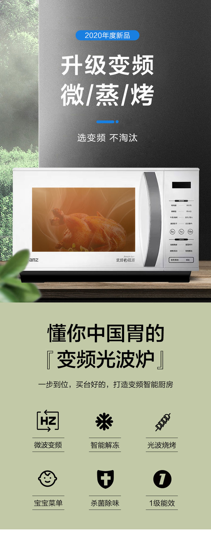 格兰仕变频微波炉 微蒸烤一体 光波炉 家用智能 大平板 正品 ZW1-GF3V