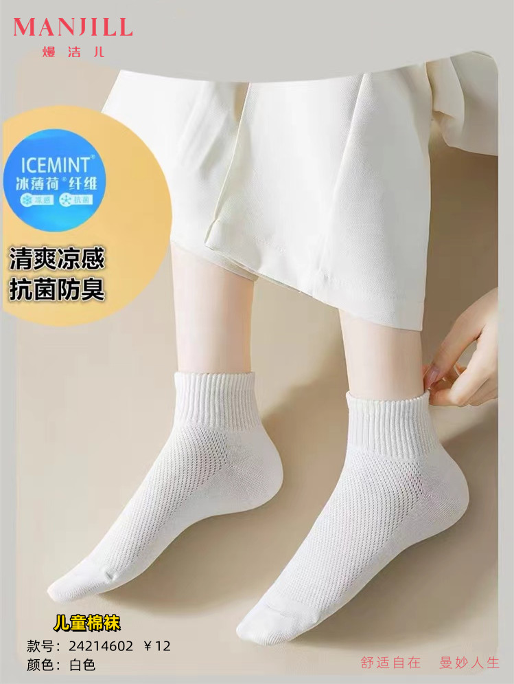【拍3双25元】熳洁儿 儿童棉袜白色百搭凉感不闷商场同款25214602