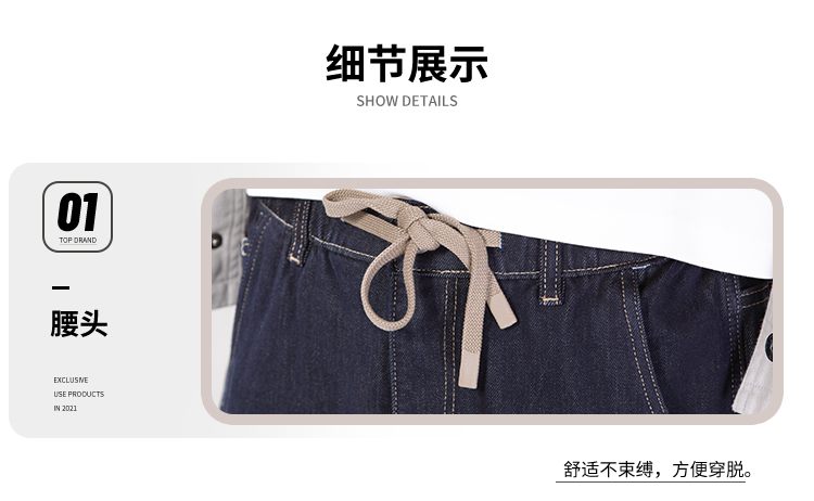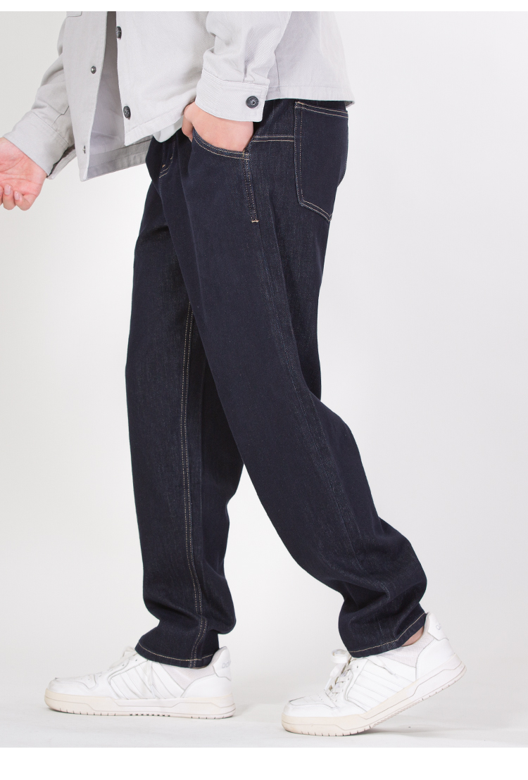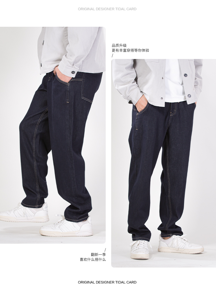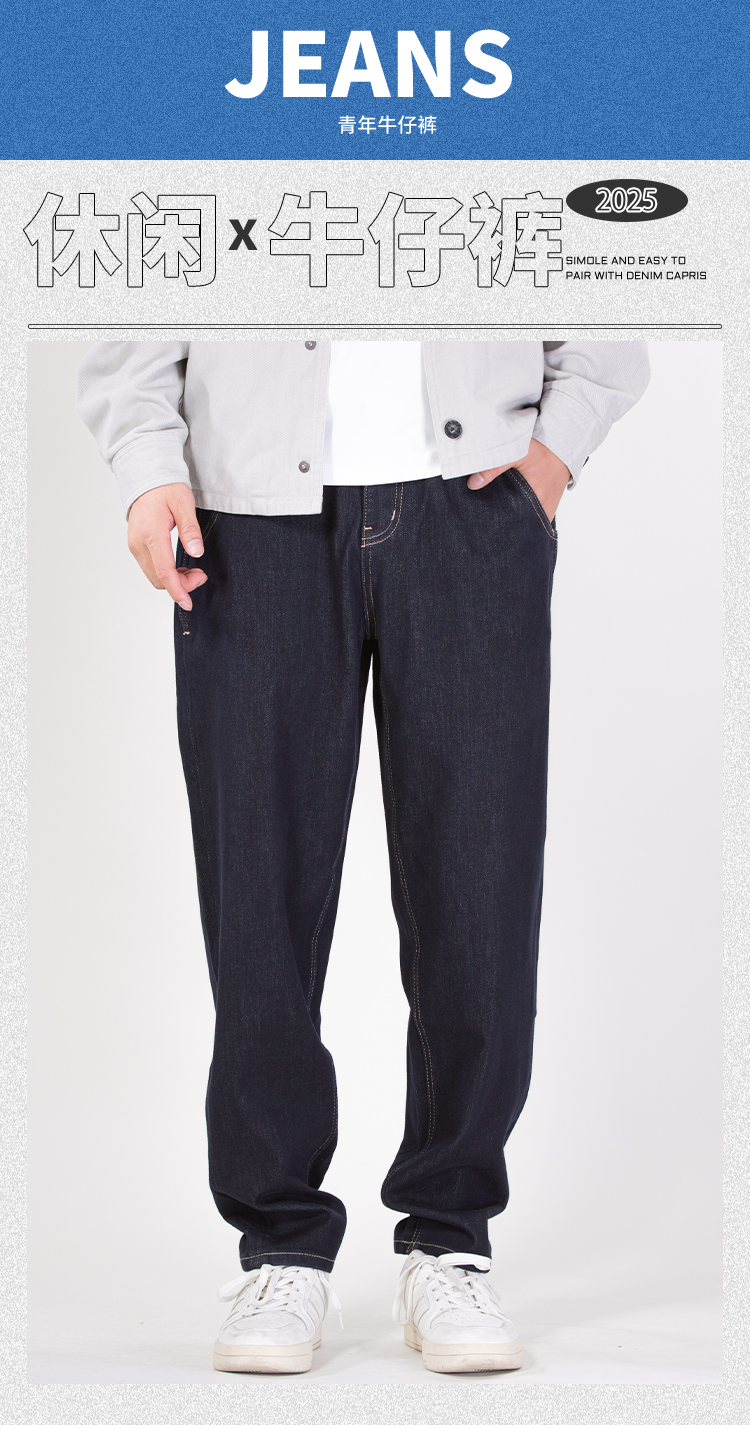 DRONKOO 2025 松紧抽绳腰表袋侧唛后口袋压褶中厚牛仔长裤