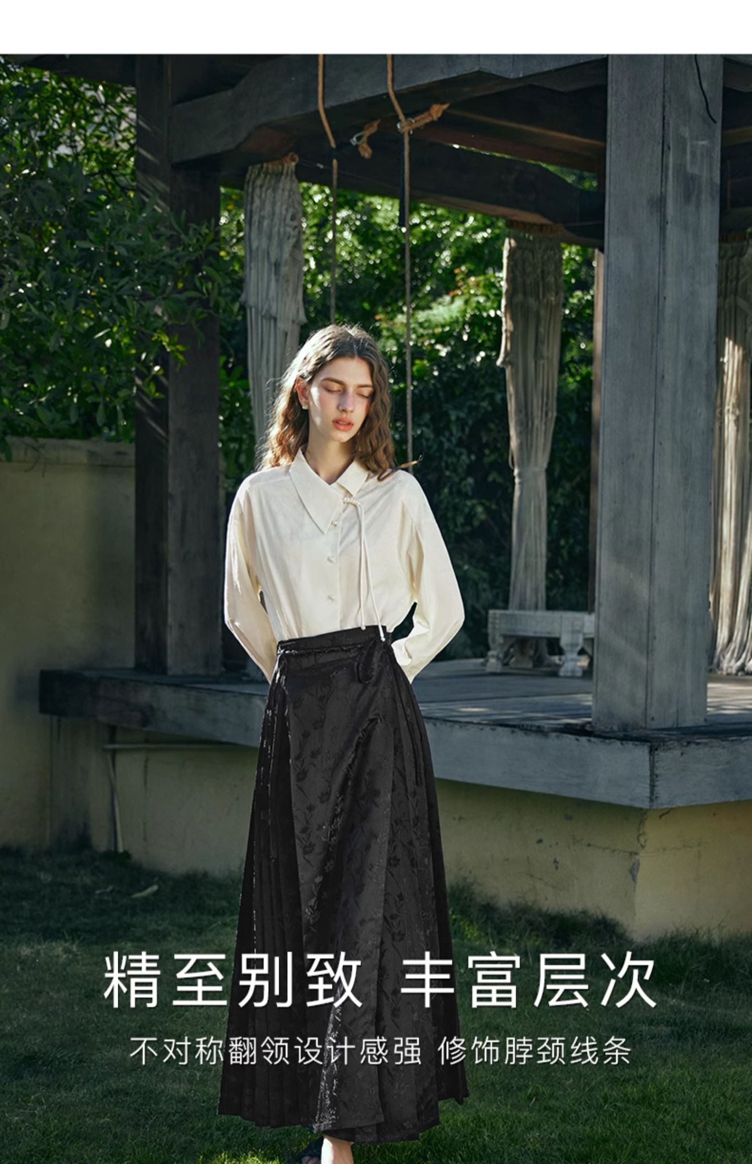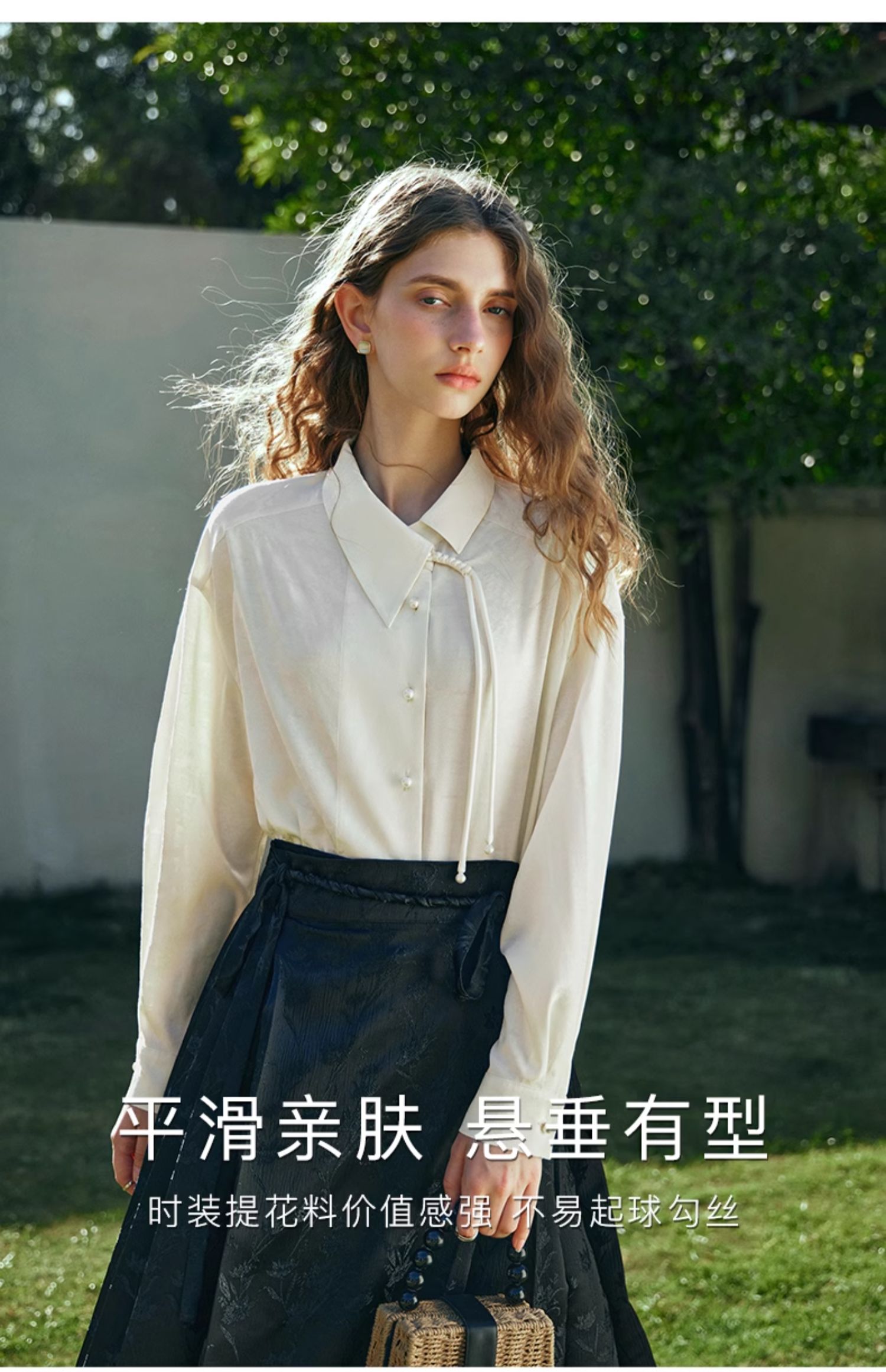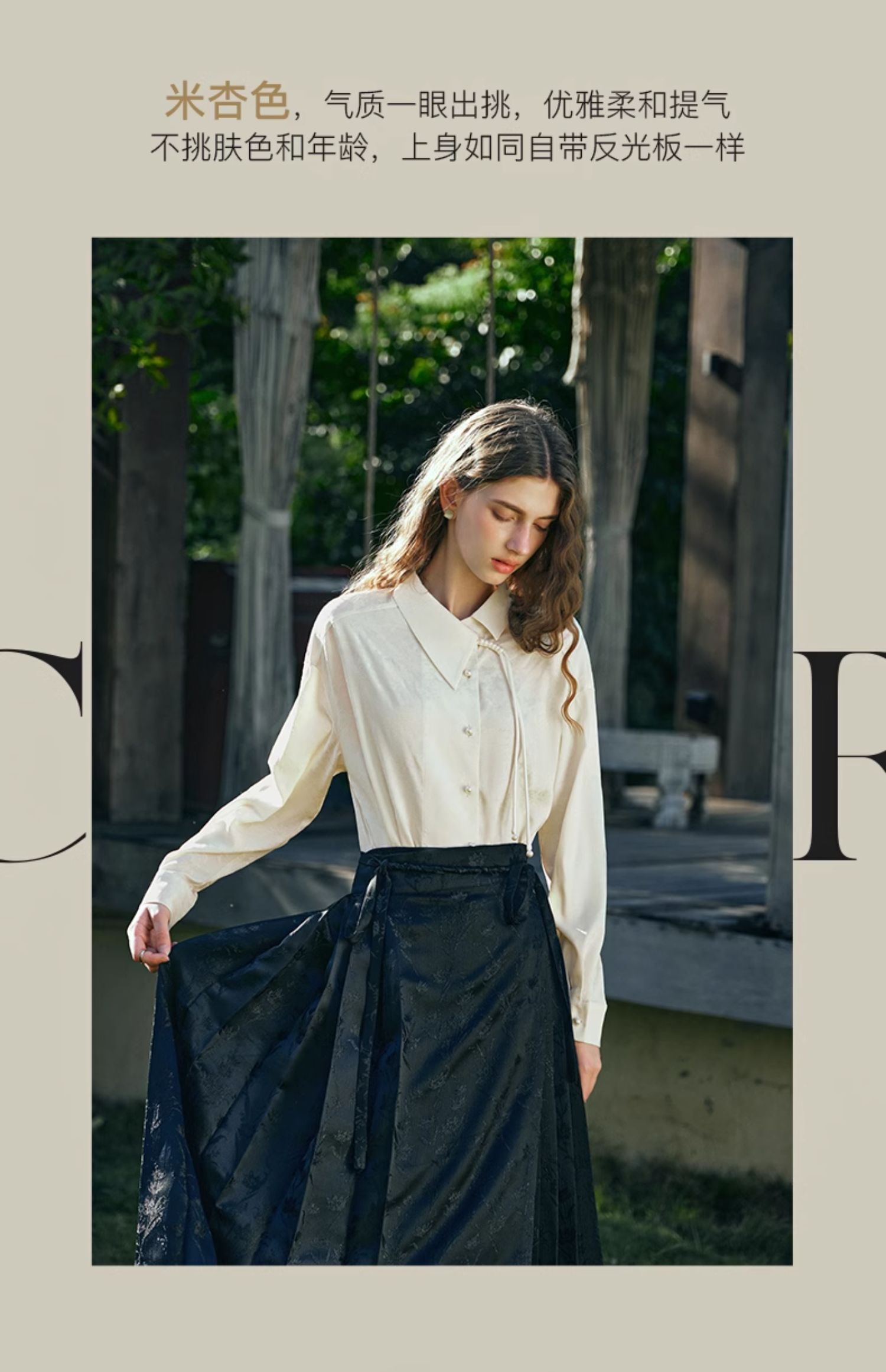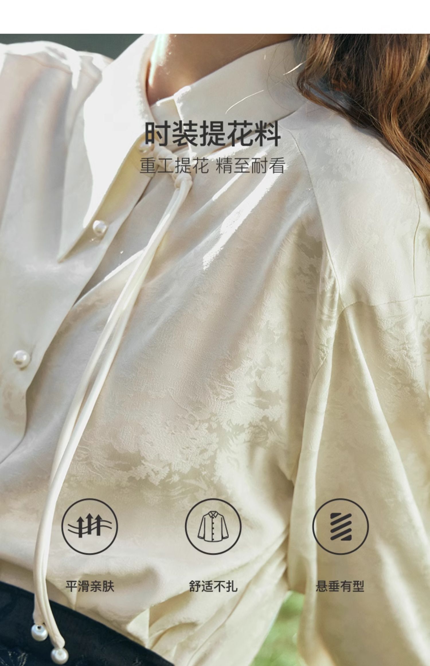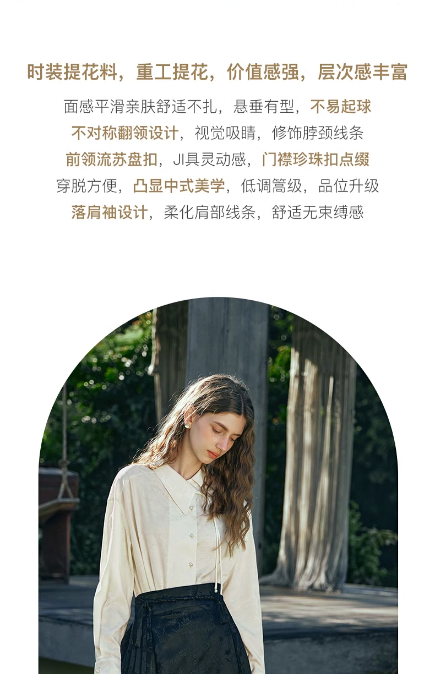 OLrain欧芮儿新中式杏色衬衫女早春2024年新款设计感提花高级上衣