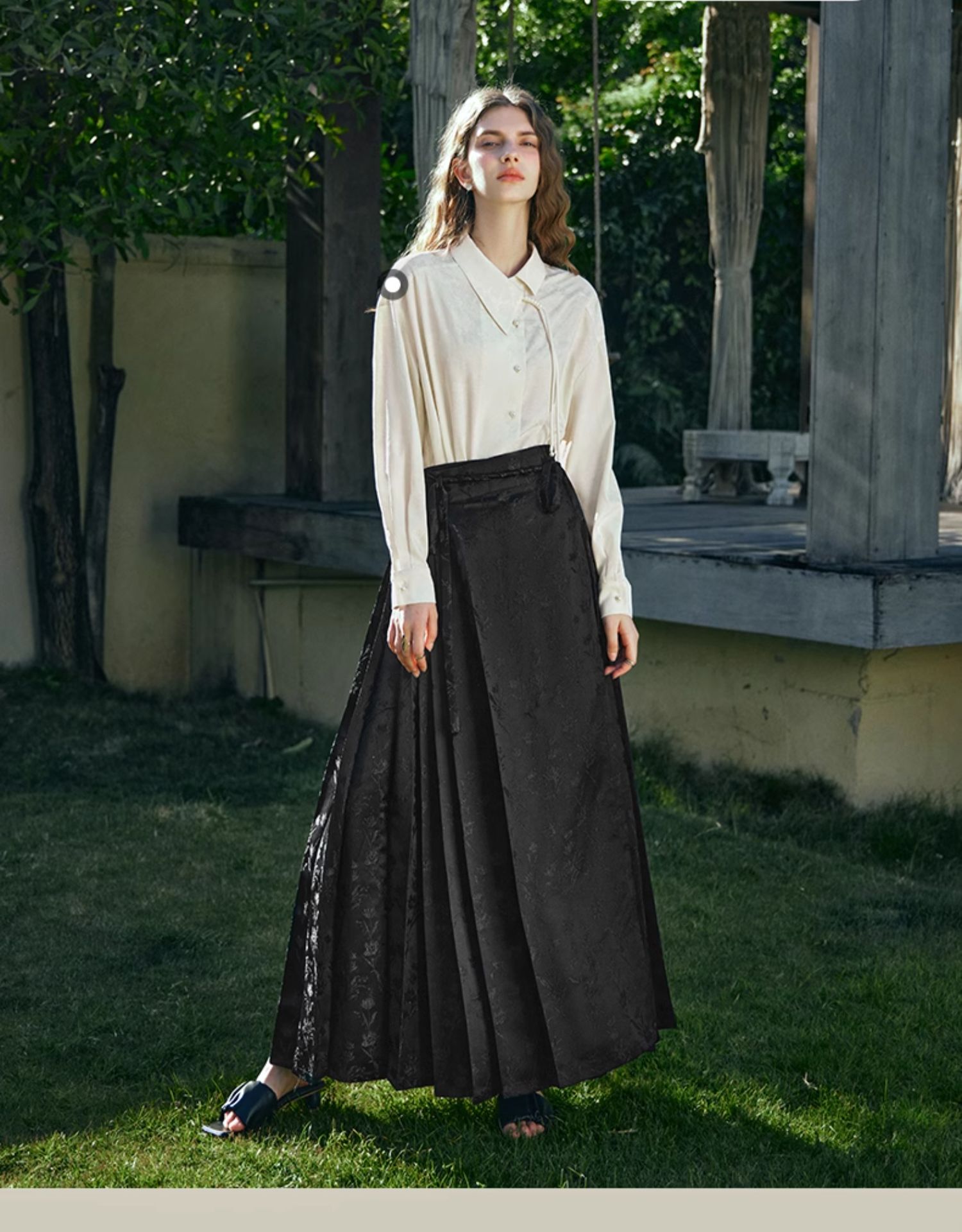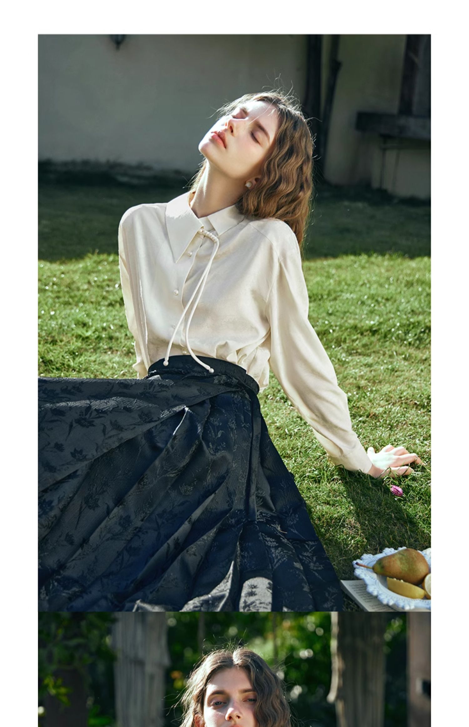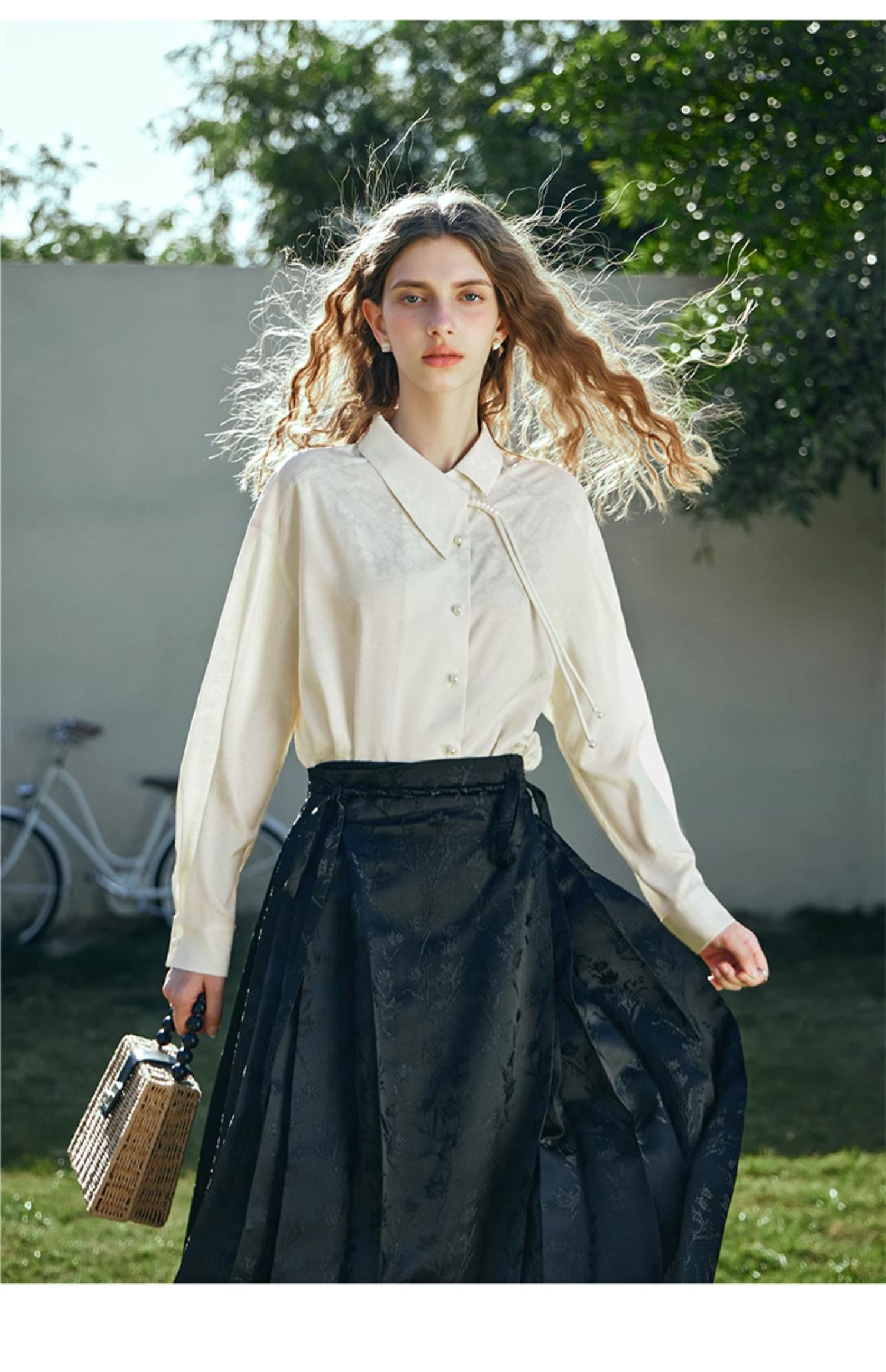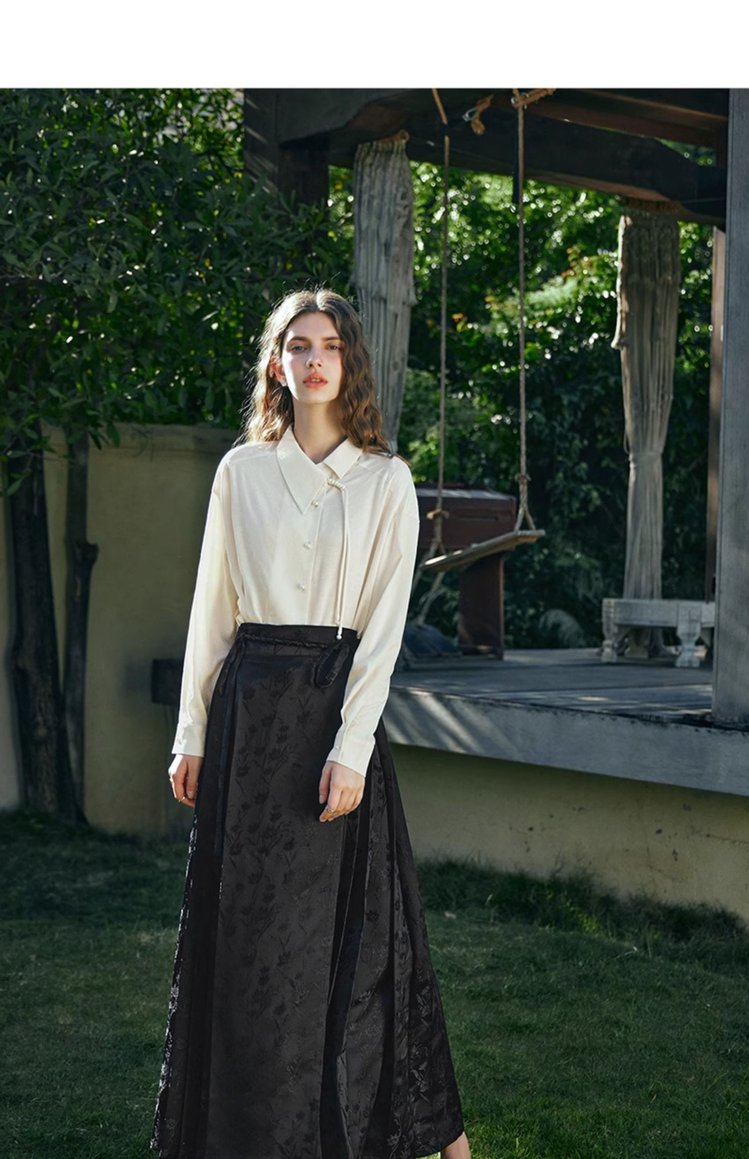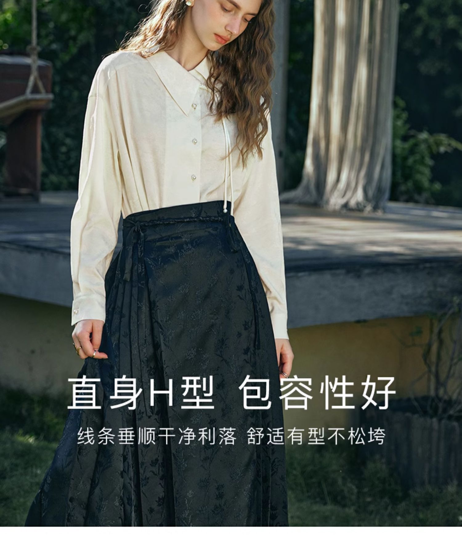 OLrain欧芮儿新中式杏色衬衫女早春2024年新款设计感提花高级上衣