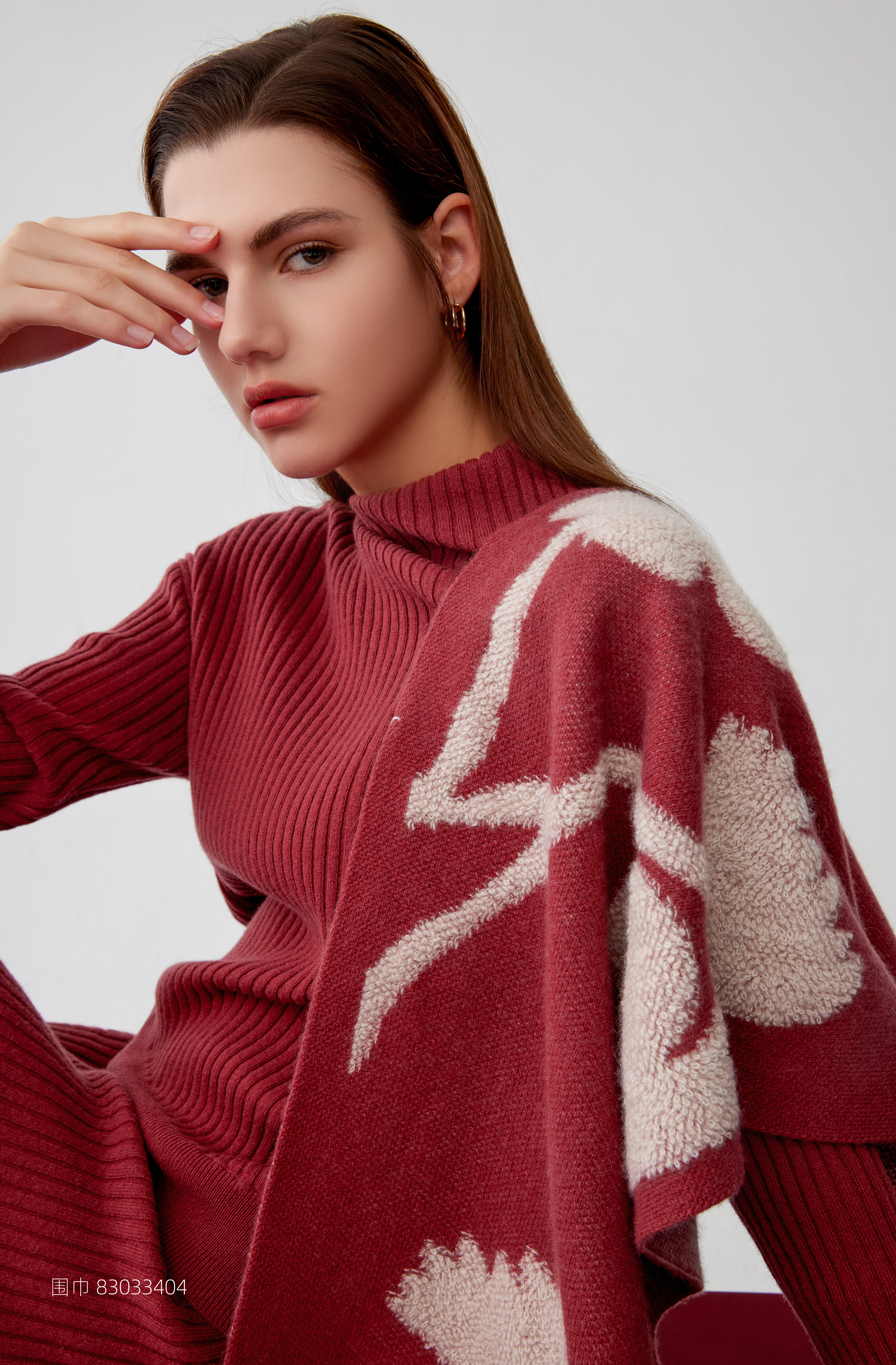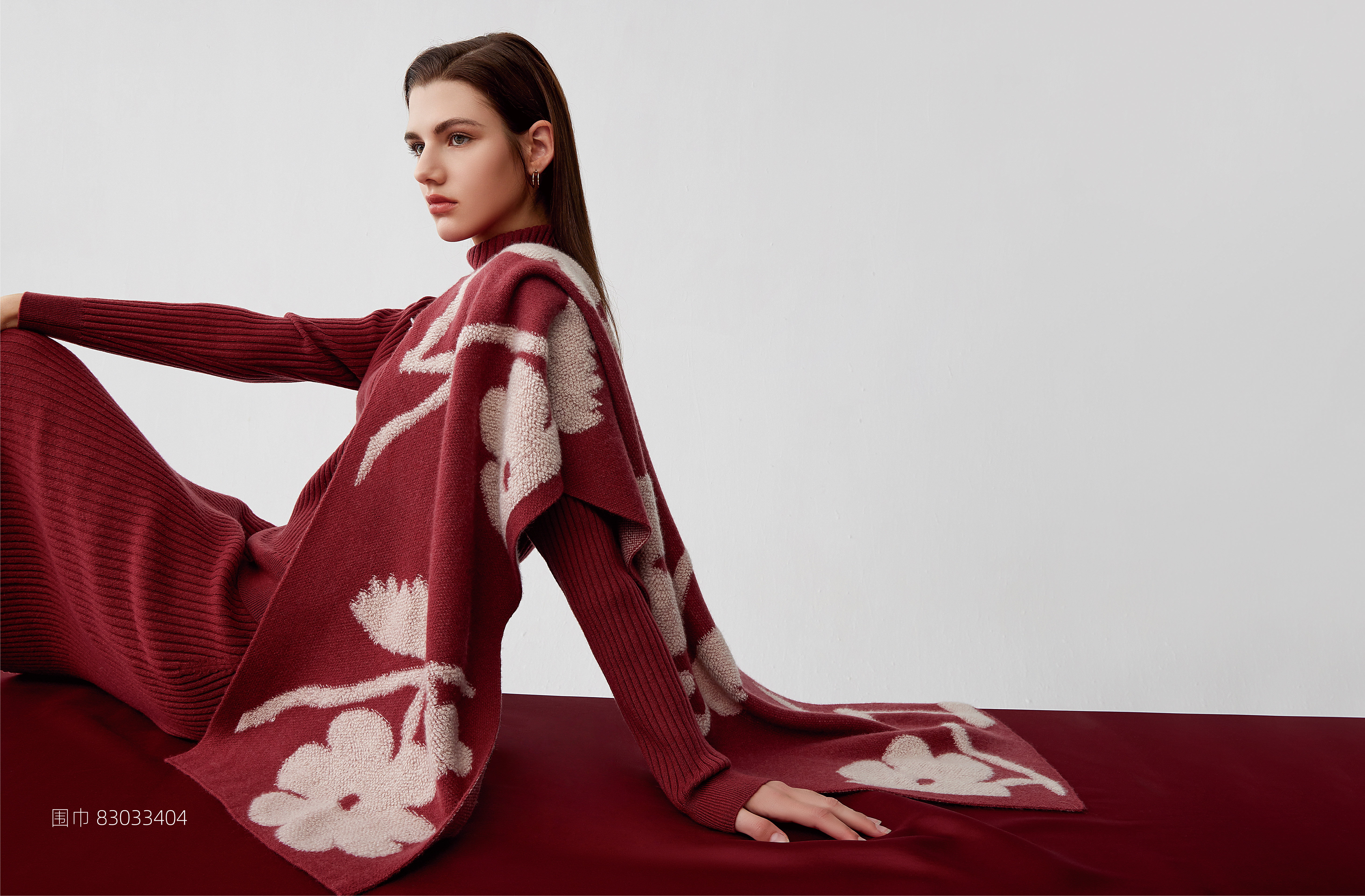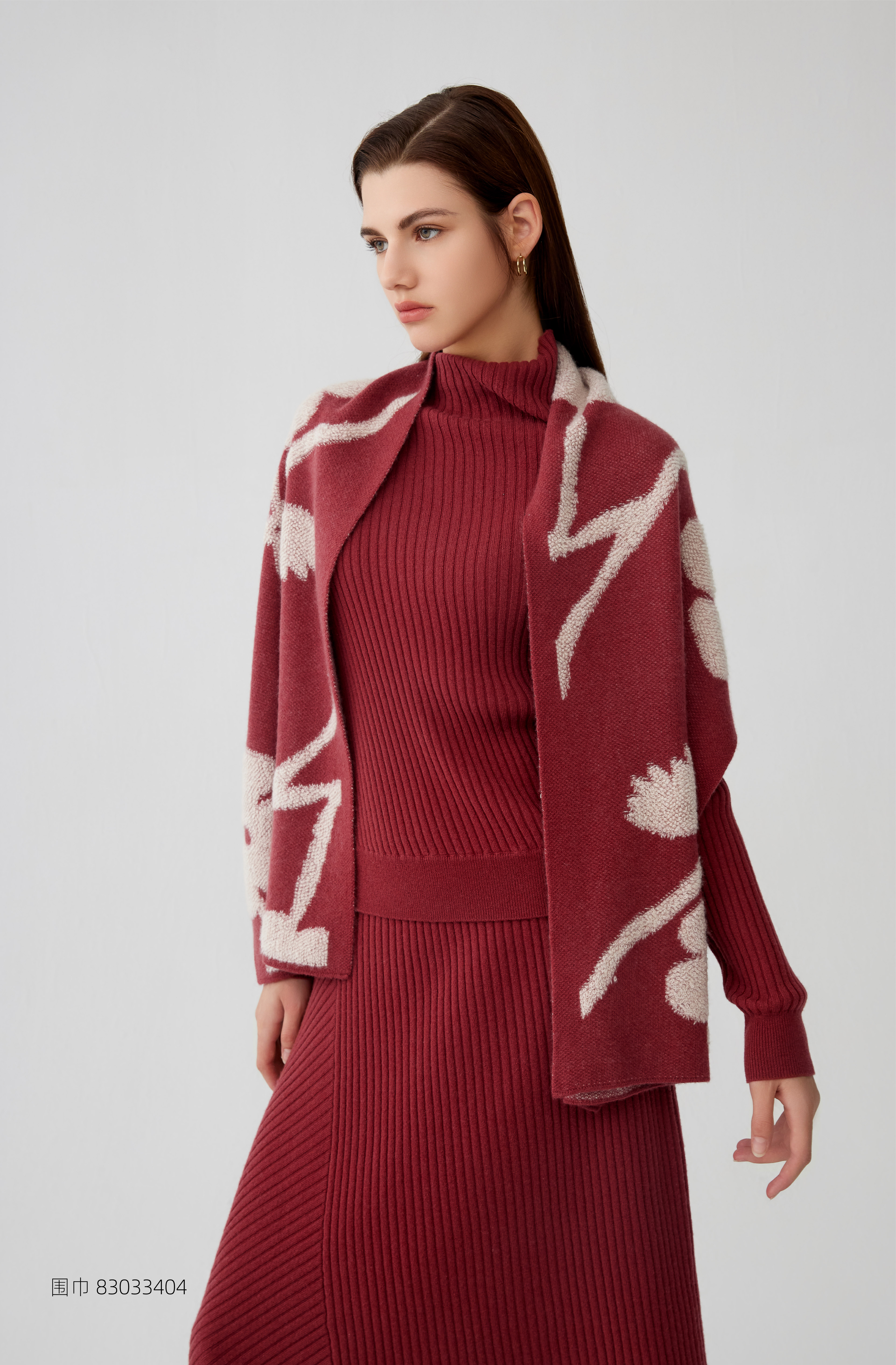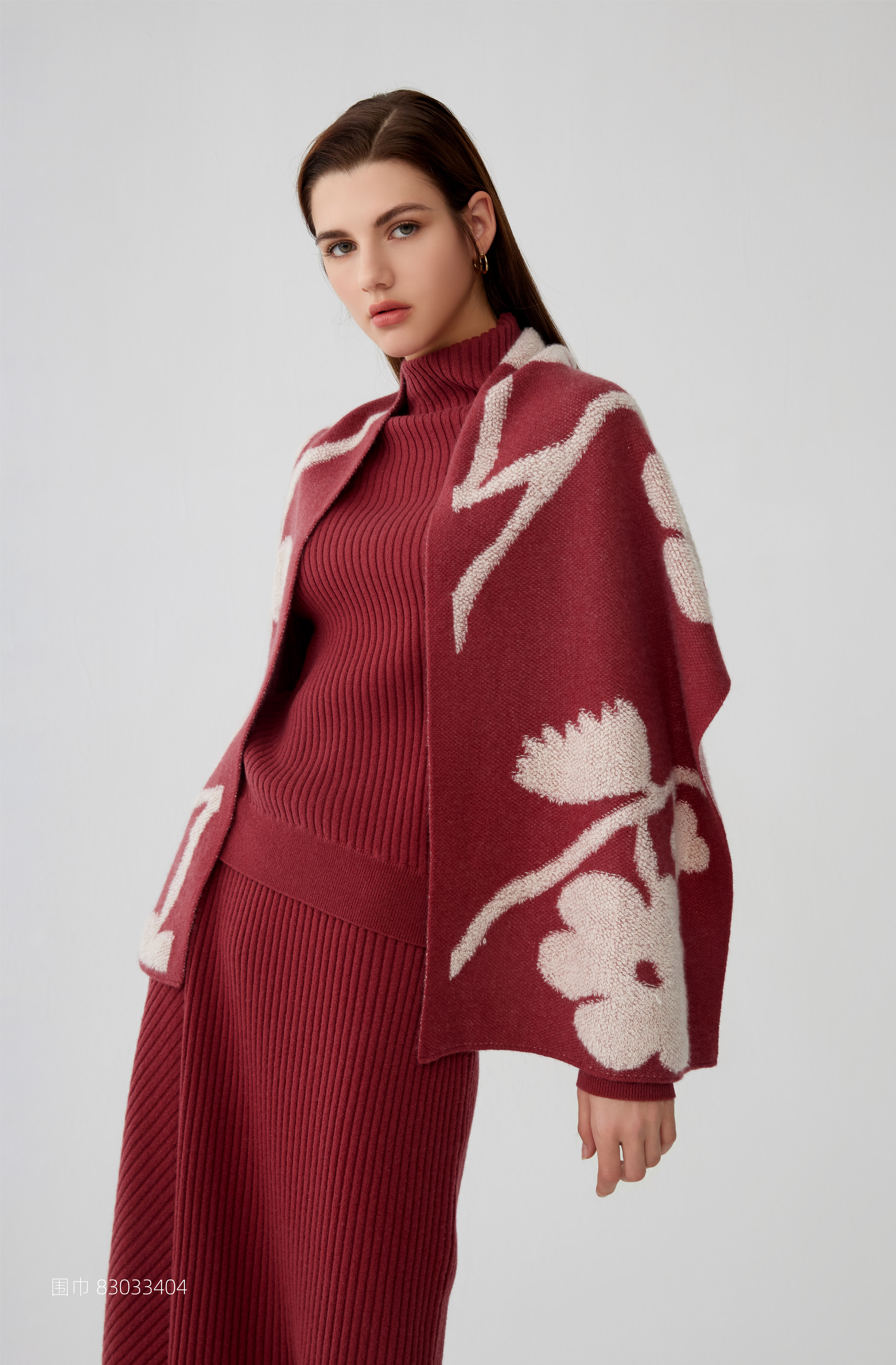 【年货系列羊绒围巾】羊绒世家秋冬新品女士100%山羊绒长方形围巾花朵提花围脖