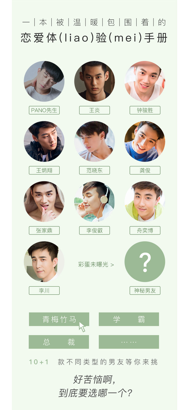 ★11段美好的恋爱,只需要30分钟!10+1个不同款式的男友等你来挑。好苦恼啊,到底要和谁约会呢?